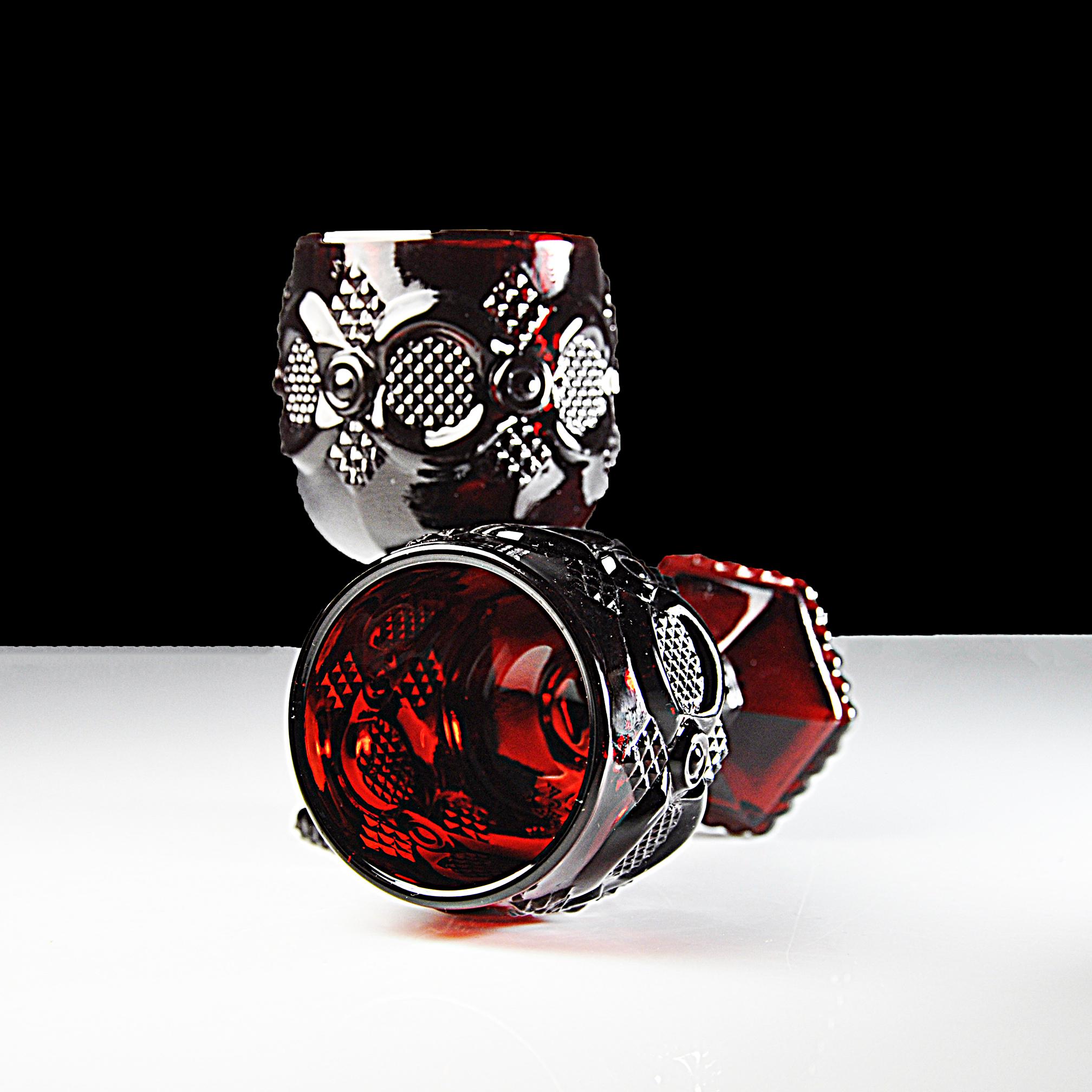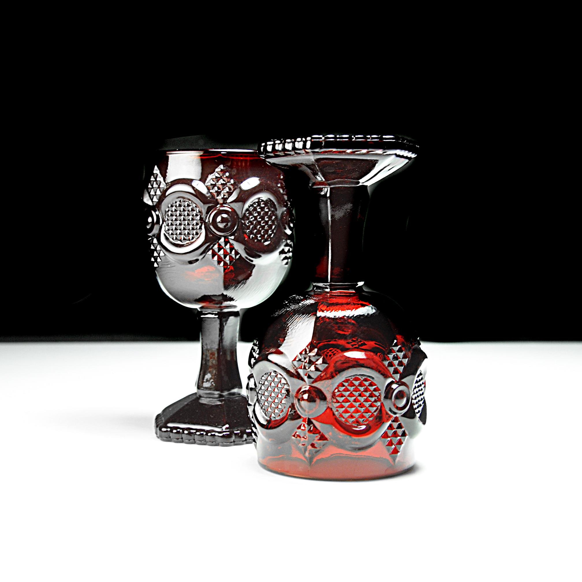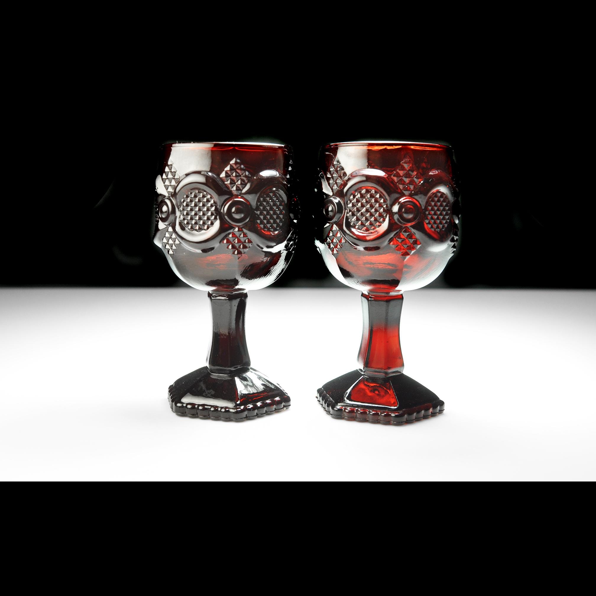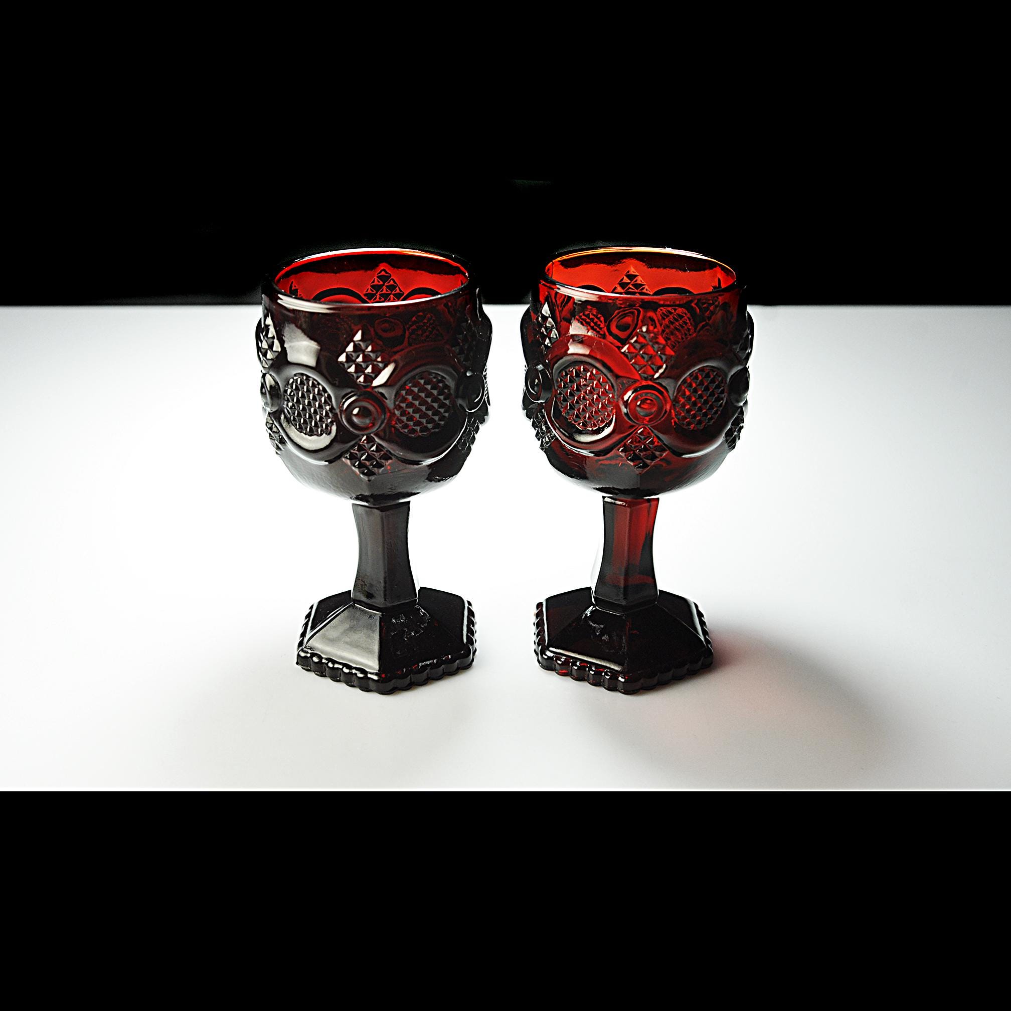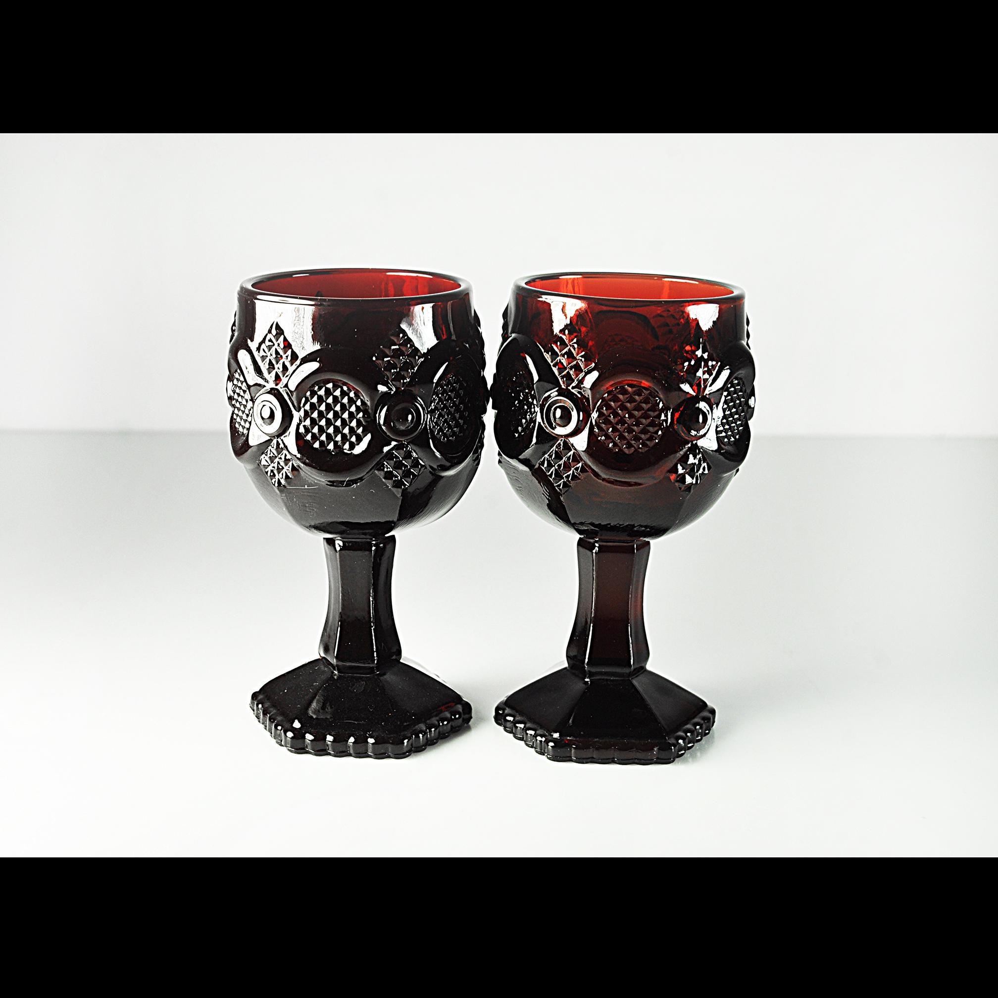 These are the kind of wine glasses that showed up for holidays, anniversaries, and Sunday dinners when company was coming over. This is a set of two Avon Cape Cod wine glasses, done in that deep ruby red glass that Avon made famous in the 1970s. They’ve got good weight in the hand, a sturdy stem, and that unmistakable raised geometric pattern that catches the light when the table is set just right. Avon’s Cape Cod line was made for everyday people who wanted something nicer than plain glass, but still sturdy enough to actually use. These pieces have held up for decades, and they’re still ready for many more dinners, holidays, or quiet evenings.