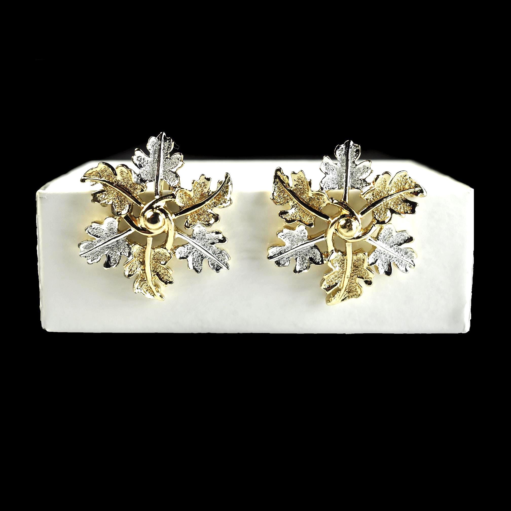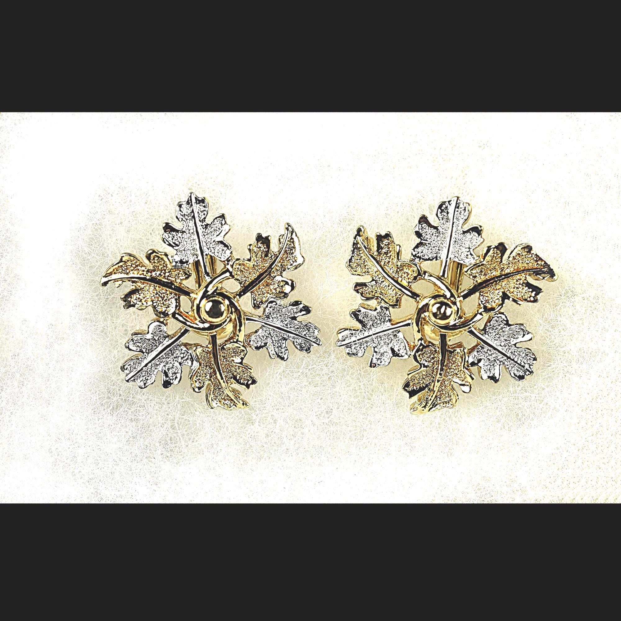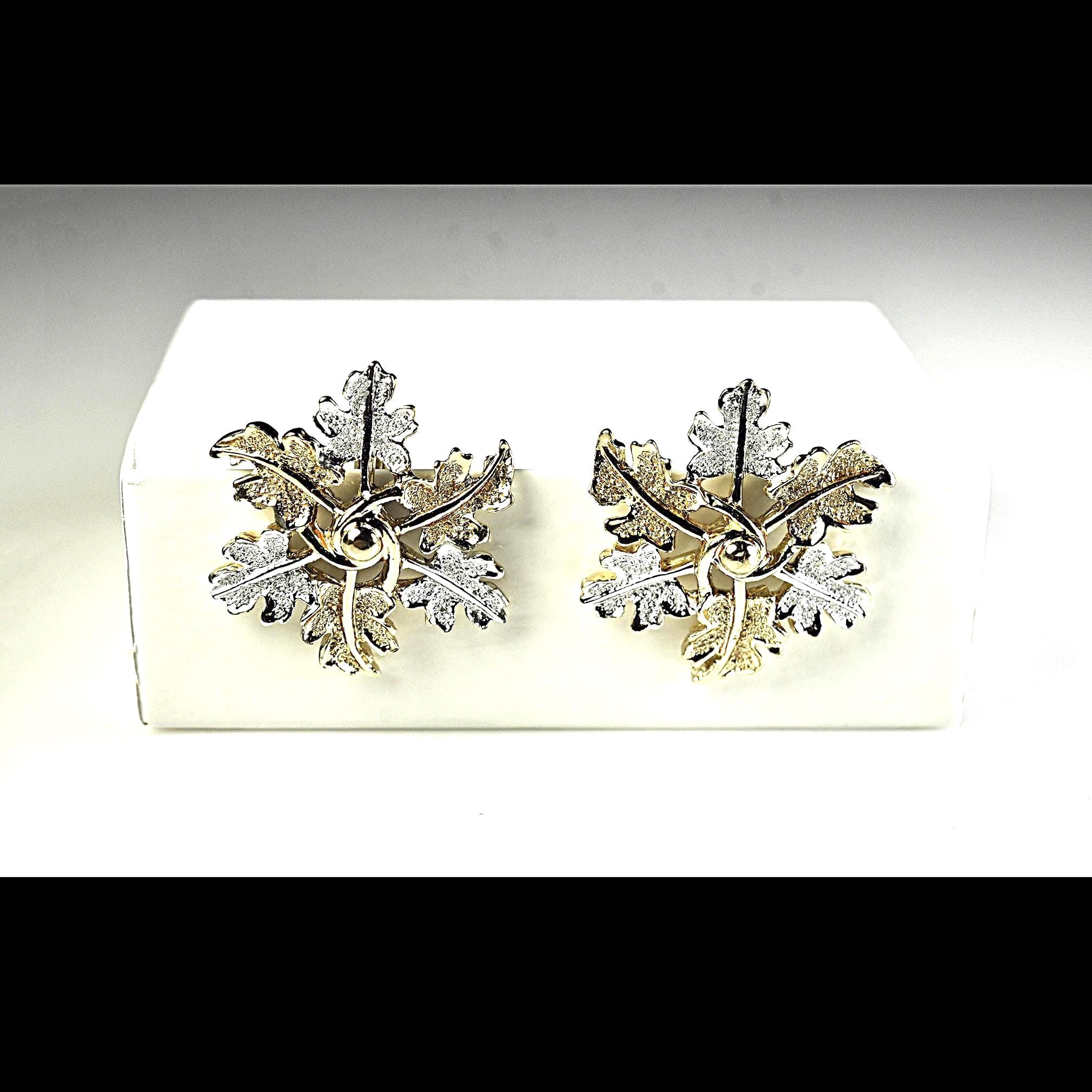 These are the kind of earrings that remind you why people still look for Sarah Coventry. They’re a pair of vintage leaf clip-on earrings. The leaves are done in two tones — warm gold and cool silver — with a lightly textured finish that catches the light without being flashy. There’s a nice sense of movement and depth to them, not flat or flimsy. Both earrings are signed Sarah Coventry. These are easy earrings to reach for — dress them up, wear them with a sweater, or pair them with a simple black dress. They’re classic, wearable, and made for the day or night.