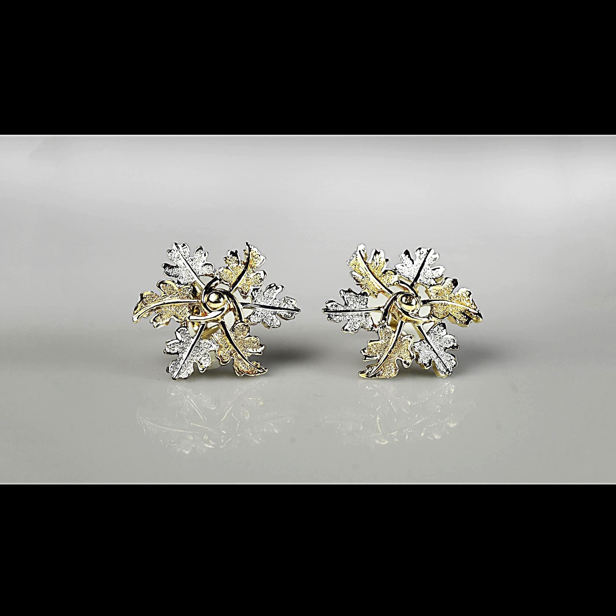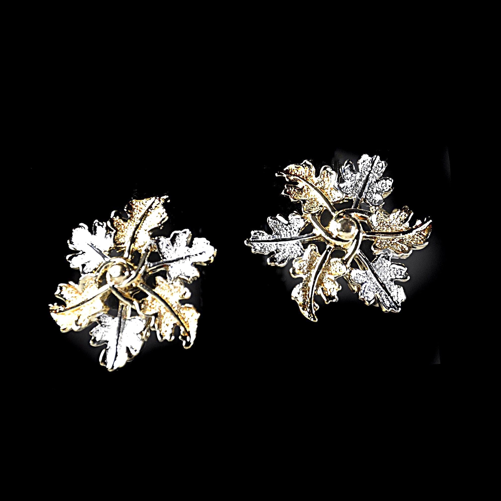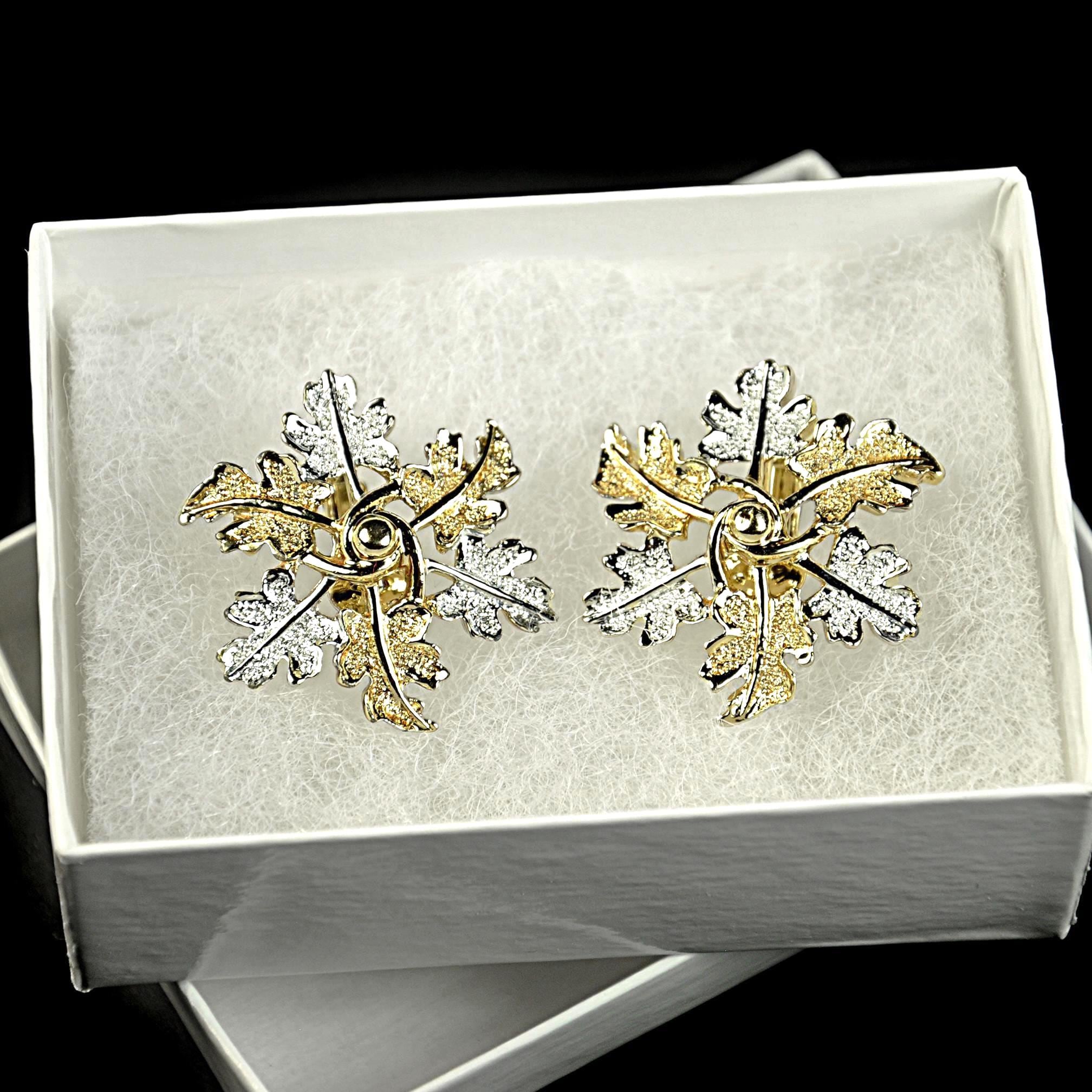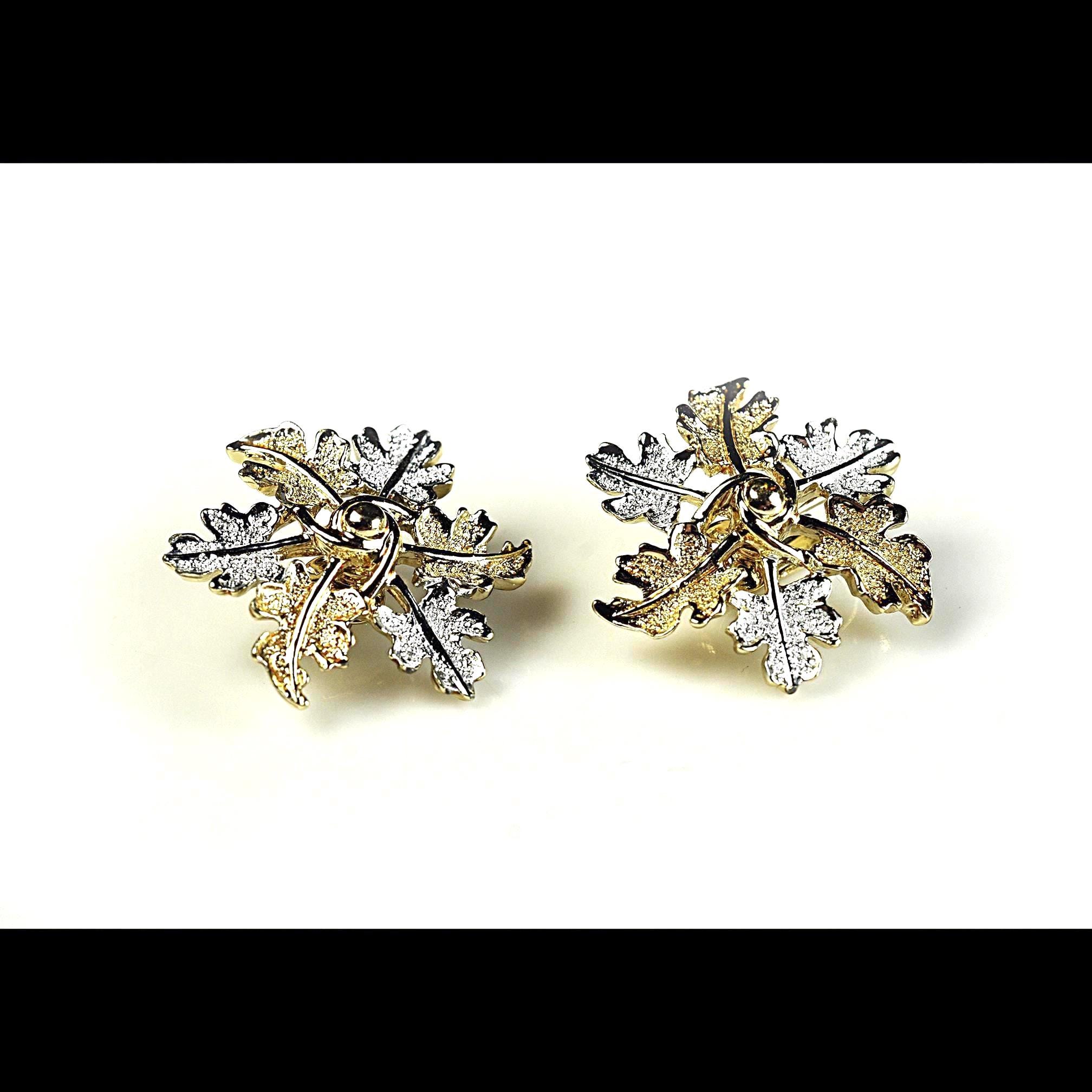 These are the kind of earrings that remind you why people still look for Sarah Coventry. They’re a pair of vintage leaf clip-on earrings. The leaves are done in two tones — warm gold and cool silver — with a lightly textured finish that catches the light without being flashy. There’s a nice sense of movement and depth to them, not flat or flimsy. Both earrings are signed Sarah Coventry. These are easy earrings to reach for — dress them up, wear them with a sweater, or pair them with a simple black dress. They’re classic, wearable, and made for the day or night.