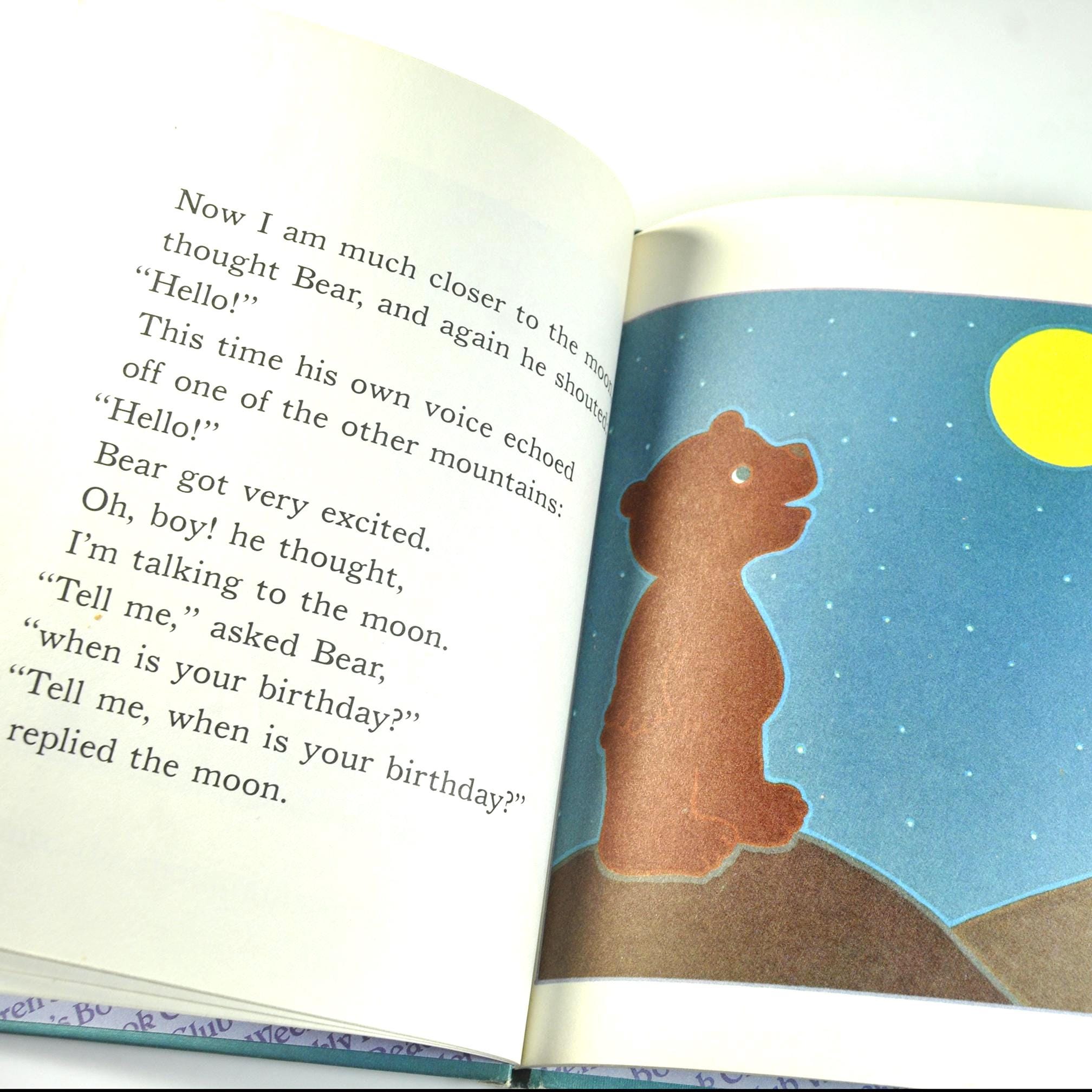 The story follows Bear, who looks up at the night sky and realizes something delightful — he and the moon share the same birthday. Wanting to do something kind, Bear decides the moon needs a birthday present. He buys a hat and carefully places it where the moon can find it. When the moon rises and the hat seems to fit perfectly, Bear is thrilled. Of course, things don’t go exactly as planned — but that’s part of the charm. It’s a gentle story about kindness, imagination, generosity, and seeing the world in your own way. There’s no flash, no noise, no moral hammer — just a thoughtful little book that leaves room for wonder.