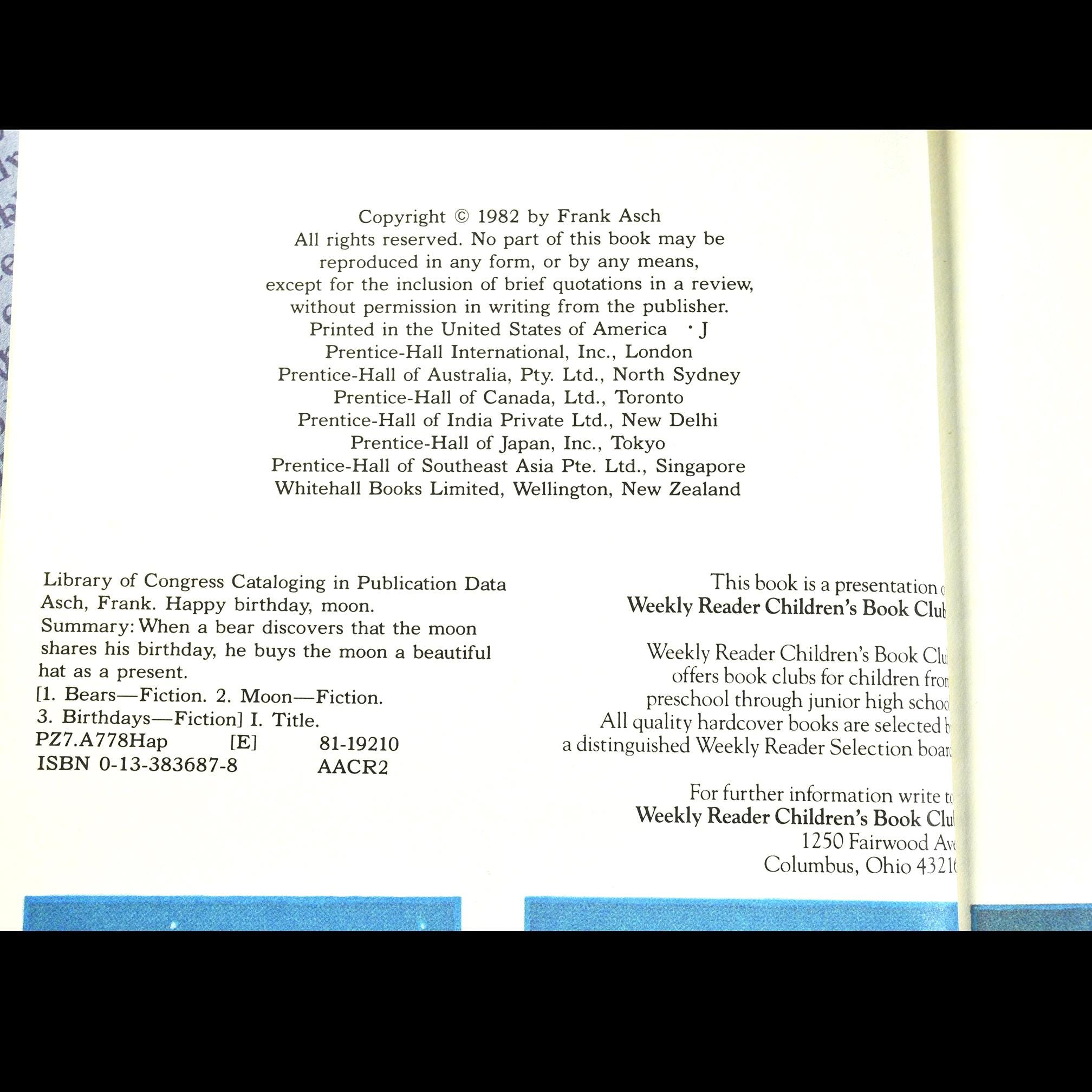 This is one of those children’s books that doesn’t shout or rush you along. It takes its time — and that’s why so many people remember it. Happy Birthday, Moon by Frank Asch was first published in 1982, and this copy comes from the Weekly Reader Children’s Book Club, the kind many of us brought home from school in our backpacks. Frank Asch had a real gift for telling gentle stories without talking down to children. The illustrations are calm and familiar, and the message is about kindness, imagination, and noticing the world around you. This would make a sweet gift for a child, a nostalgic addition to a vintage children’s book collection, or a familiar bedtime read for a new generation. It’s the kind of book that feels just as good to hold as it does to read aloud.