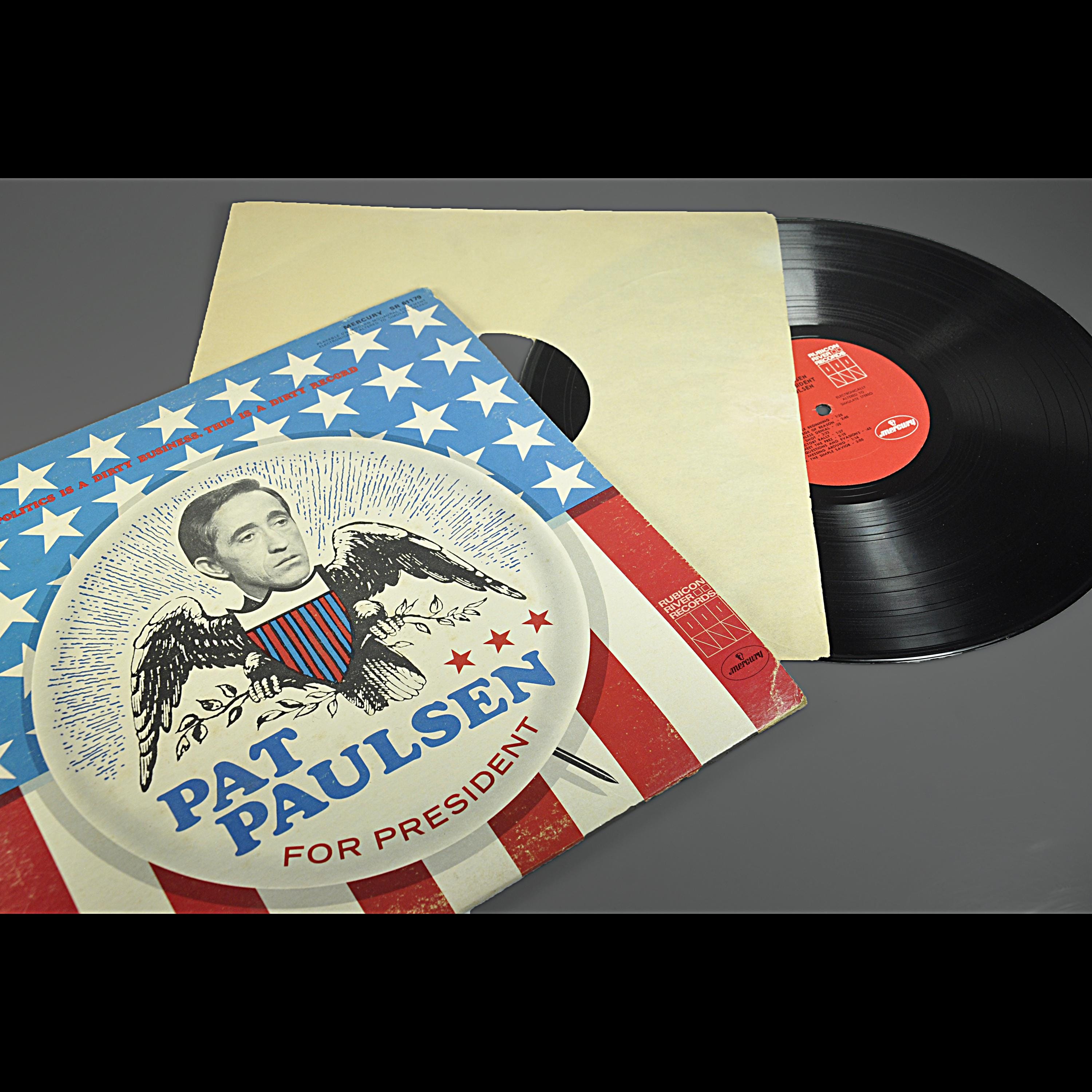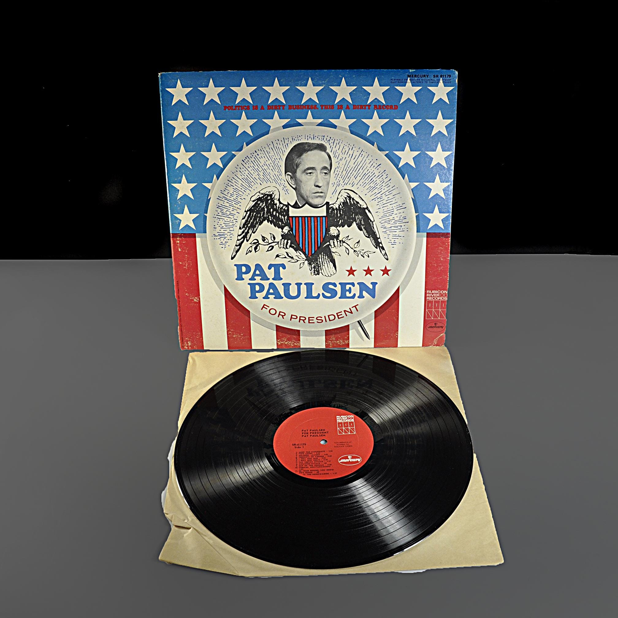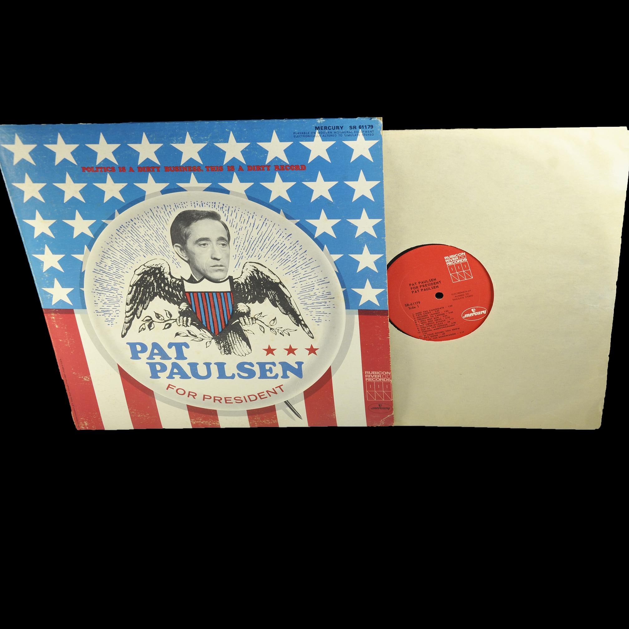 This record has clearly lived a life. Pat Paulsen for President is one of those albums that somehow sticks around, passed from shelf to shelf, because it still feels relevant. Released in 1968 at the height of political unrest, Pat Paulsen’s deadpan “campaign” skewers politics with a straight face and sharp timing. This is a spoken-word comedy LP, not music, filled with mock speeches, commentary, and satire that only someone from The Smothers Brothers Comedy Hour could get away with—at least for a while. The vinyl is in very good vintage condition with light surface marks consistent with age. The cover shows honest wear along the edges and corners but remains solid and displayable. Original paper inner sleeve included.