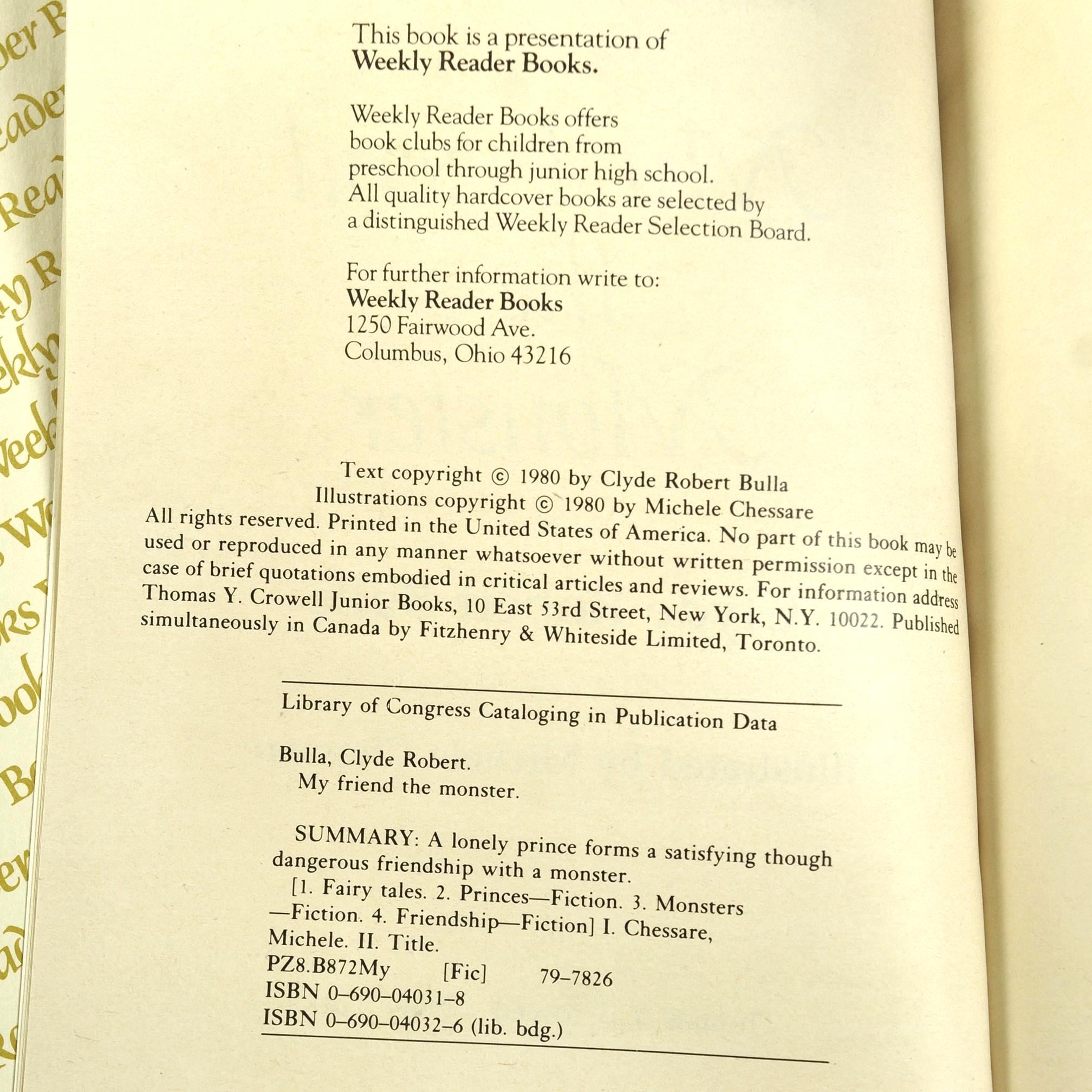 This is one of those quiet children’s books that stays with you. My Friend the Monster was published in 1980 as a Weekly Reader Book, meant to be read by children sitting cross-legged on classroom floors or at the kitchen table after supper. It isn’t loud or flashy. It’s thoughtful, a little dark in places. The illustrations are soft pencil drawings, the kind Weekly Reader was known for—gentle, expressive, and slightly haunting. This is a book that trusts young readers to think for themselves. A solid copy of a classic Weekly Reader title—perfect for a vintage children’s book collection or a thoughtful gift.