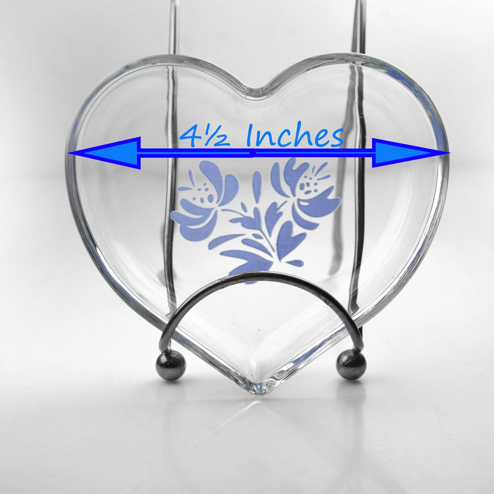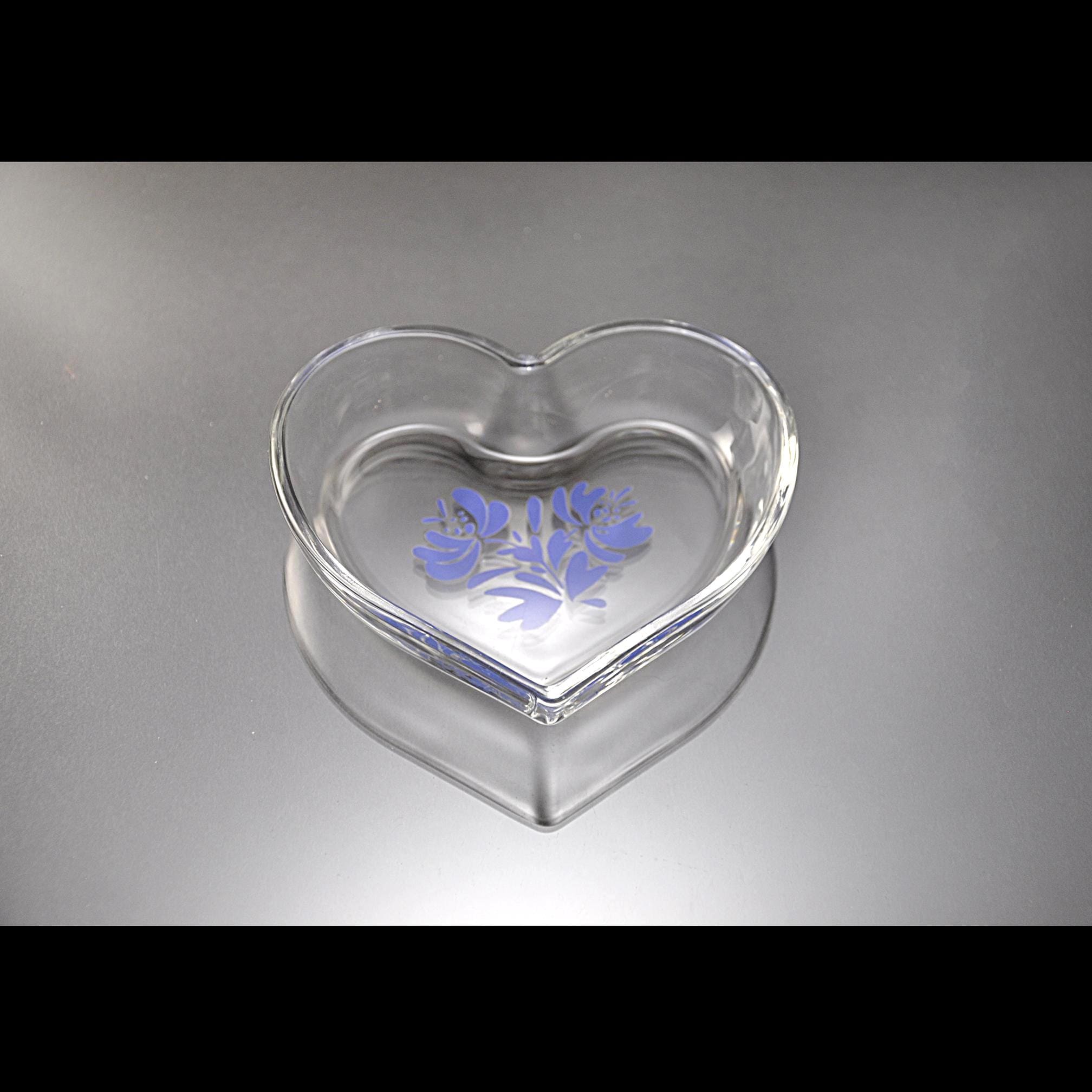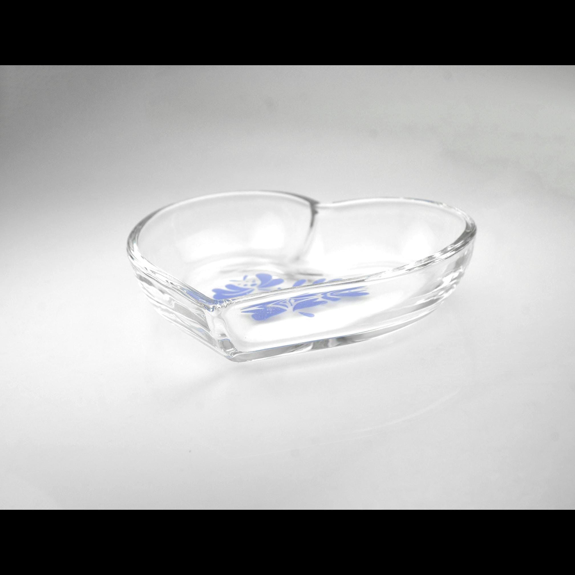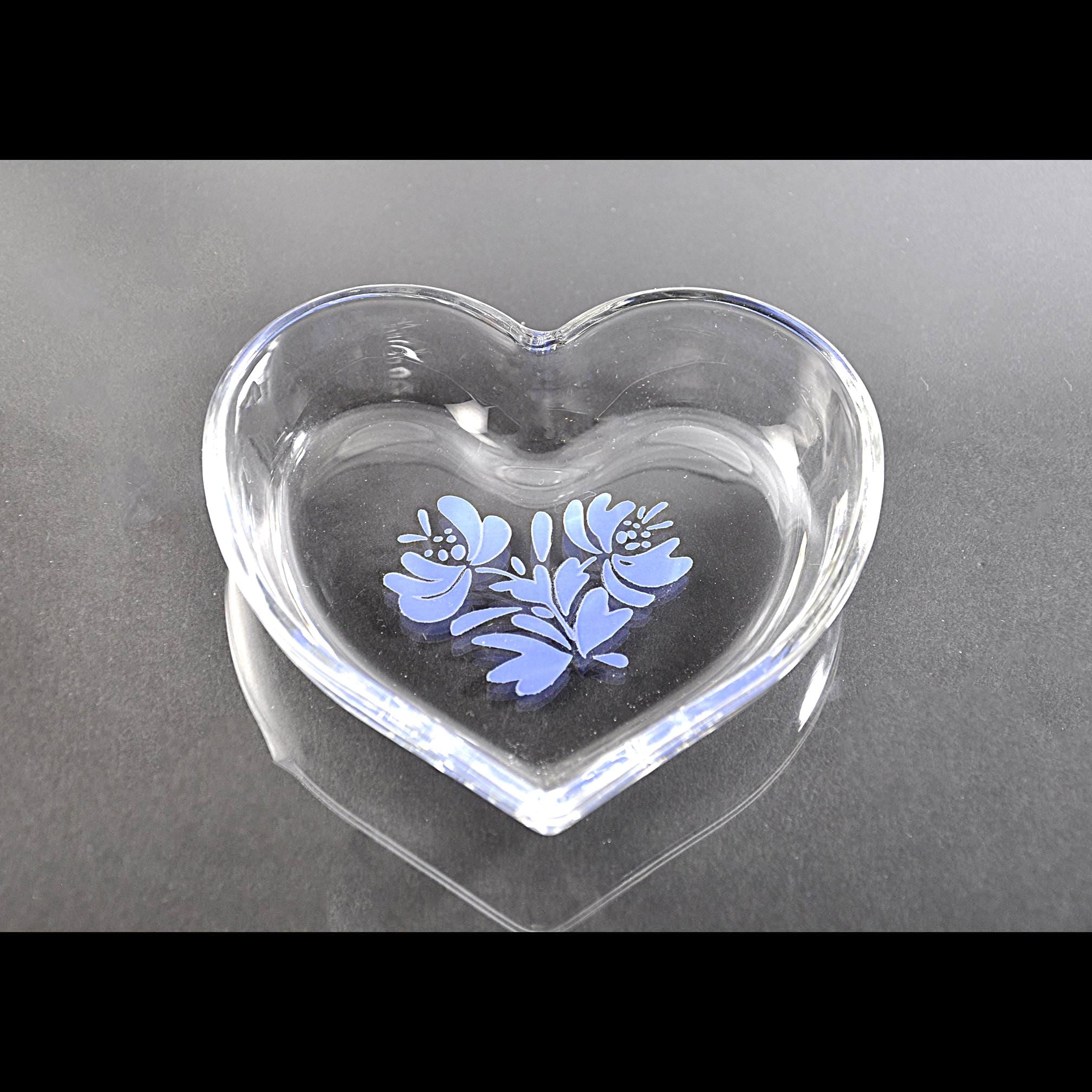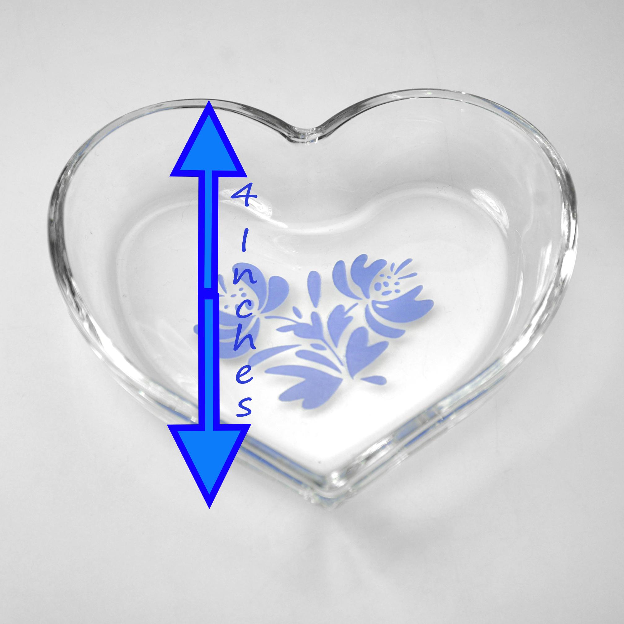 Some patterns follow people through their lives, and Yorktowne is one of those. It shows up on dinner tables, in kitchens, and tucked onto shelves, always familiar and always useful. This is a heart-shaped clear glass bowl by Pfaltzgraff, decorated with the classic Yorktowne blue floral design. Unlike the heavier stoneware pieces that Pfaltzgraff is know for, this one is glass — light, bright, and easy to use anywhere. It was made as an open bowl, not a covered box, and the rim is finished smoothly all the way around. The heart shape is simple and well-proportioned, and the blue design sits neatly in the bottom of the bowl where it shows beautifully when in use. It’s just the right size for a ring by the sink, jewelry on a dresser, wrapped candies, or small keepsakes. A useful little piece with a familiar look, the kind that quietly earns its place and stays there.