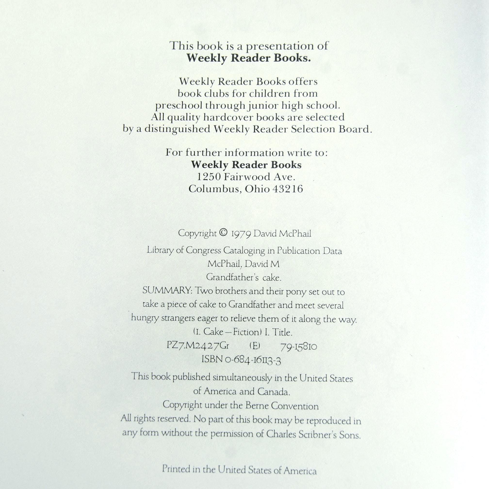 There’s an old charm to the Weekly Reader books. They were the sort of stories that showed up in classrooms and school book clubs, the kind of thing you’d toss into a backpack and read during quiet time. Grandfather’s Cake by David McPhail is one of those titles. If you grew up with Weekly Readers or you collect older children’s books, this one feels like stepping back into a school library with wooden shelves.