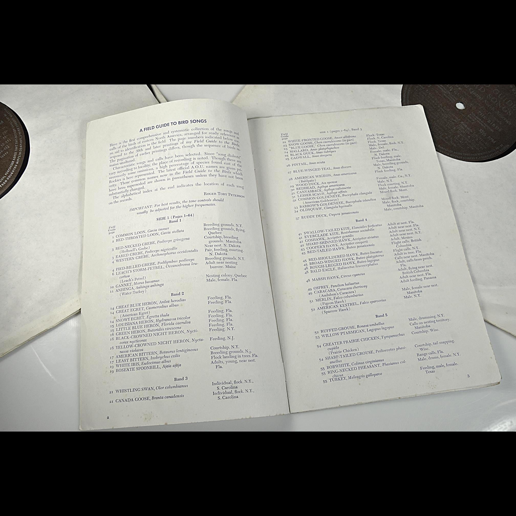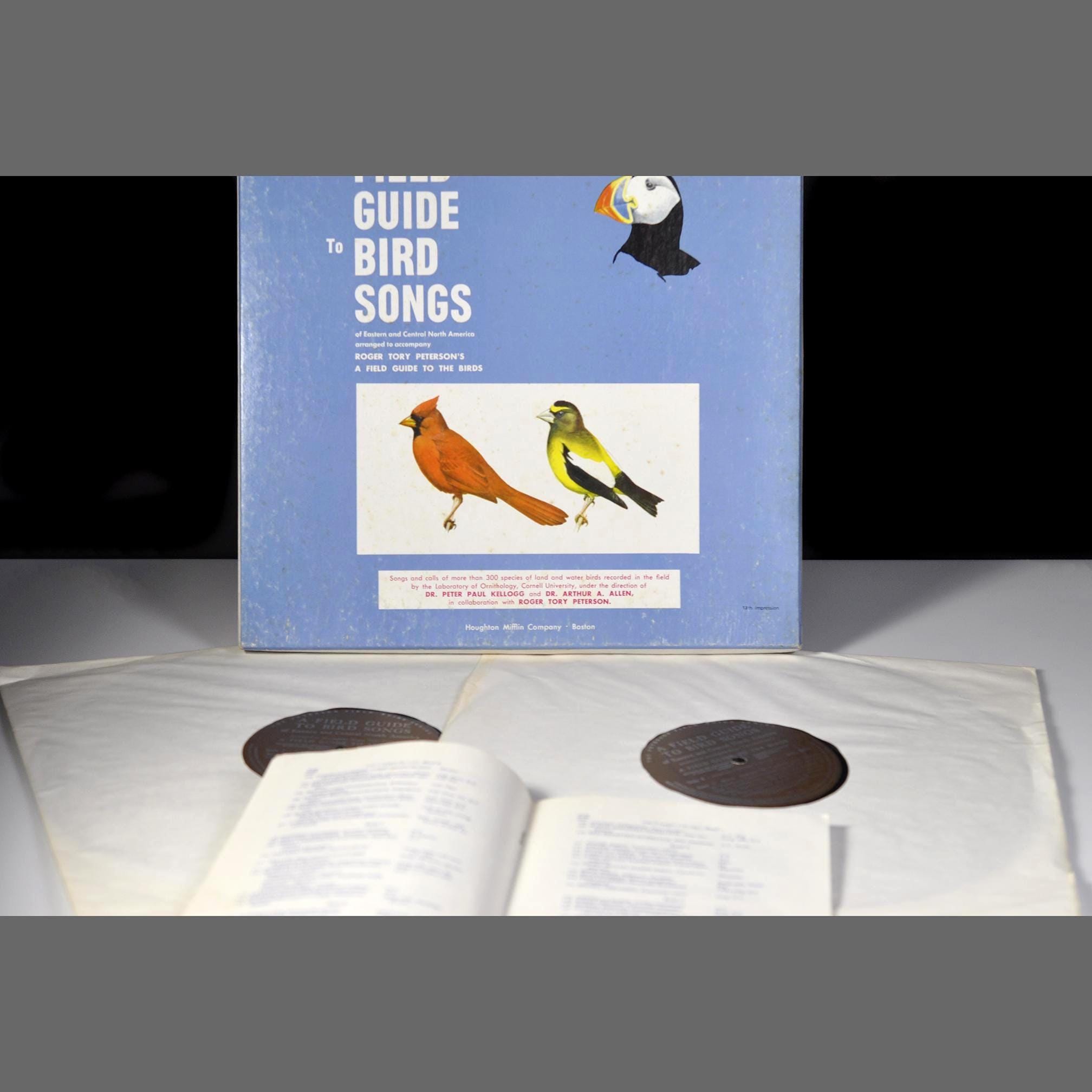 If you’ve ever sat on the porch in the morning with a cup of coffee and wondered which bird was doing all the talking, this vintage Peterson set would’ve been your guide. Long before apps could ID a song with a tap, birders used these records to match calls with the illustrations in A Field Guide to Birds. This is the two-record set that was recorded to pair with A Field Guide to Bird Songs of Eastern and Central North America, with Roger Tory Peterson’s classic field guide (which is NOT included). The records feature real field recordings—clean, crisp, and labeled so you can follow along with the included booklet. Both LPs look very good with no harsh scratches and just normal light surface wear from age, sold as is and not tested. The original paper sleeves are intact, with only some gentle yellowing. The booklet is in very good shape too—no writing or tears. The cover shows rubbing and a bit of corner wear. For being roughly fifty years old, it’s held up very well. If you’re a birder, a Peterson collector, or just someone who likes these older educational records, this one is worth having. It still does exactly what it was made to do, help you identify birds songs.