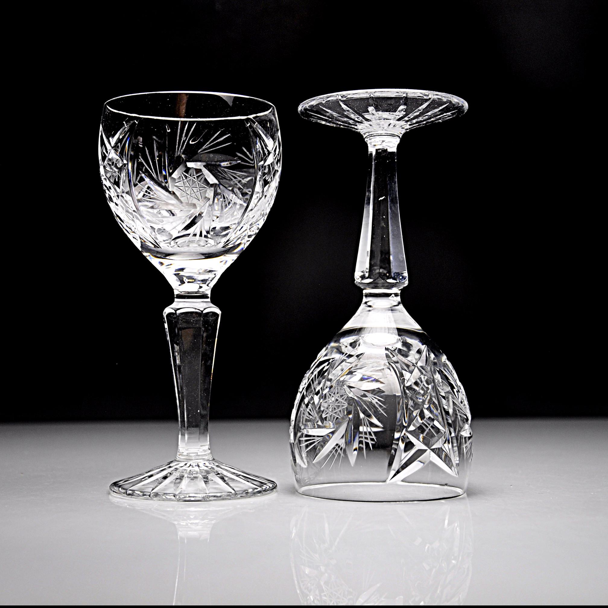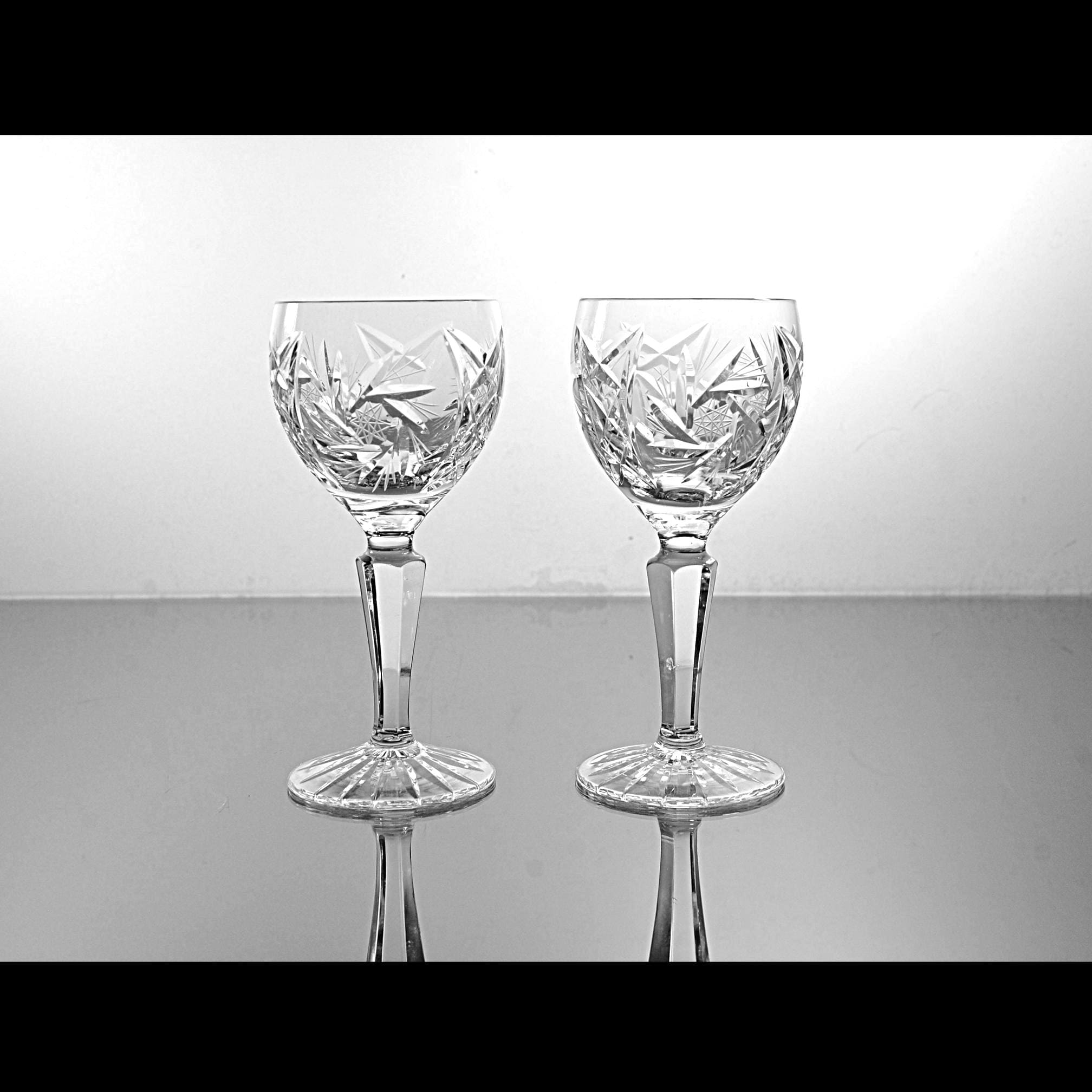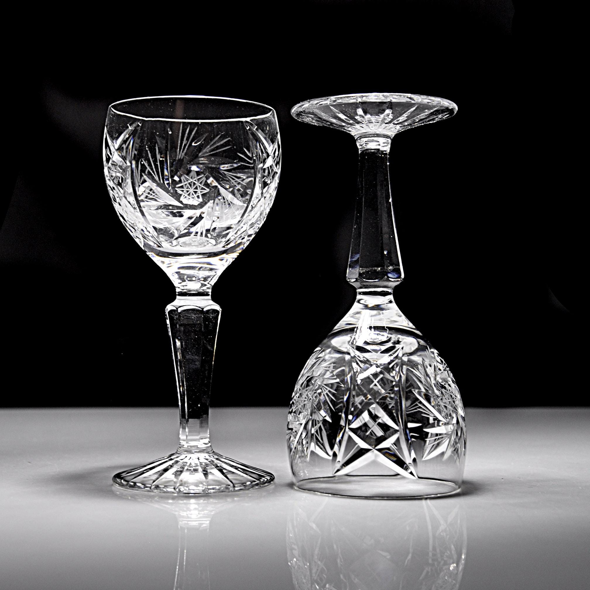 Around here, a good wine glass has some weight to it and catches the light without trying. This pair from American Cut does exactly that. They’re from the Juliette pattern—deep cuts, starburst detail, and that clean American crystal look that dressed a lot of dinner tables back then. These are the smaller wine size which makes them handy for dessert wines or just a modest pour. If you’ve got a set you’re trying to add to, or you just like well-made American crystal that doesn’t boss you around, these will do the job.
