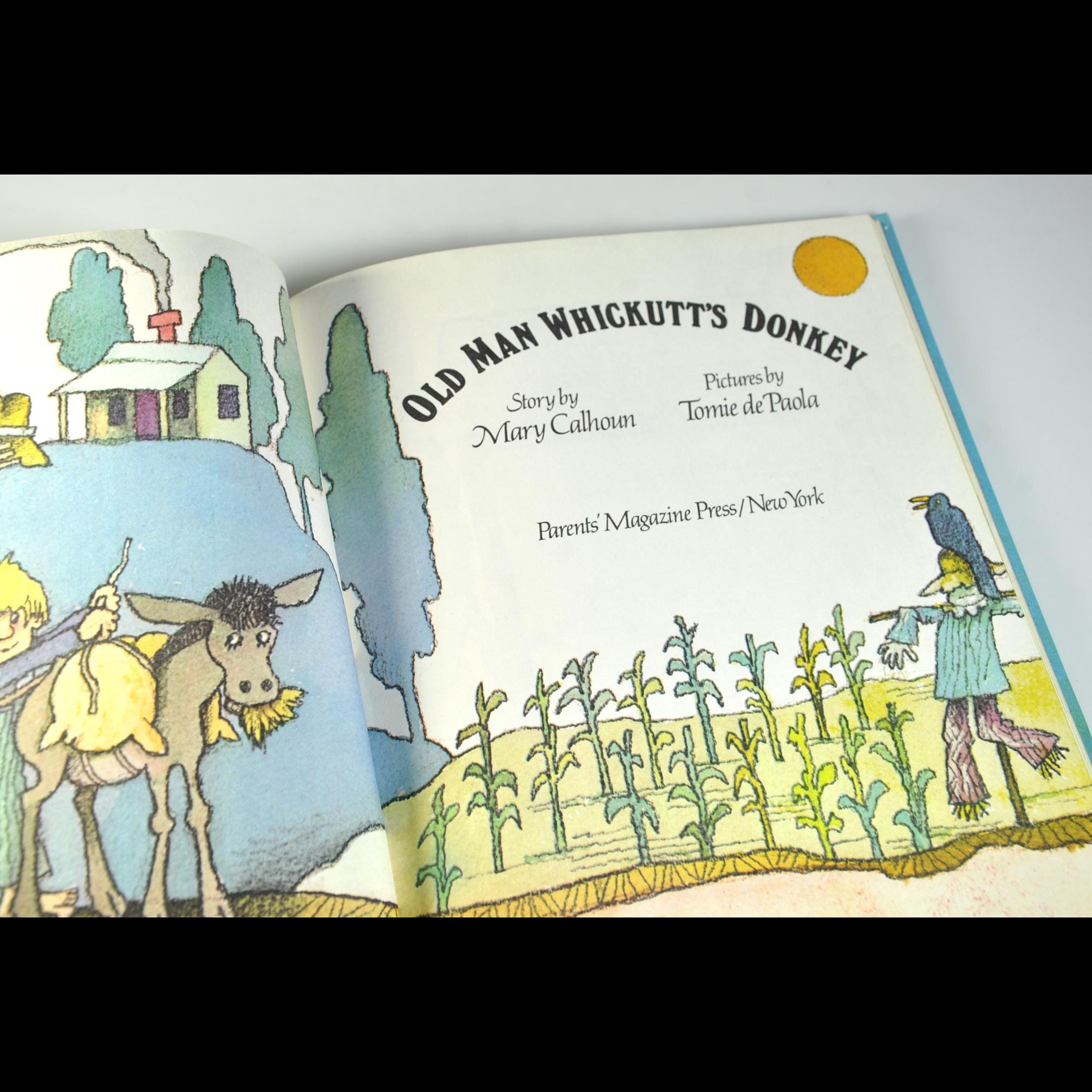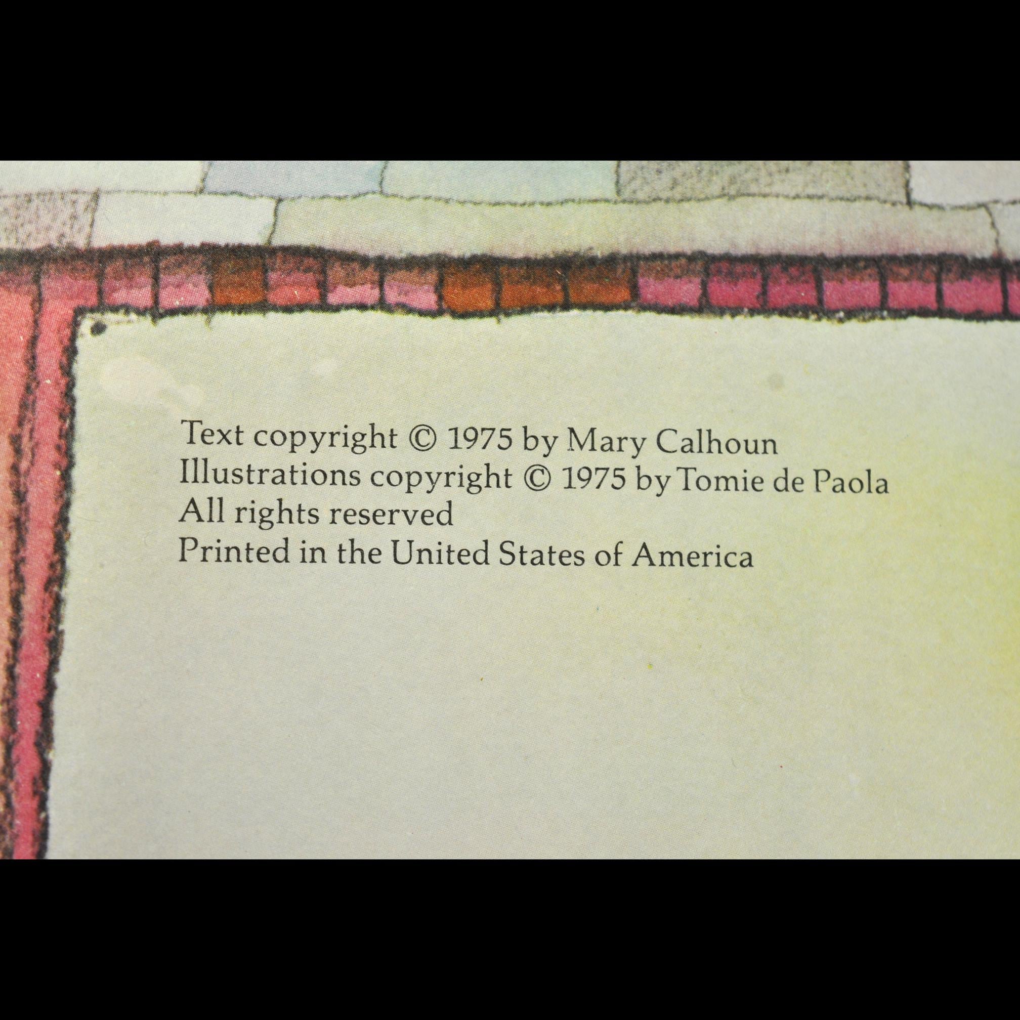 This copy of Old Man Whickutt’s Donkey by Mary Calhoun has the kind of charm you only get from a good 1970s children’s book. Tomie dePaola did the pictures, so you already know the illustrations have that warm, slightly mischievous look he was known for. This copy was printed in 1975 by Parent’s Magazine Press. If you grew up in the 60s or 70s, or you’re collecting Tomie dePaola’s illustrated titles, you’ll recognize this one right away. It’s a good, solid copy of a story that still reads nicely today.