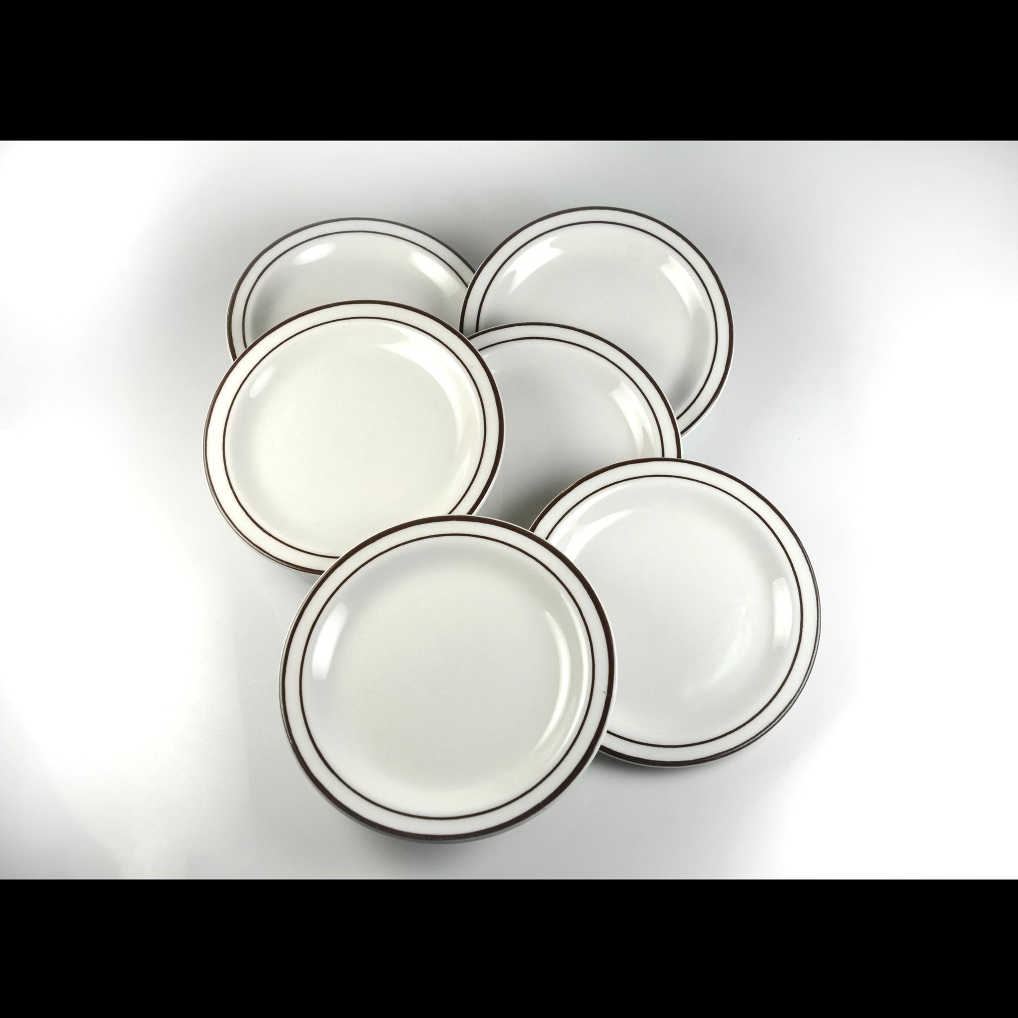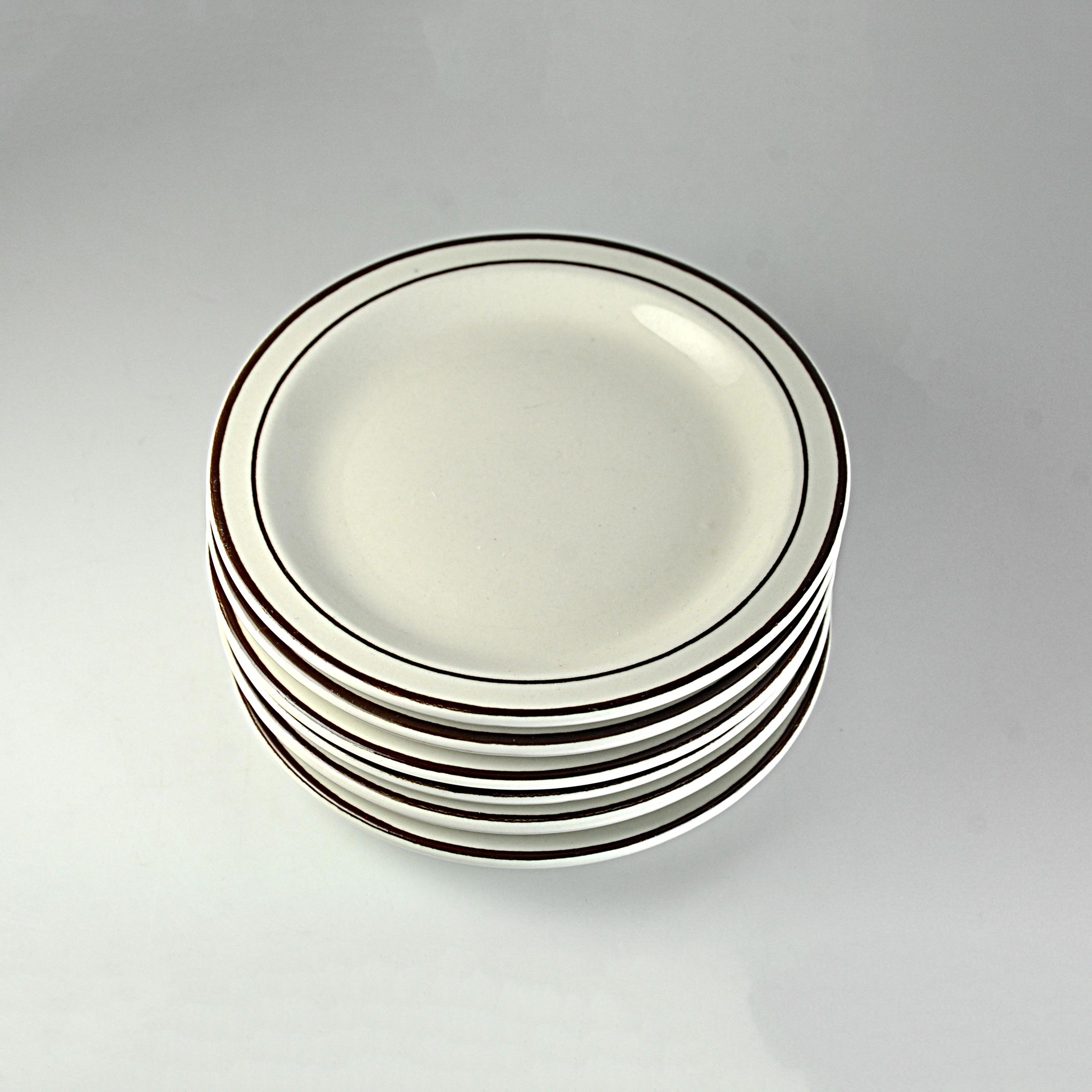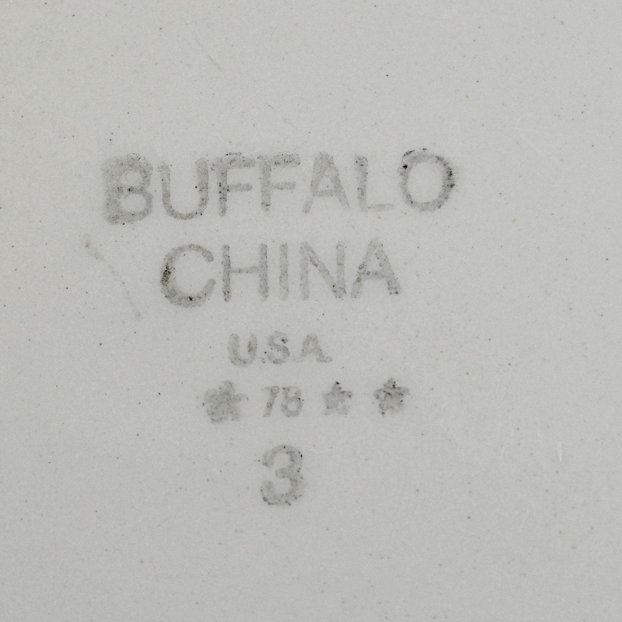 Restaurant china was made to work hard and stay good looking while doing it. This set of six bread and butter plates from Buffalo China fits that bill. They’re heavy in the hand, simple in design, and tough as nails—just like what you’d find stacked at a diner counter or coming off the line at a cafeteria. This is just straightforward American-made china ready for another long run, whether that’s on the supper table, holding biscuits at a holiday meal, or corralling odds and ends in the kitchen. Buffalo China turned out pieces like this from about the mid-century on, supplying restaurants, hotels, and institutions across the country. They are great because they don’t break easily and they look just as good on the table today as they did fifty years ago.