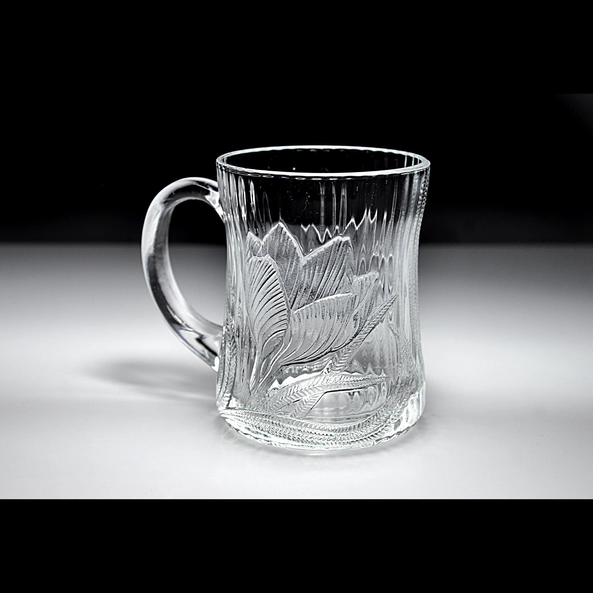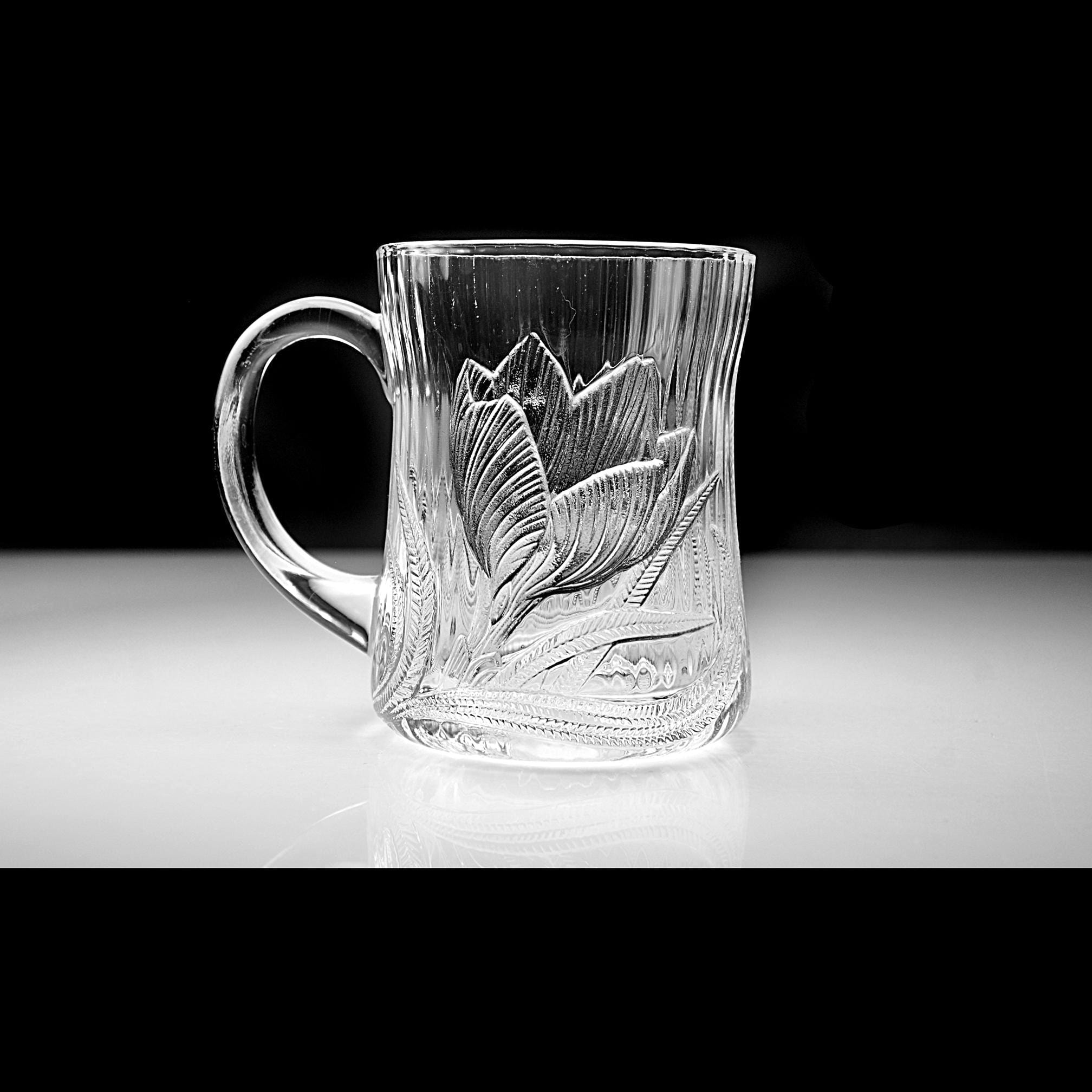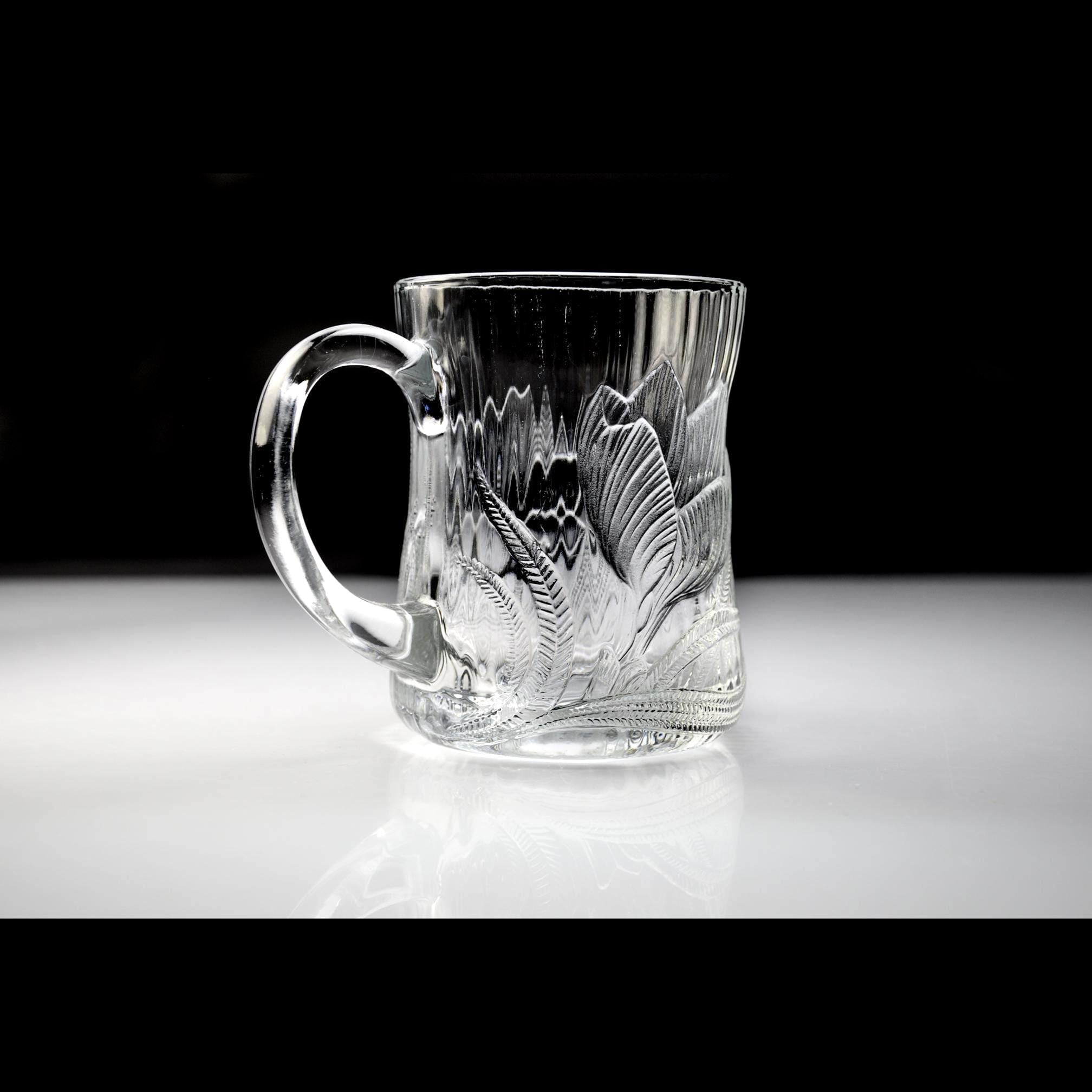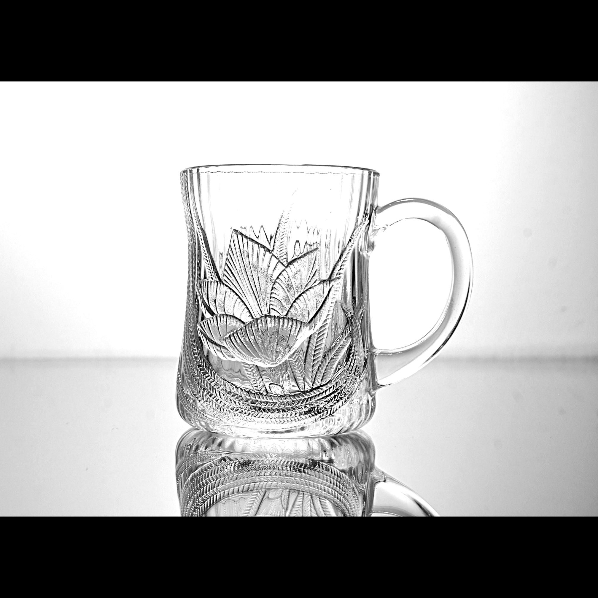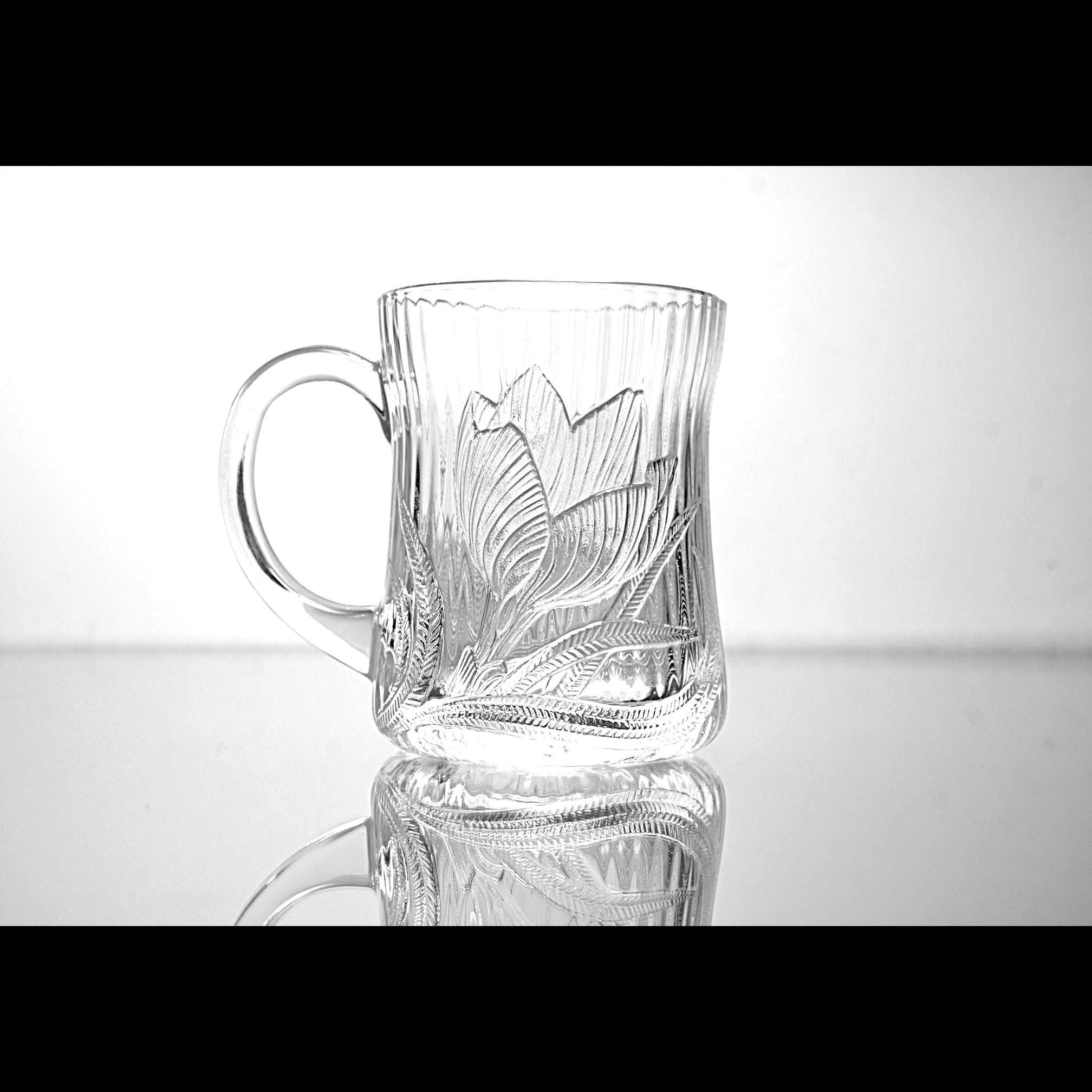 Some glass just feels good in the hand, and this is one of those pieces. It’s an Arcoroc mug in the Canterbury pattern — clear, sturdy French glass with a pressed crocus flower design wrapped around the sides. If you like a mug that can take real abuse and not make a fuss about it, this one does the job. Whether you drink tea, cocoa, or just want something that doesn’t break when you bump it in the sink and looks beautiful, vintage Arcoroc is a solid choice.