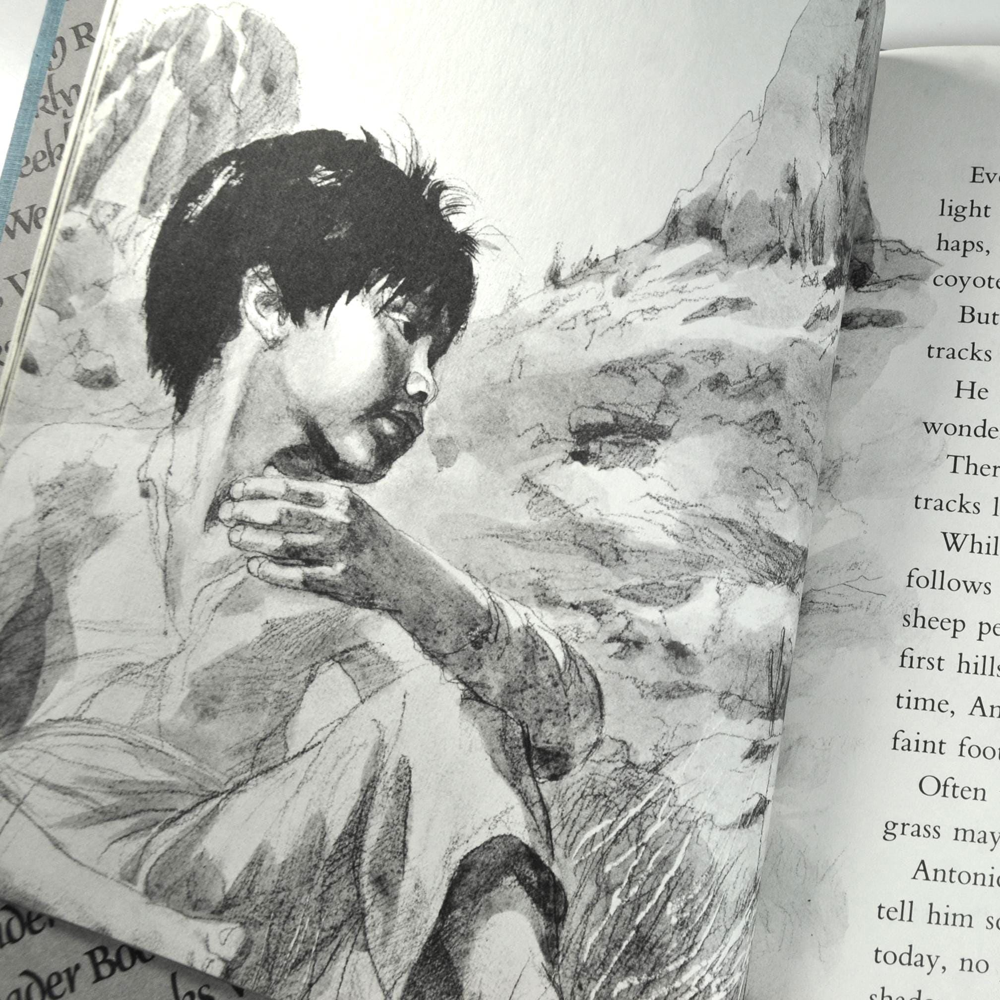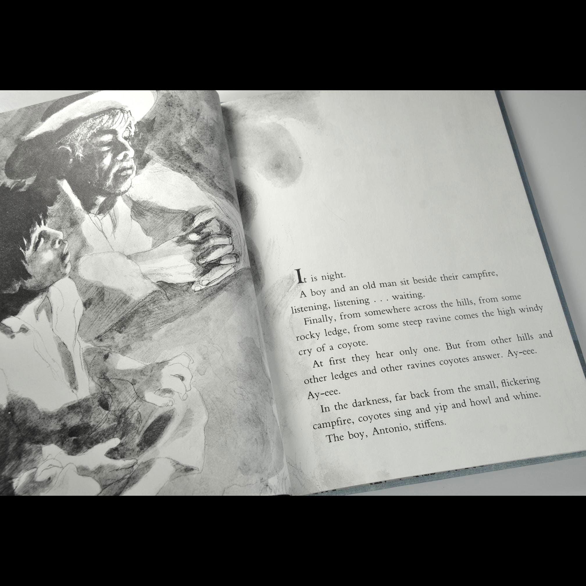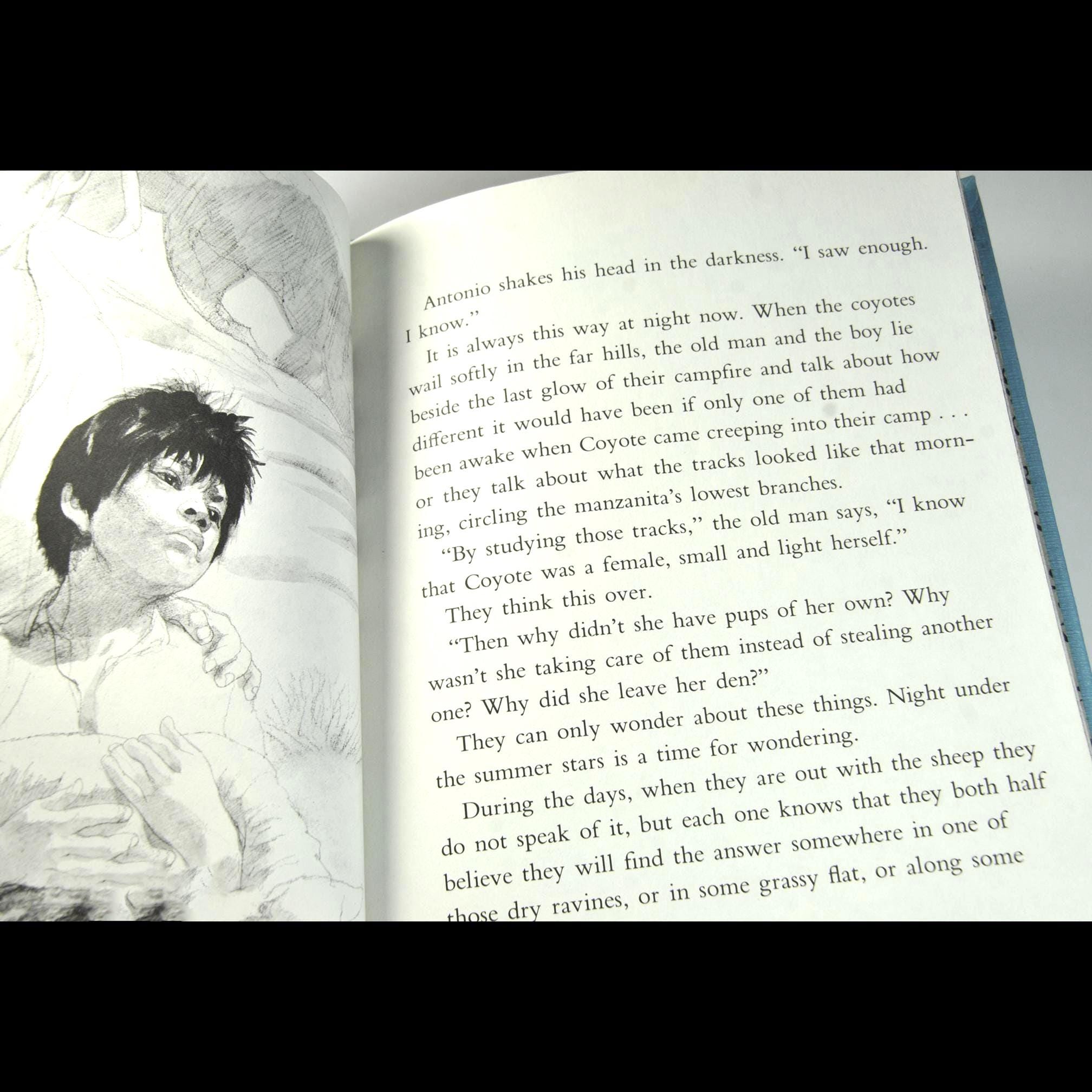 In these pages you follow Antonio, a young shepherd boy, his grandfather, and their collie, Blanca. When Blanca’s pup goes missing, everyone figures a coyote took him for supper. Turns out the mother coyote had lost her own litter and stole the pup to raise as her own. Months later the half-grown pup is brought back, still smelling of the wild, and Blanca accepts him without a fuss. One night the mother coyote slips back to check on him, nose-to-nose through the shadows. It’s the kind of story that sticks because it’s not syrupy — just honest about how people and animals share the land whether they like it or not.