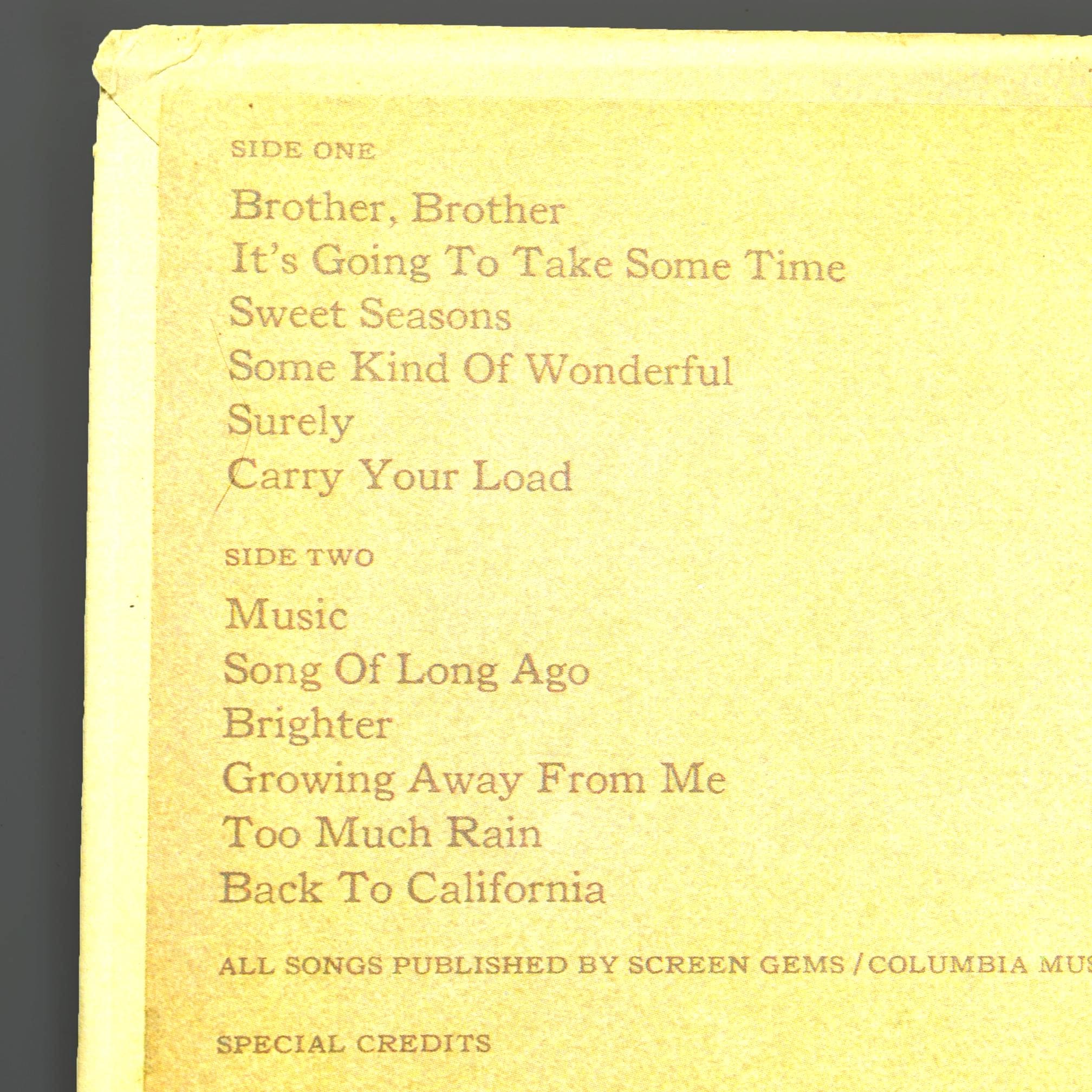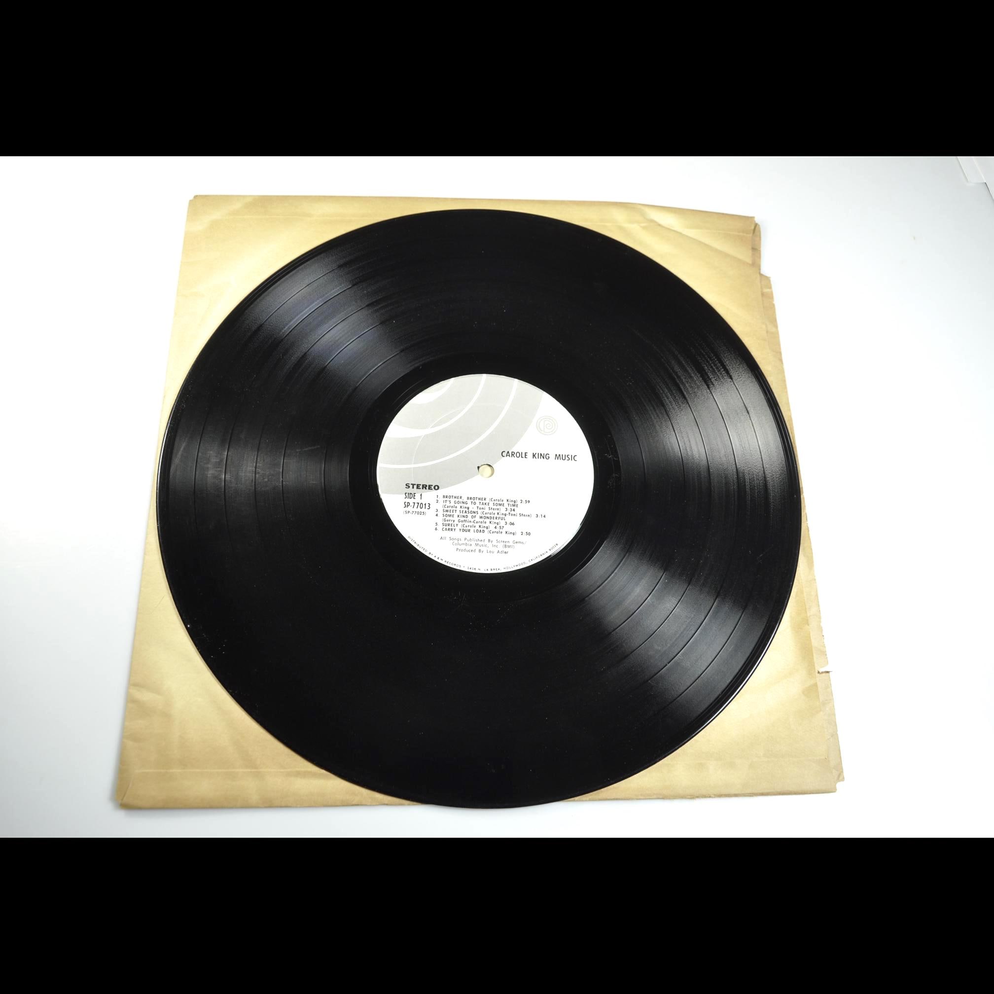 This is Carole King’s “Music” — the 1971 follow-up to her monster hit Tapestry. Folks played this one on Sunday mornings, coffee in hand, letting “Sweet Seasons” fill the kitchen. That’s the mood this record came out of. This is an early Ode Records pressing from 1971, catalog SP77013, with the original uncoated paperboard gatefold cover. The cover shows the usual yellowing from age and some rubbing on the corners. There’s a small corner crease, but no seam splits or tears — nothing dramatic. The original lyric booklet is still here, clean and solid with no stains, rips, or scribbles. That’s a plus. The vinyl itself is clean with no big scratches that jump out at you. Both sleeves are the originals — they have yellowed with time, which is expected for something that came out when gas was 36 cents a gallon. We don’t play test records, so like all vinyl in our shop this one sells AS IS. If you’re a Carole King fan, or you grew up with that soft California sound drifting out of wood-paneled speakers, this one belongs on your shelf.