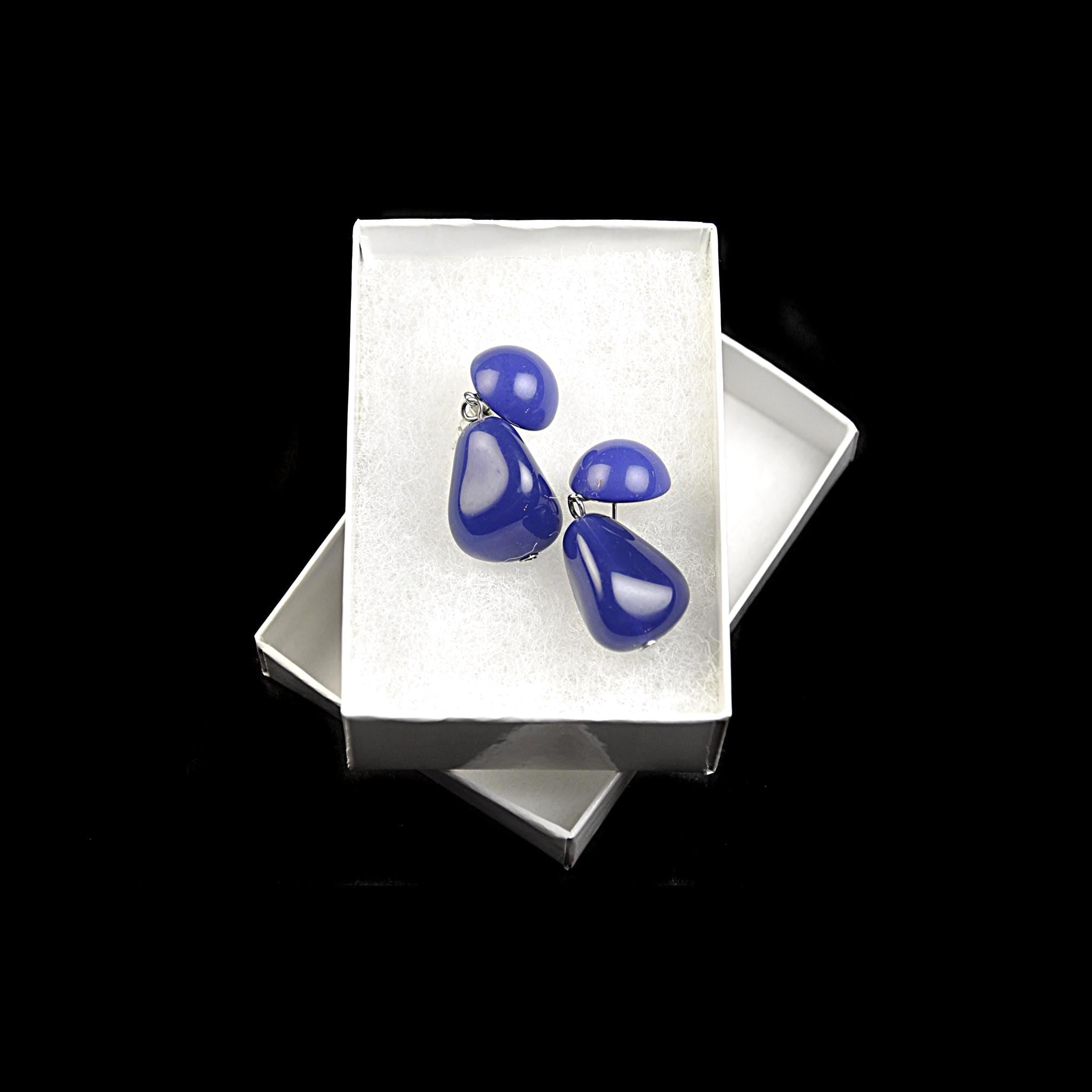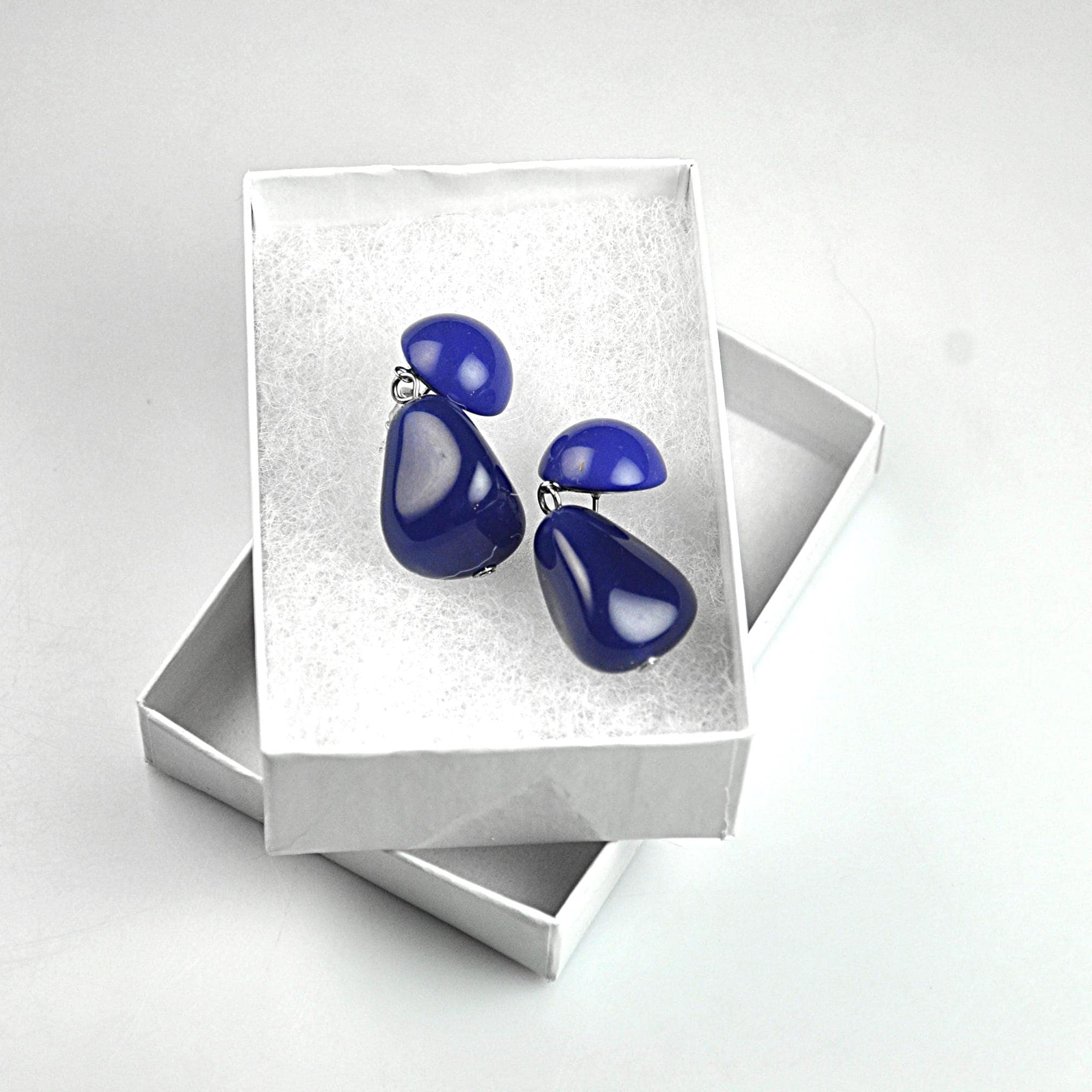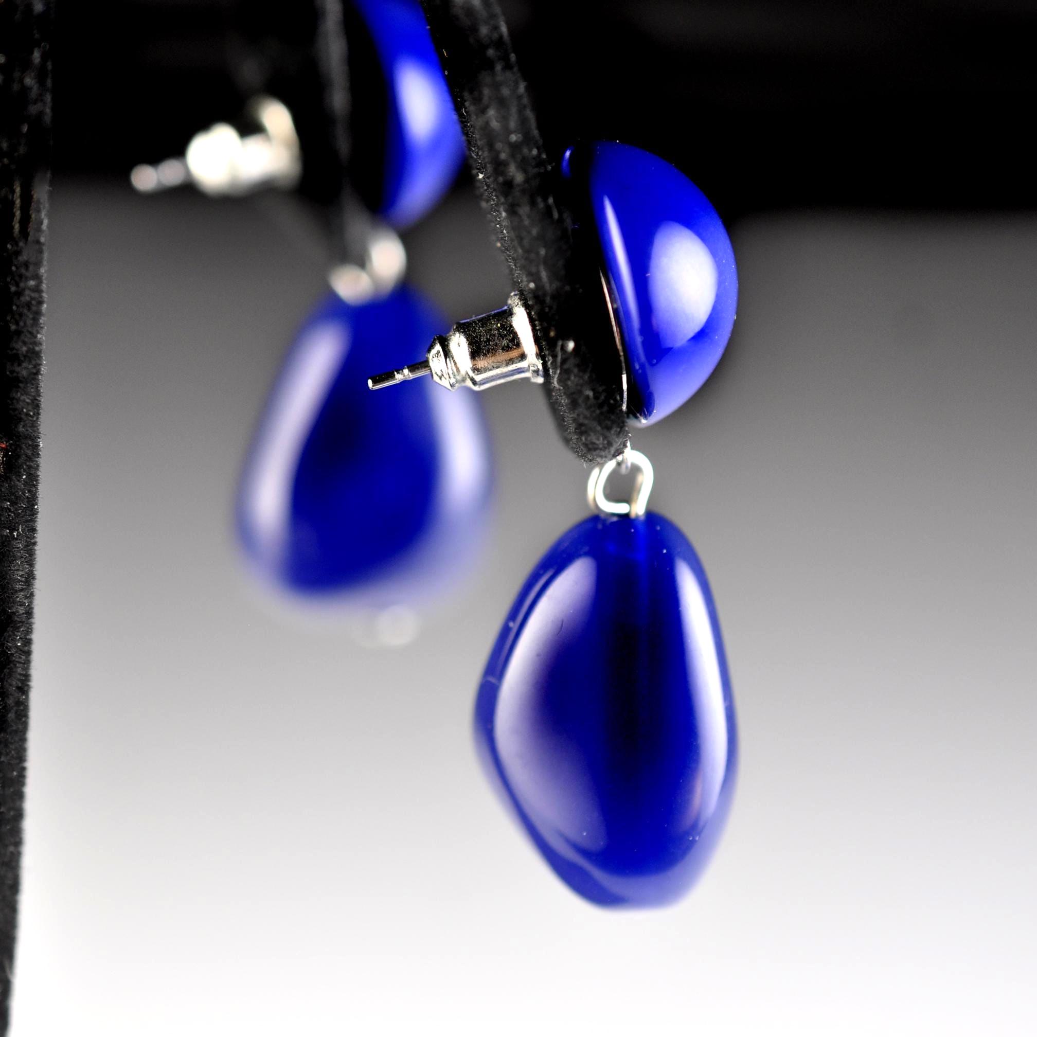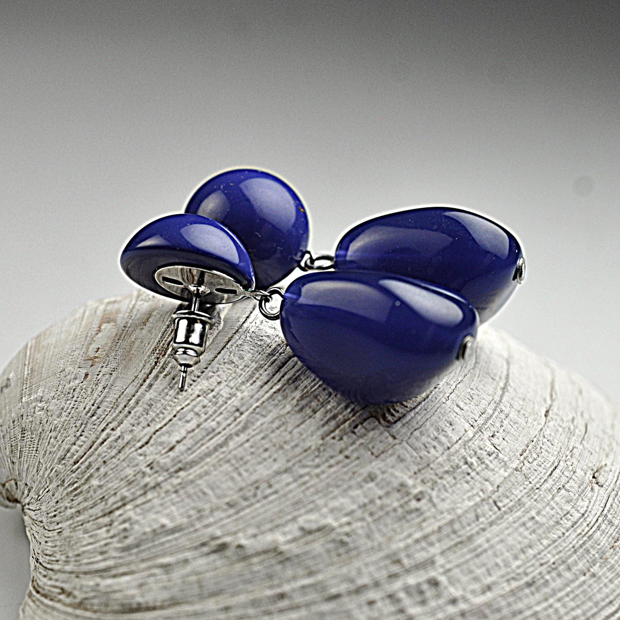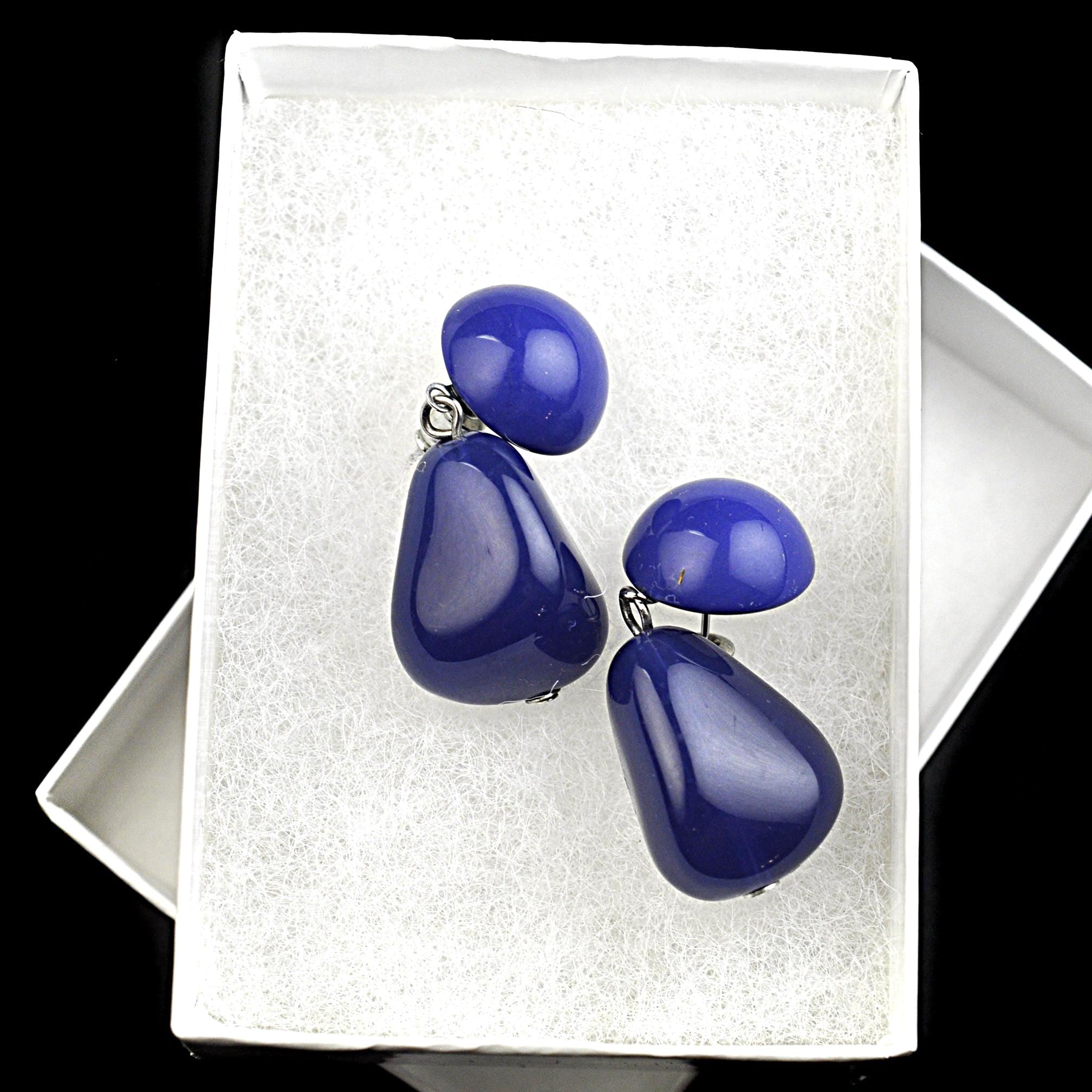 These vintage blue Lucite drop earrings have that unmistakable mid-century look that never really goes out of style. The rich dark blue color is bold without being loud, and the smooth rounded shapes give them a clean, modern feel that works just as well today as it did decades ago. Made during the height of Lucite costume jewelry popularity, these date to around the late 1950s to early 1960s. They are factory-made, not handmade, and well-constructed—far better quality than later plastic jewelry. A classic pair of wearable vintage earrings—easy to dress up, easy to wear, and unmistakably mid-century.