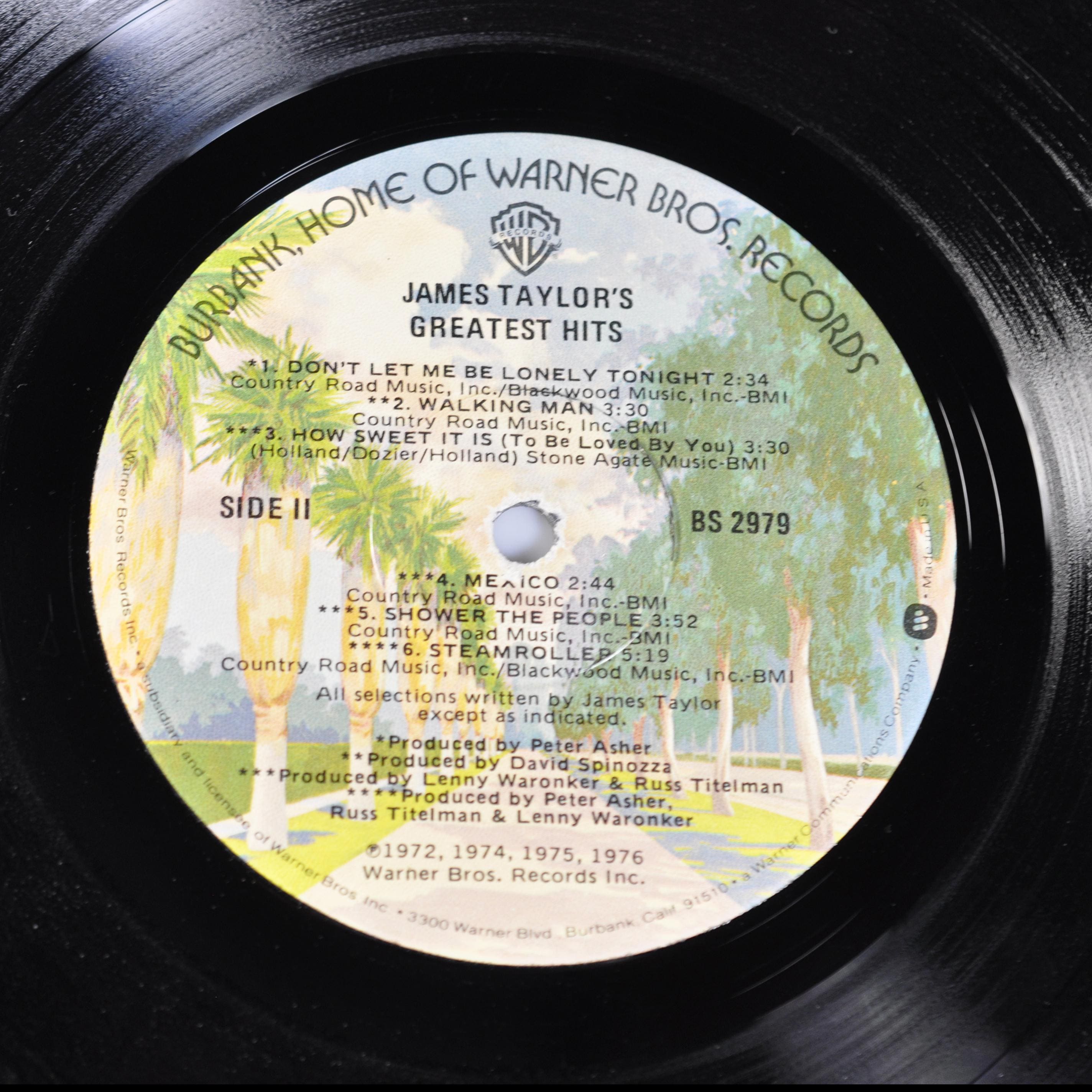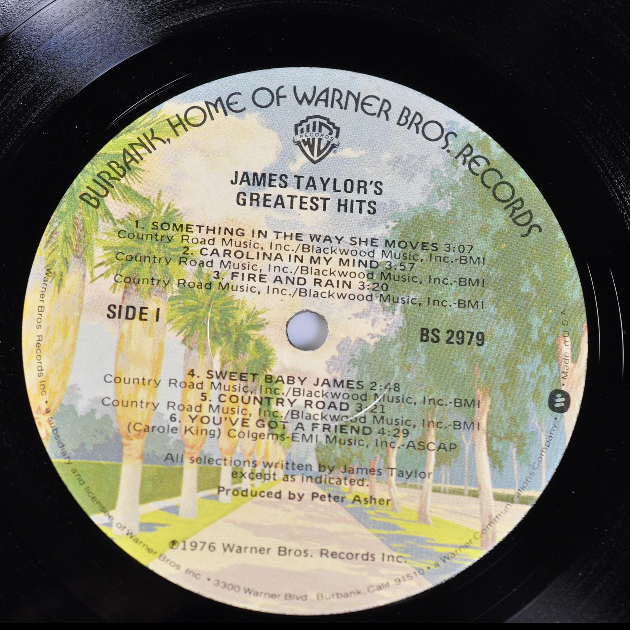 An original 1976 pressing of James Taylor’s Greatest Hits, released by Warner Bros. Records, catalog number BS 2979. A well-loved, well-known album that pulls together many of James Taylor’s most familiar songs — the kind most people recognize within the first few notes.