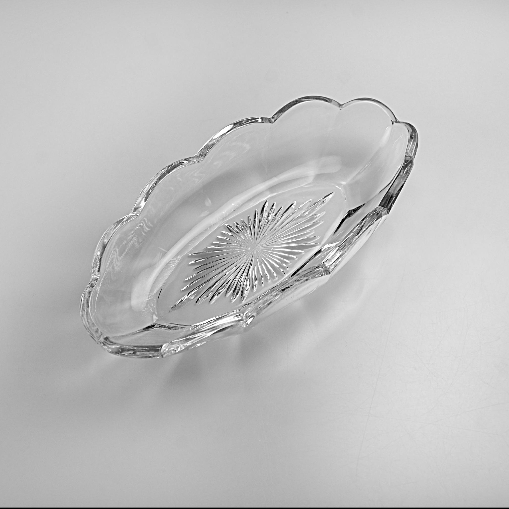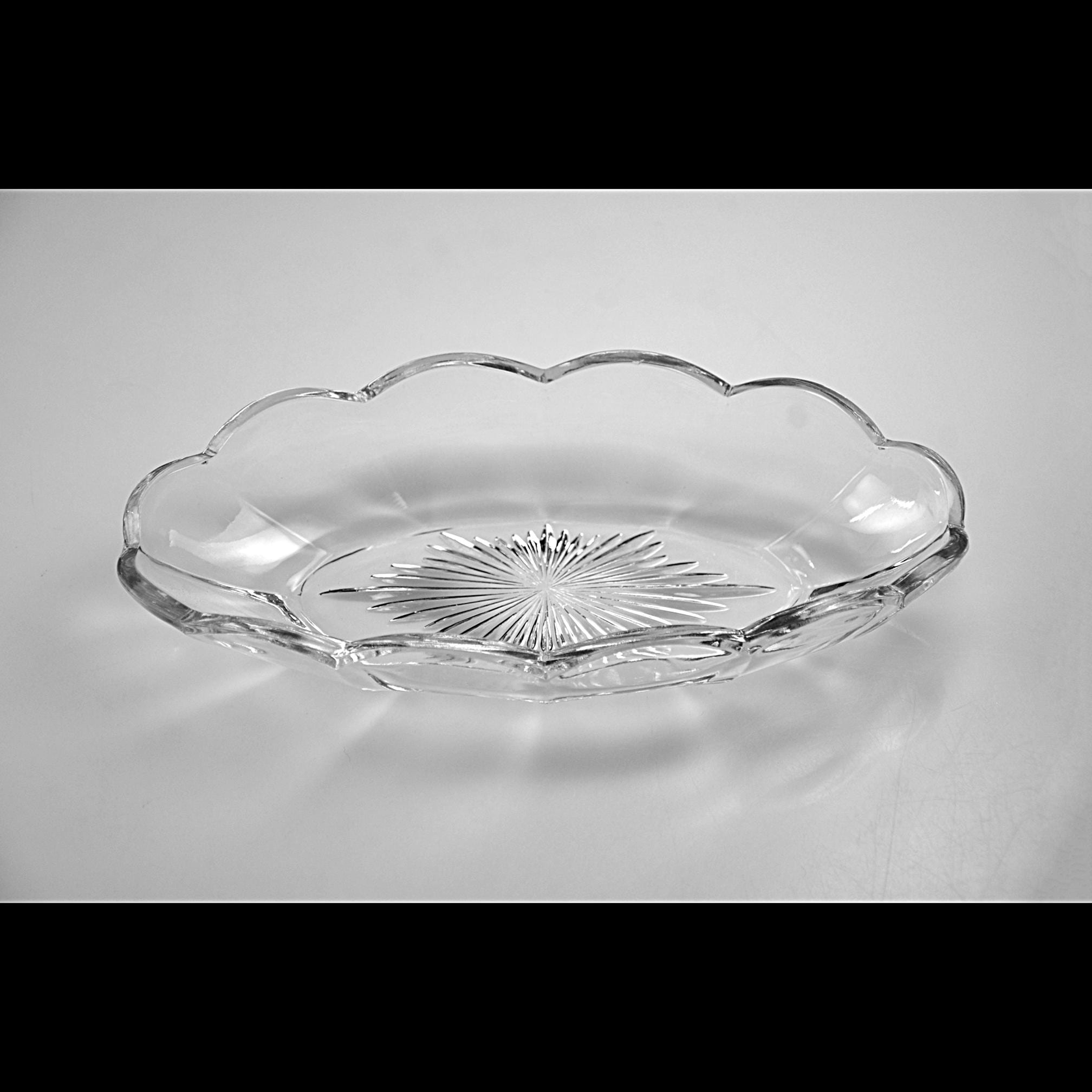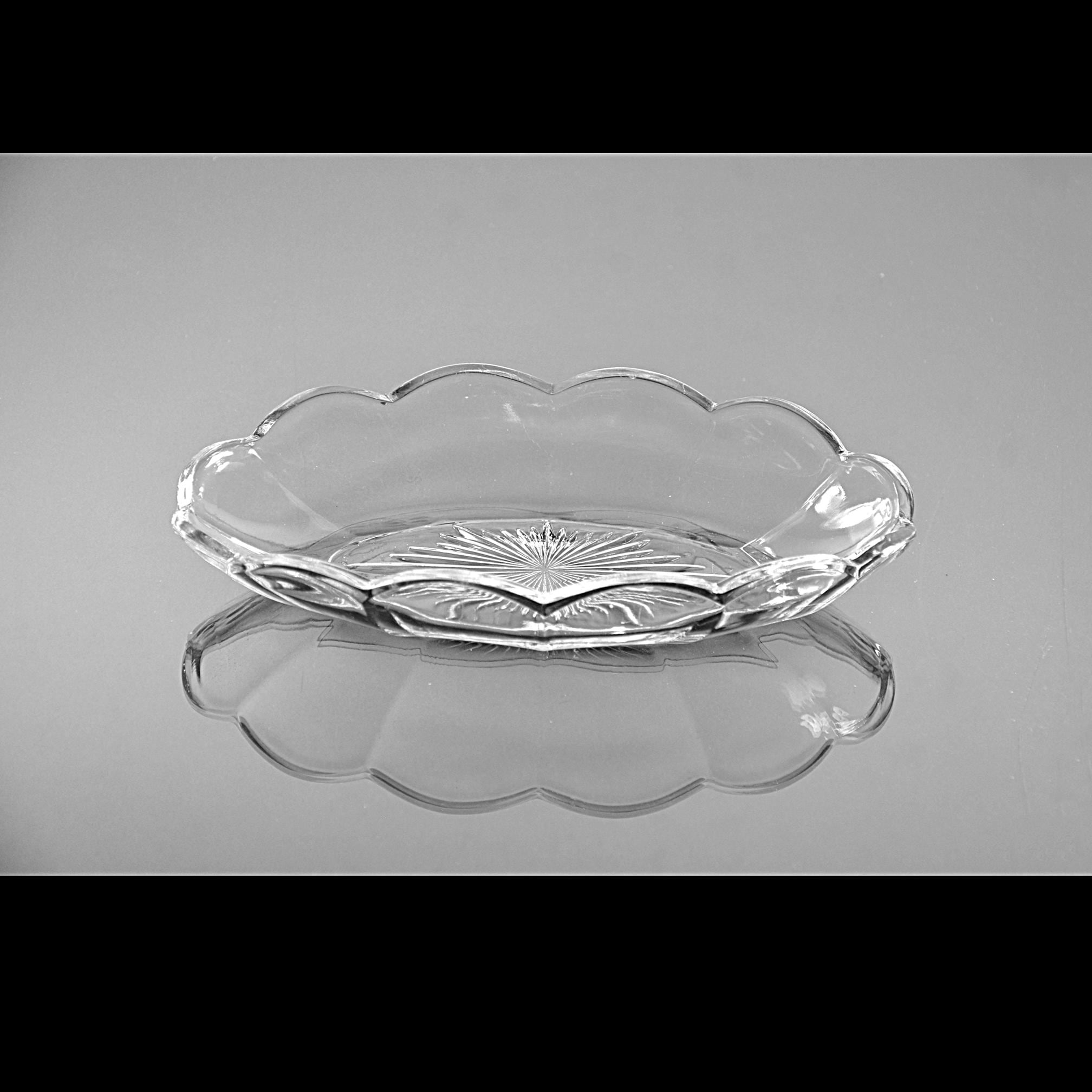 This is the kind of glass that quietly did its job for generations. Back around 1910, when pressed glass still had weight and purpose, a dish like this would have sat right in the middle of the table — holding pickles, olives, relishes, nuts, or a bit of candy brought out after supper. It wasn’t fancy for the sake of being fancy, but it was meant to look good and last. This antique Early American Pressed Glass pickle dish has clean paneled sides, a softly scalloped rim, and a classic starburst base that catches the light just enough. It’s a practical size, easy to use, and still just as useful today as it was over a century ago. What I like about pieces like this is that they don’t ask to be handled with white gloves. They were made to be used, passed, and enjoyed — and this one has survived beautifully. Perfect for serving olives or pickles, using as a relish tray, or even setting out with wrapped candies or nuts. It also makes a fine display piece for a farmhouse, early American, or traditional kitchen.
