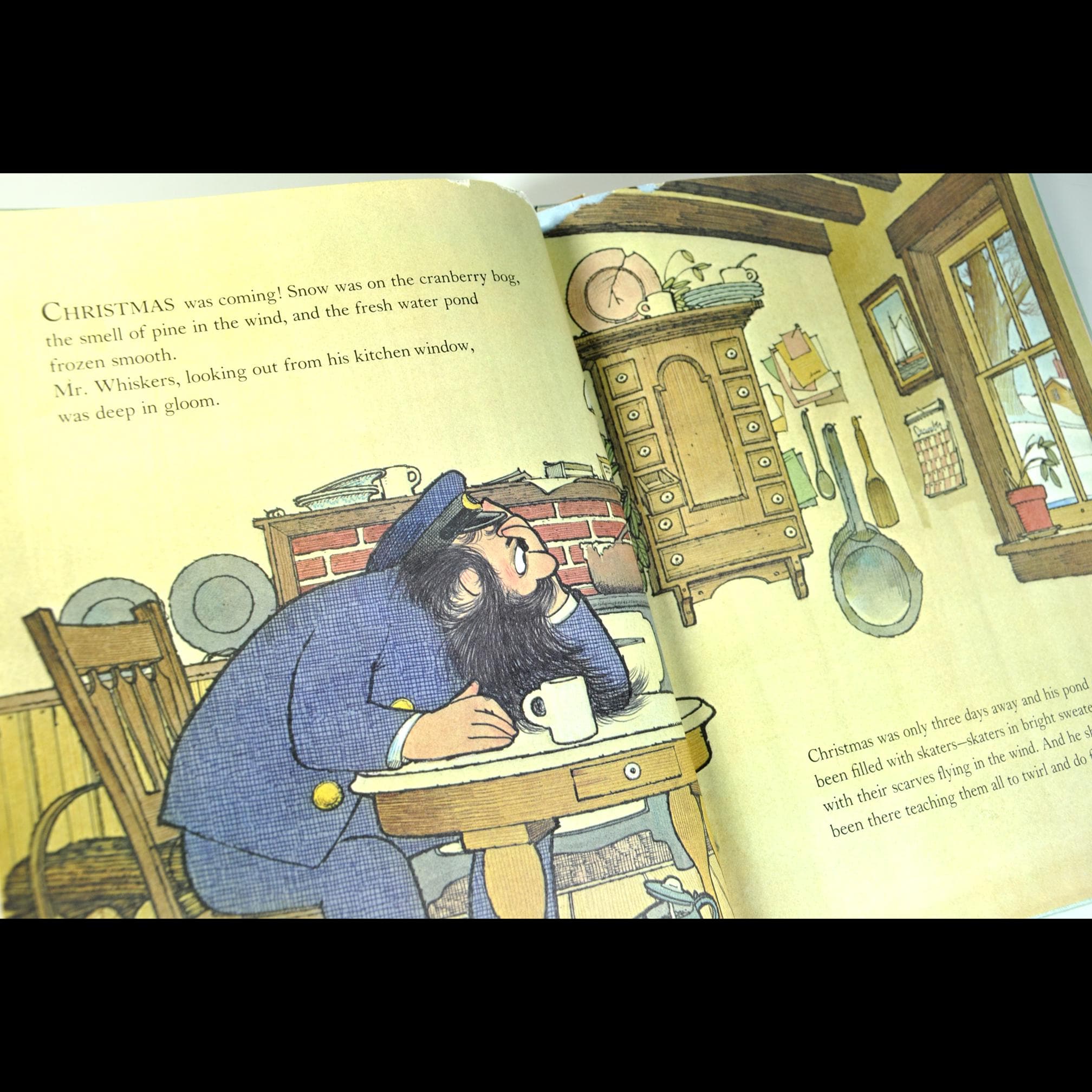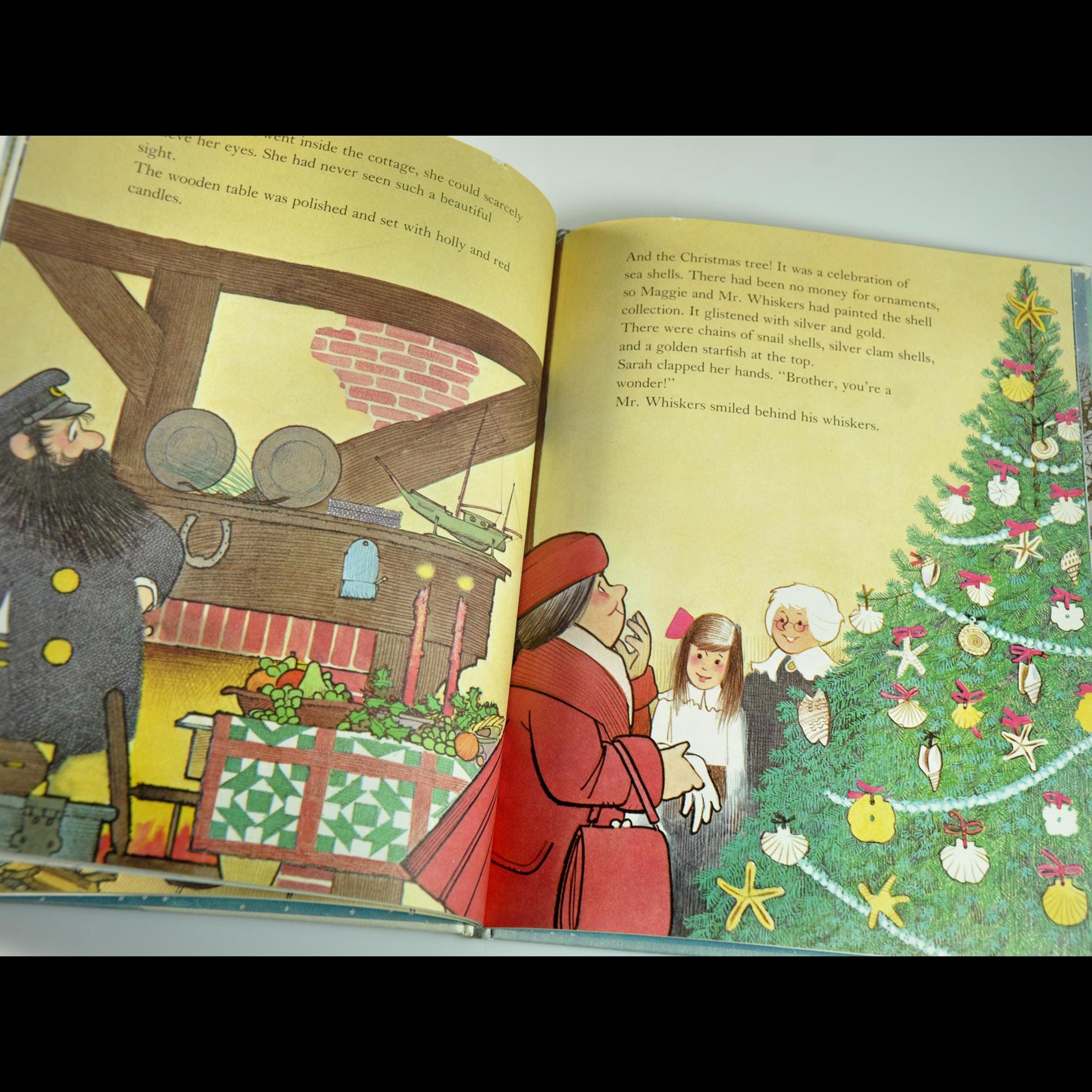 The story takes us back to Cranberryport, where Mr. Whiskers is facing a lonely, gloomy Christmas. Maggie and her grandmother step in to help him set things right, and along the way there’s talk of community, kindness, and making do with what you have. One of the sweetest moments is a Christmas tree decorated with painted seashells — simple, thoughtful, and full of heart.