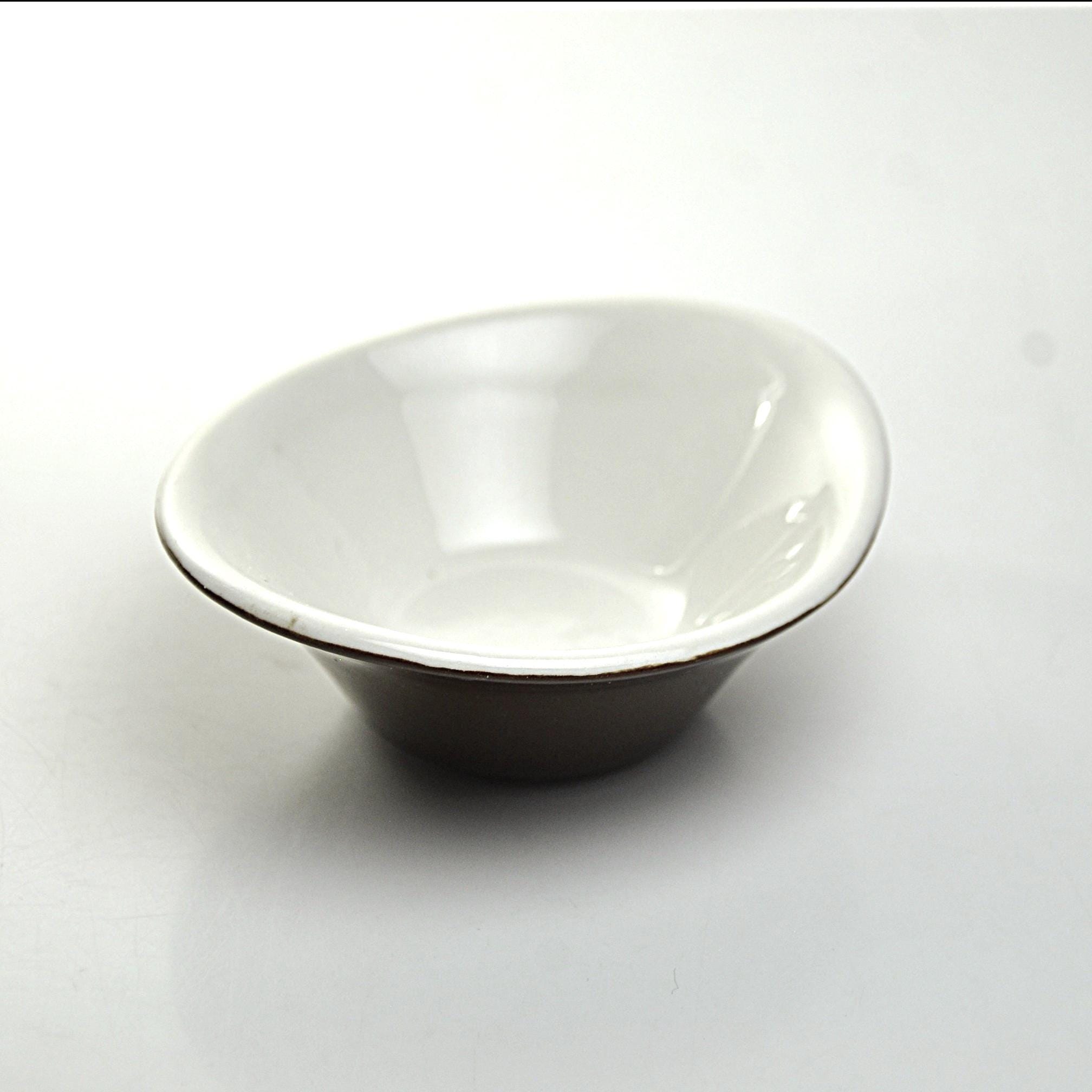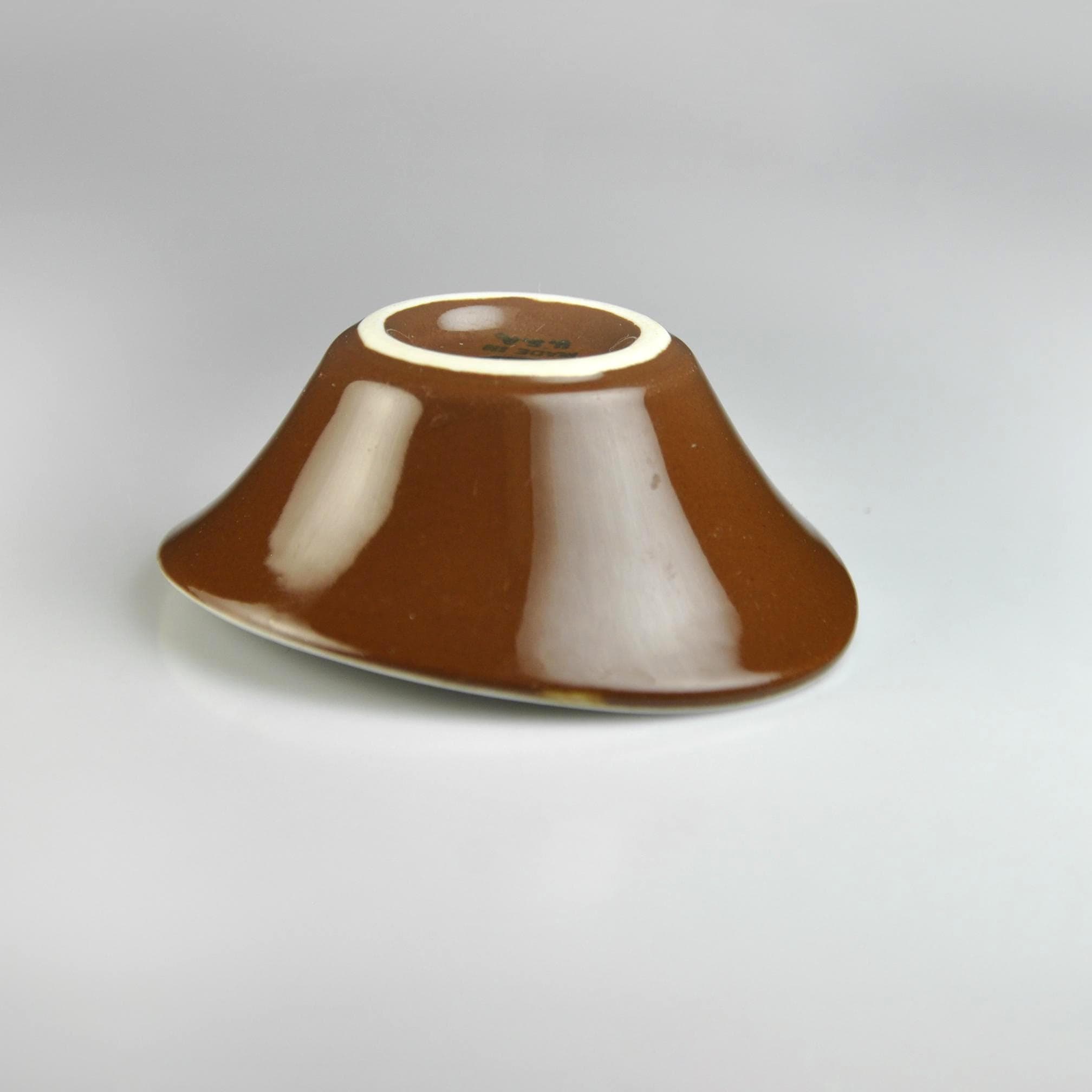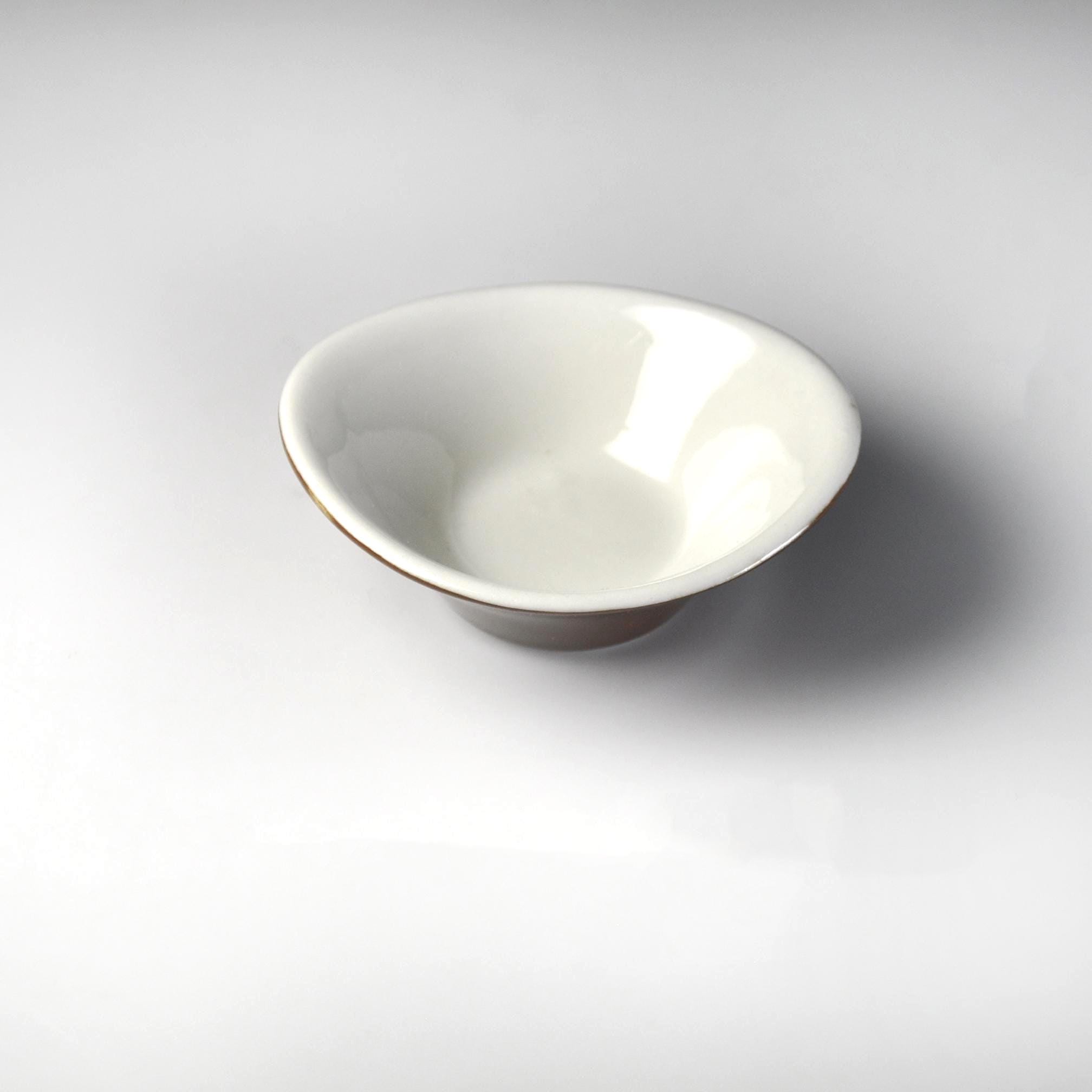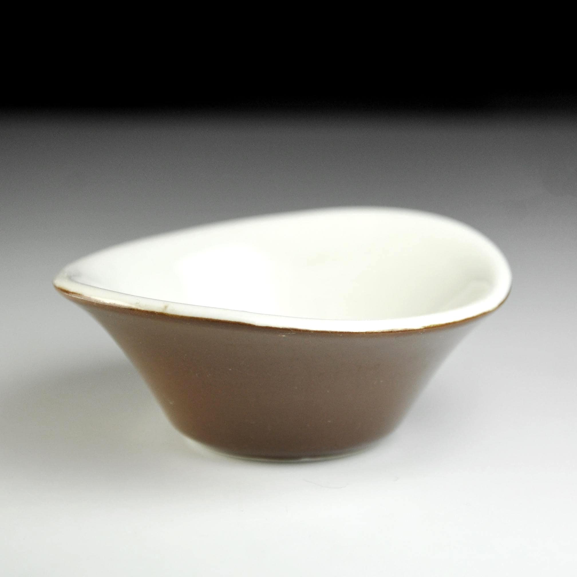 This little bowl was made to work in a restaurant atmosphere. Stamped Hall Made in USA on its bottom. Hall is a name that built its reputation on sturdy American-made china that could handle daily use without complaint. The deep brown glaze on the outside and clean white interior gives it that classic mid-century look that still feels right at home today. Originally, bowls like this were used for small servings — butter, jam, relishes, sauces, or a scoop of something simple on the side. Today it’s just as useful. It would make a perfect little prep bowl, salt cellar, dip dish, tea bag holder, change holder, or ring dish on a bedside table. Sometimes the smallest pieces are the most useful.