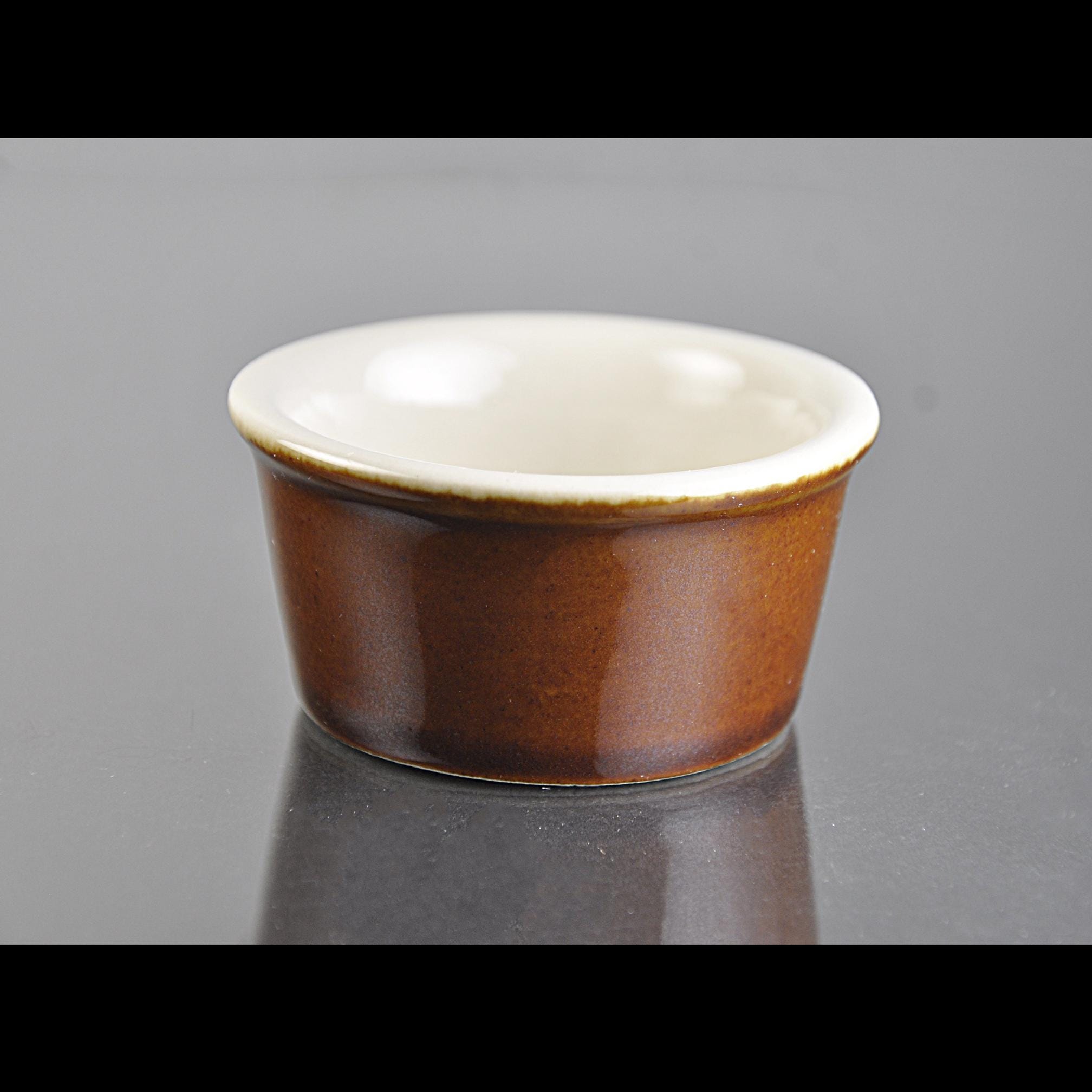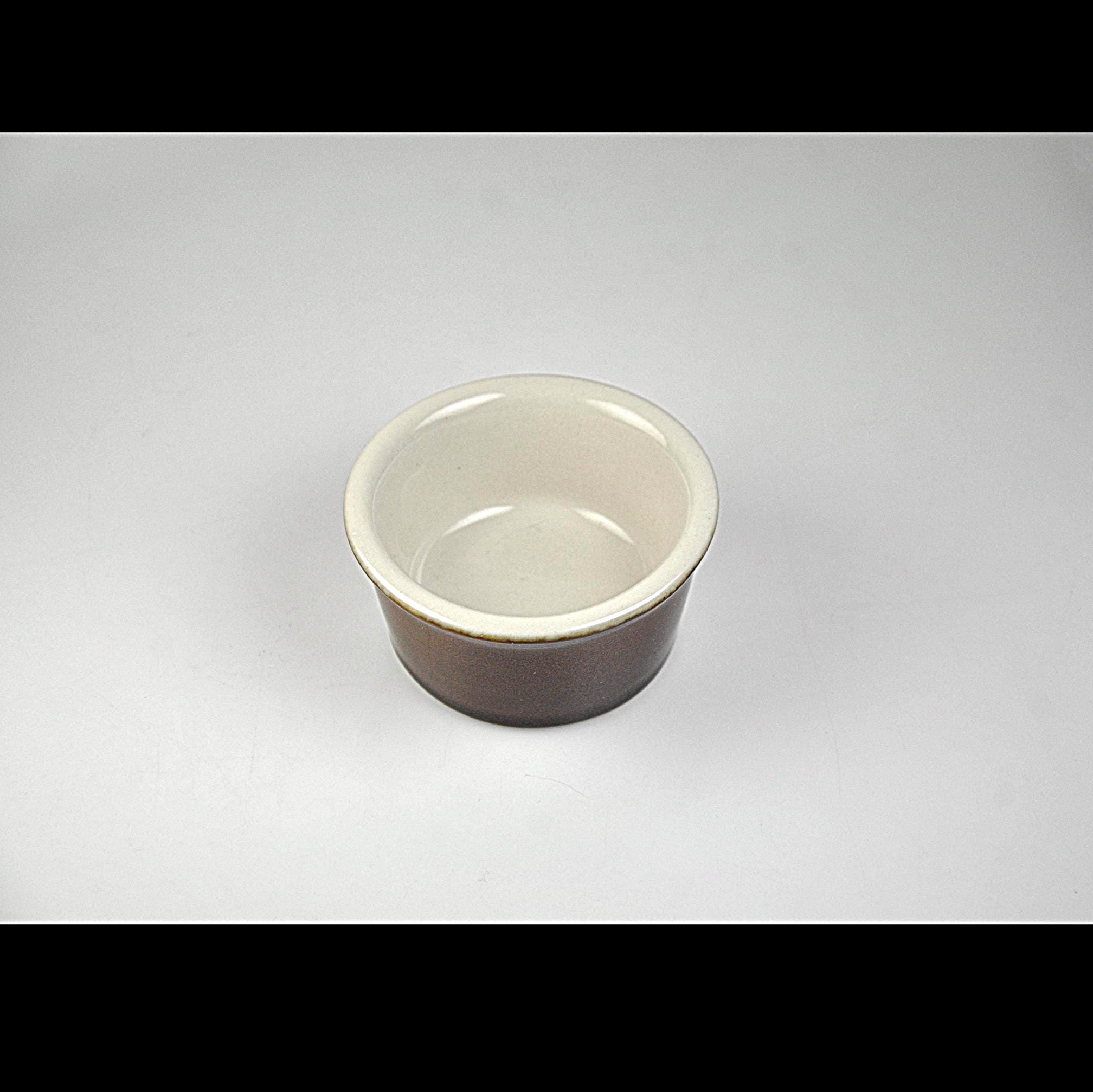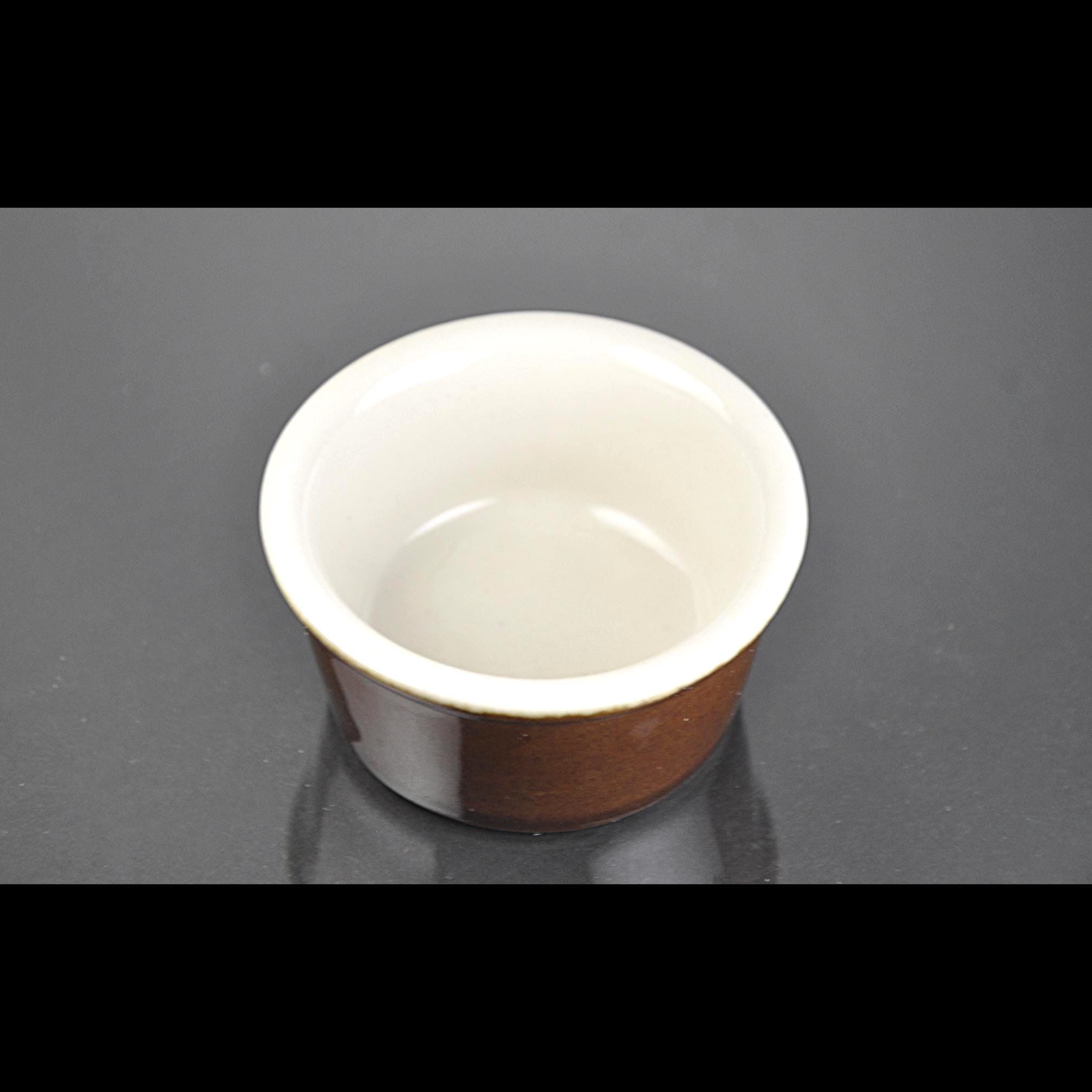 This is the kind of bowl that quietly did its job for years. Small, sturdy, and made in the USA, this heavy-duty diner-style bowl dates to the mid-20th century, likely 1950s–1970s. It has that classic brown exterior with a cream interior — a look you would have seen in small-town diners, church kitchens, school cafeterias, and corner cafés across America. It measures 3 inches in diameter and stands 1½ inches tall — the perfect size for butter pats, jam, salad dressing, dipping sauce, or even a small prep bowl in today’s kitchen. The glaze is smooth and clean. No chips. No cracks. No crazing. These pieces were built to survive commercial kitchens, and this one still looks ready for service.