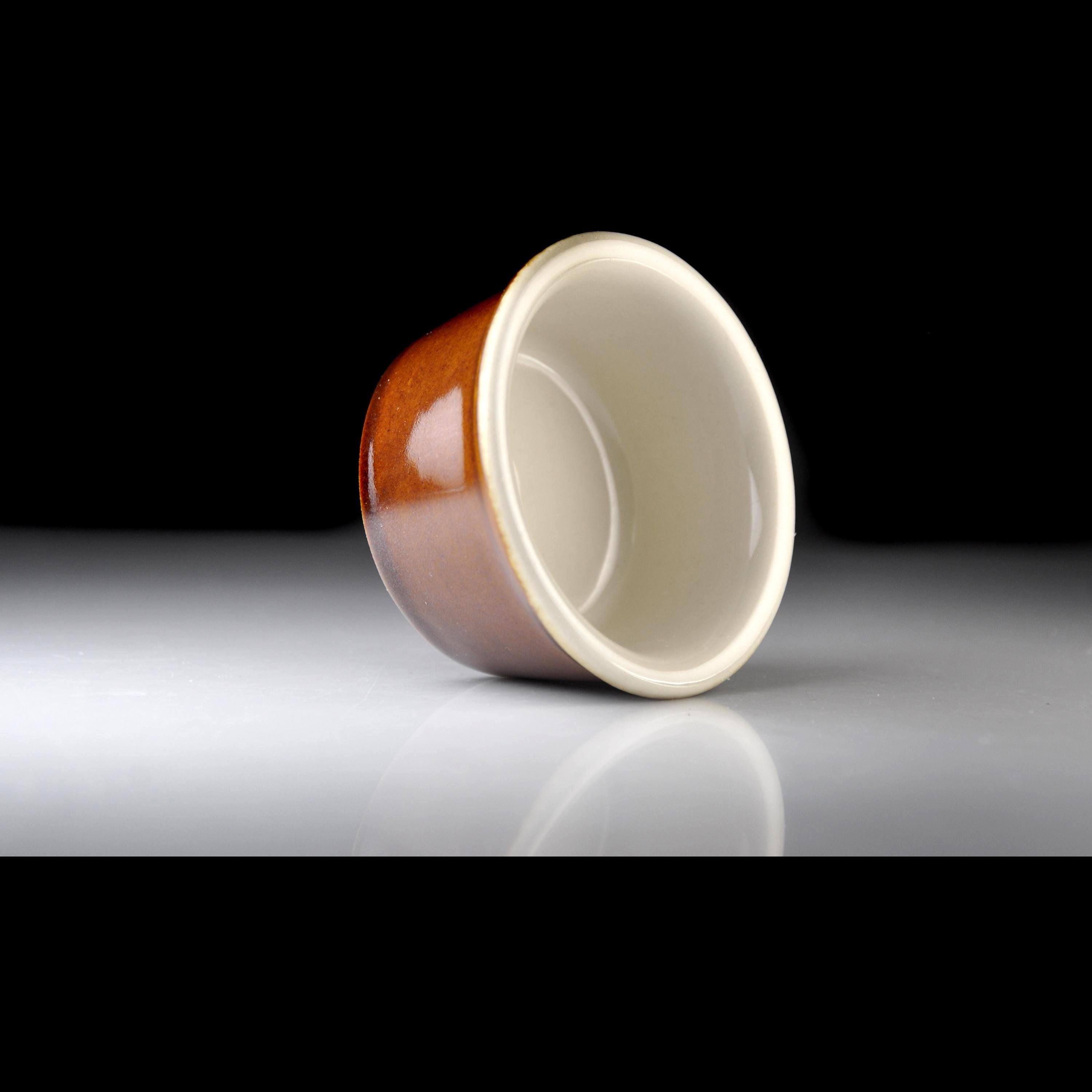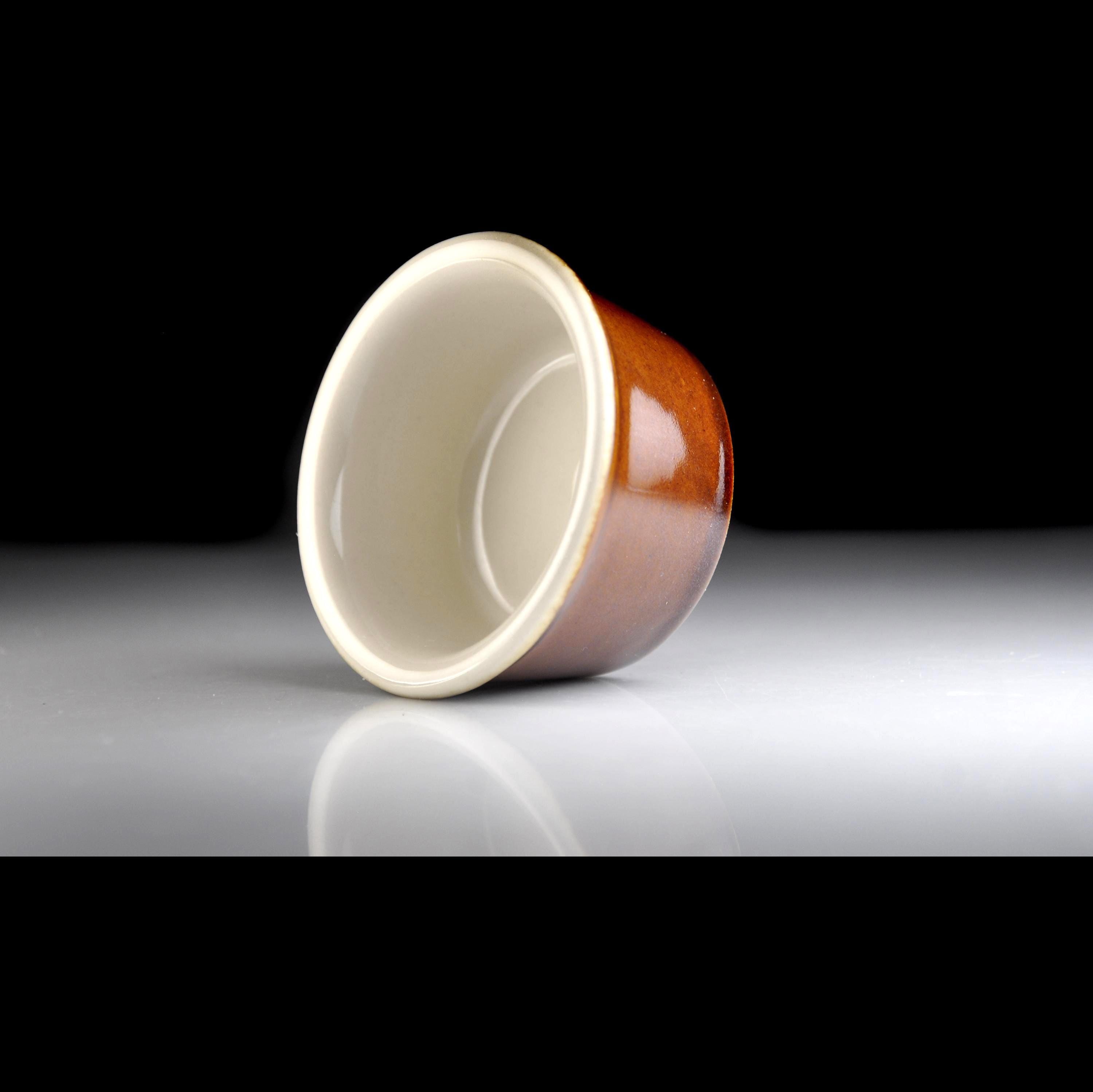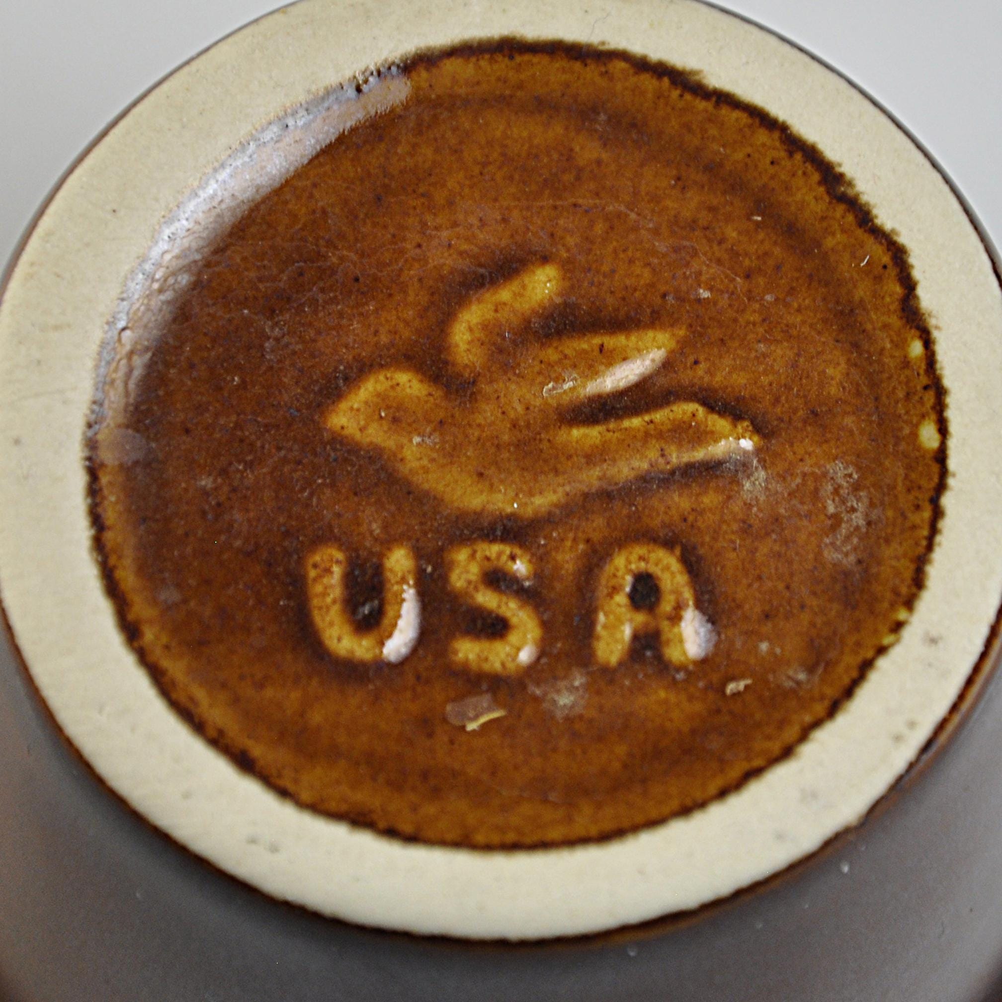 This is the kind of bowl that quietly did its job for years. Small, sturdy, and made in the USA, this heavy-duty diner-style bowl dates to the mid-20th century, likely 1950s–1970s. It has that classic brown exterior with a cream interior — a look you would have seen in small-town diners, church kitchens, school cafeterias, and corner cafés across America. It measures 3 inches in diameter and stands 1½ inches tall — the perfect size for butter pats, jam, salad dressing, dipping sauce, or even a small prep bowl in today’s kitchen. The glaze is smooth and clean. No chips. No cracks. No crazing. These pieces were built to survive commercial kitchens, and this one still looks ready for service.