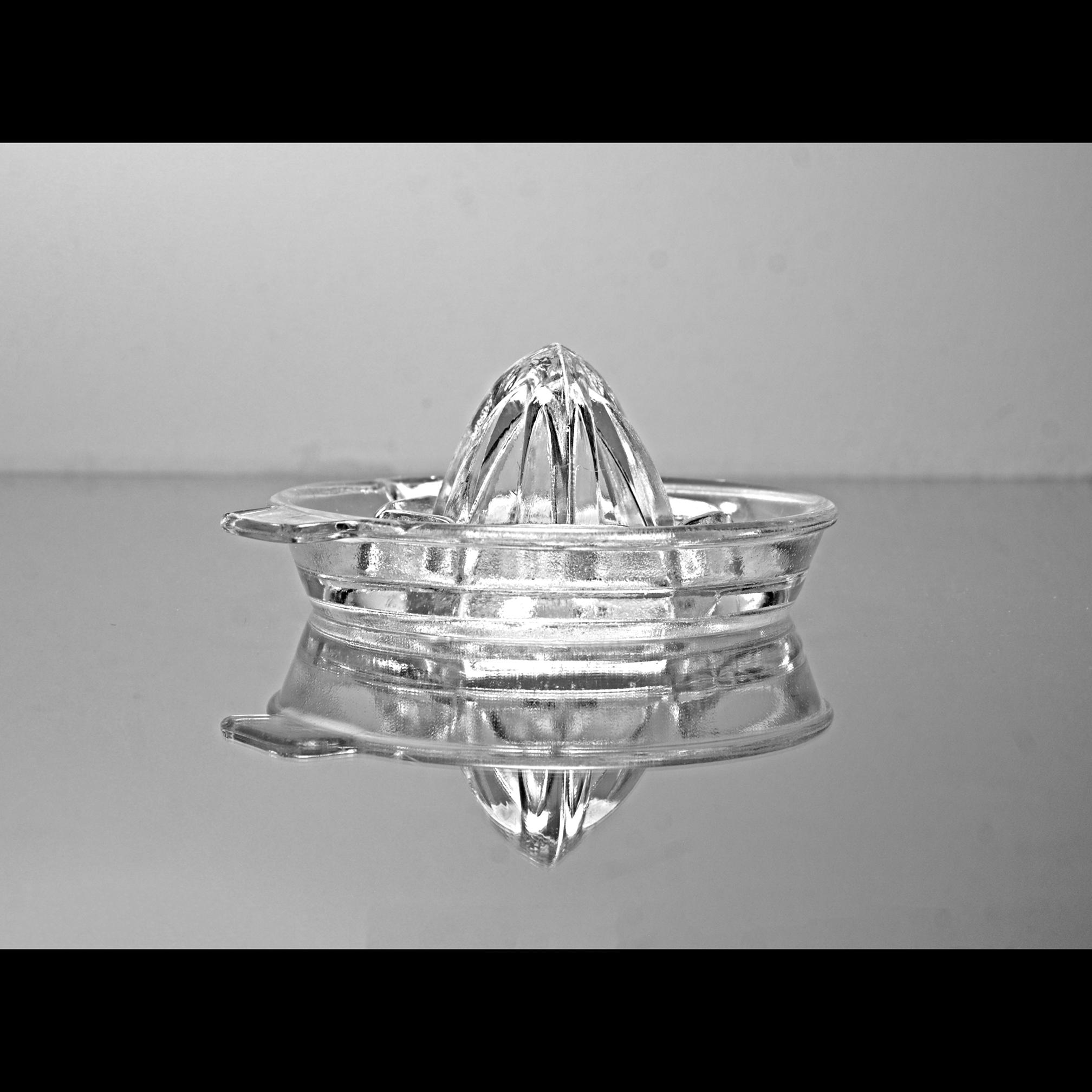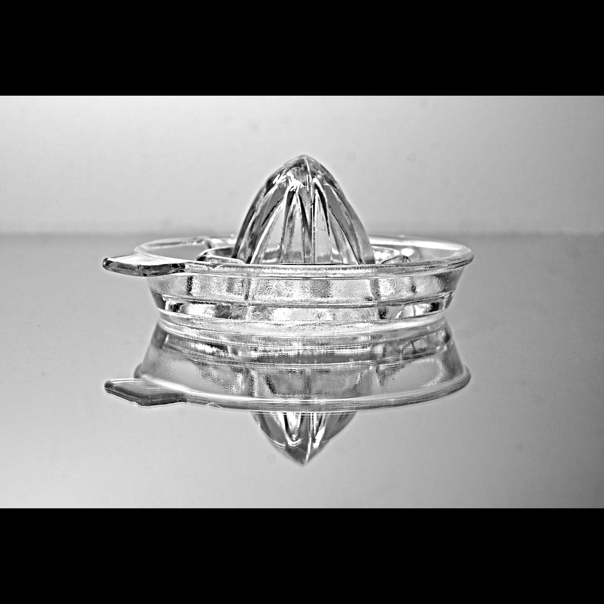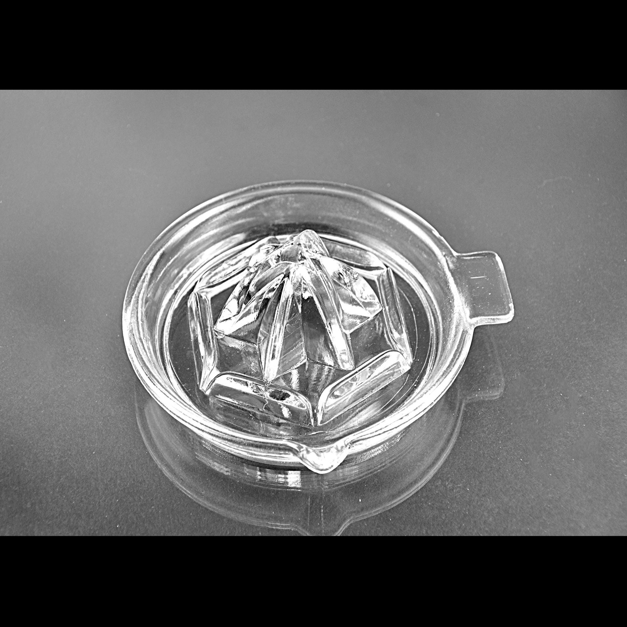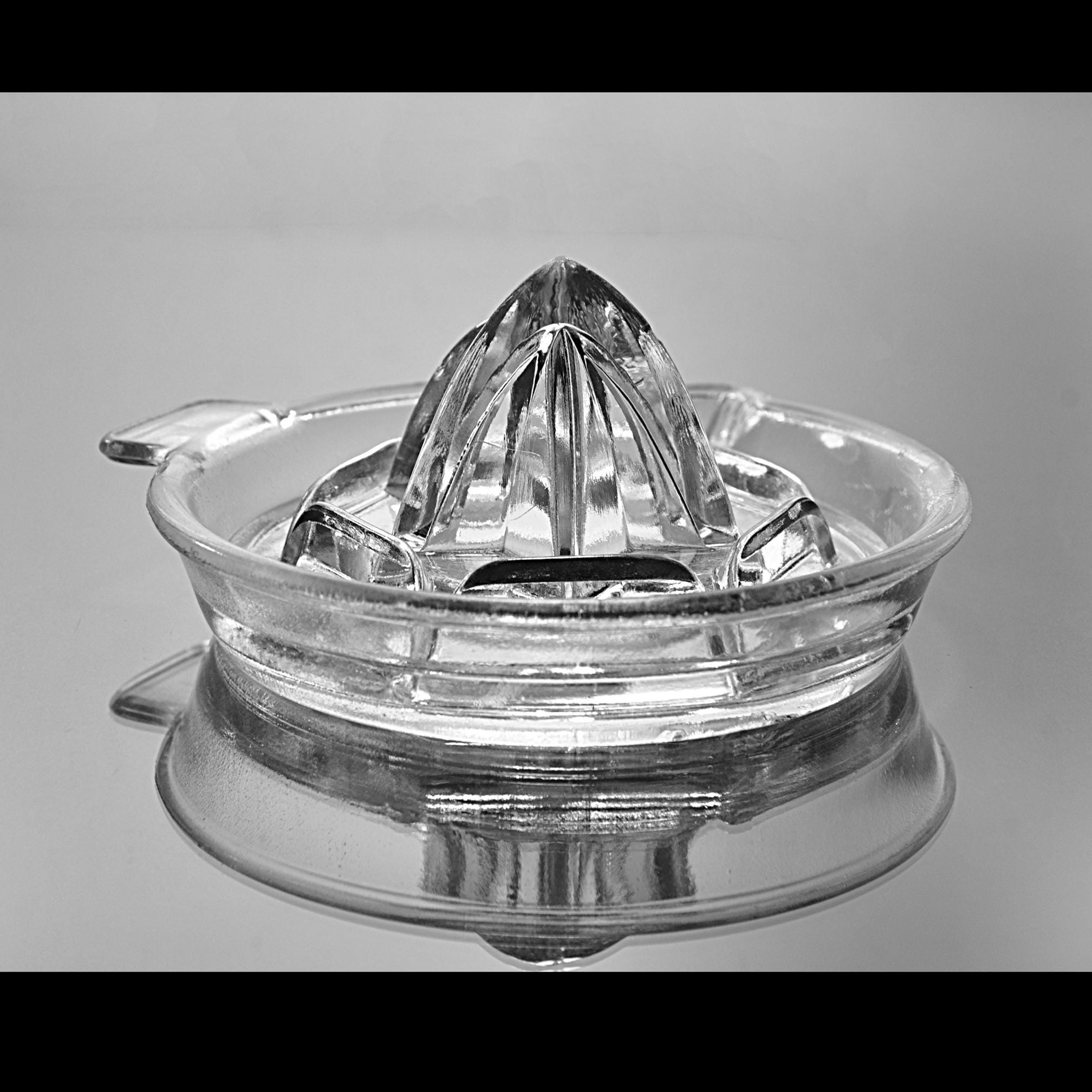 There was a time when fresh orange juice wasn’t poured from a carton — it was squeezed right at the table. This clear glass citrus juicer dates to the 1930s–1940s, when practical kitchen tools were made sturdy and meant to last. It’s a classic Depression-era design with a ribbed reamer cone in the center, built-in strainer slots to catch pulp and seeds, a pour spout, and a small side tab for steady handling. Pieces like this were everyday tools. Nothing fancy. Just dependable glass that did its job and did it well. Today it works just as beautifully in a working kitchen as it does in a vintage farmhouse display.