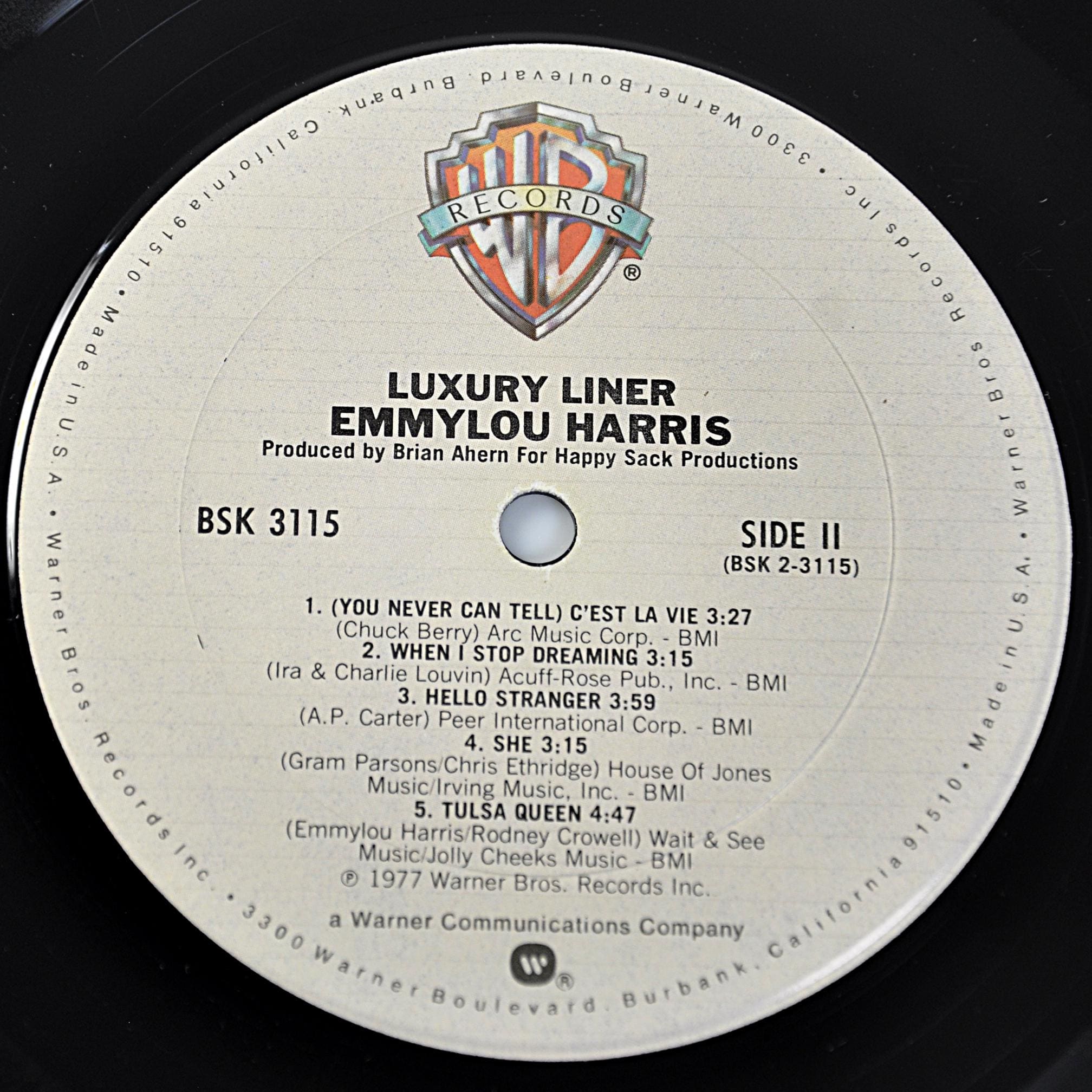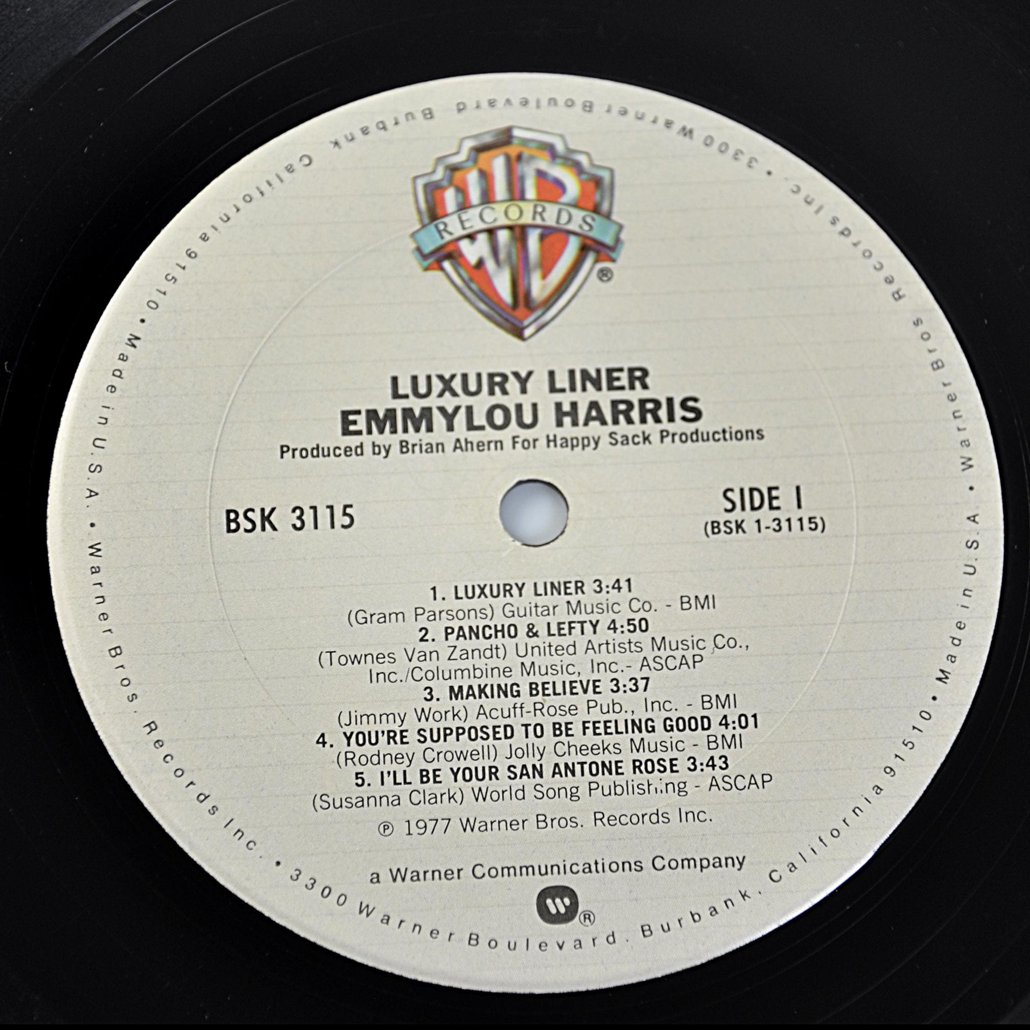 A late 1970s Emmylou Harris LP featuring strong songwriting, tight musicianship, and that unmistakable voice. This is her 1977 album Luxury Liner, released on Warner Bros. Records (BSK 3115). It’s one of those records that helped define the country-rock sound of the era — Nashville talent blended with California polish. The lineup alone reads like a session hall of fame. It’s a solid album from her prime years — the kind people still pull off the shelf and actually play.