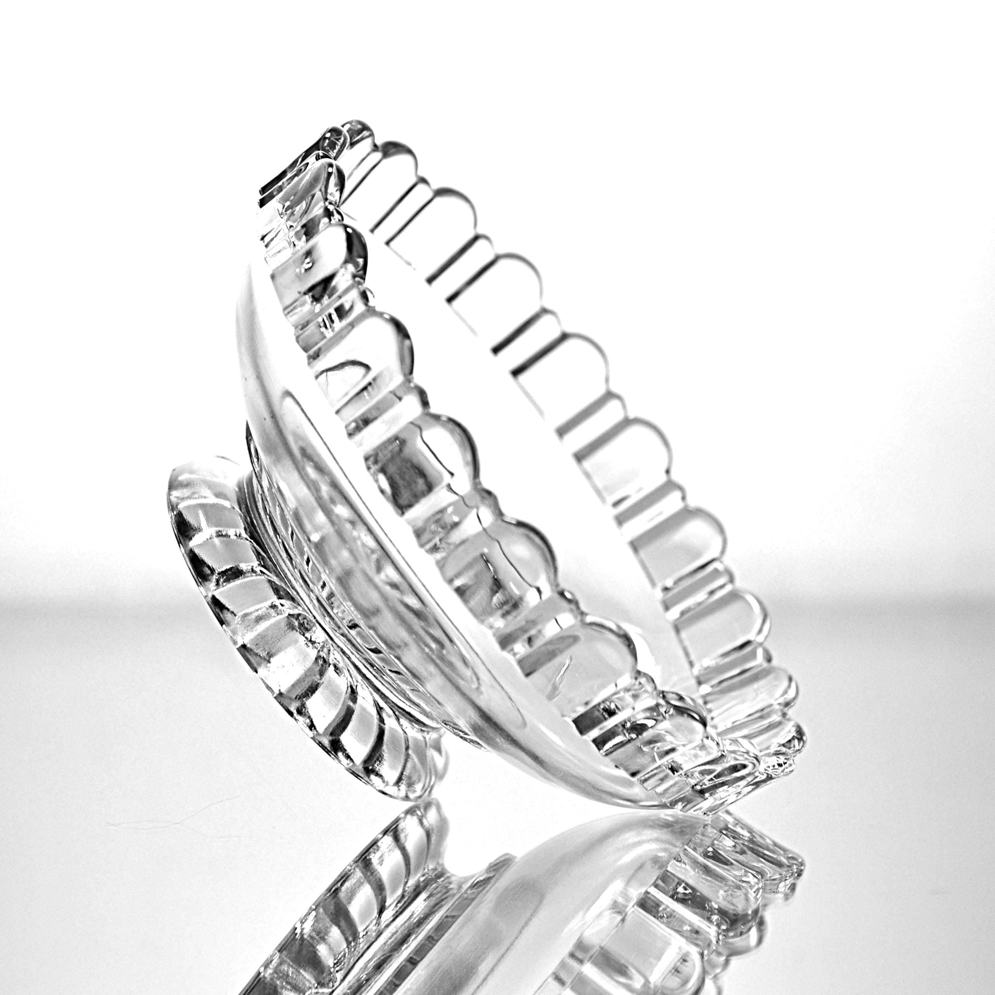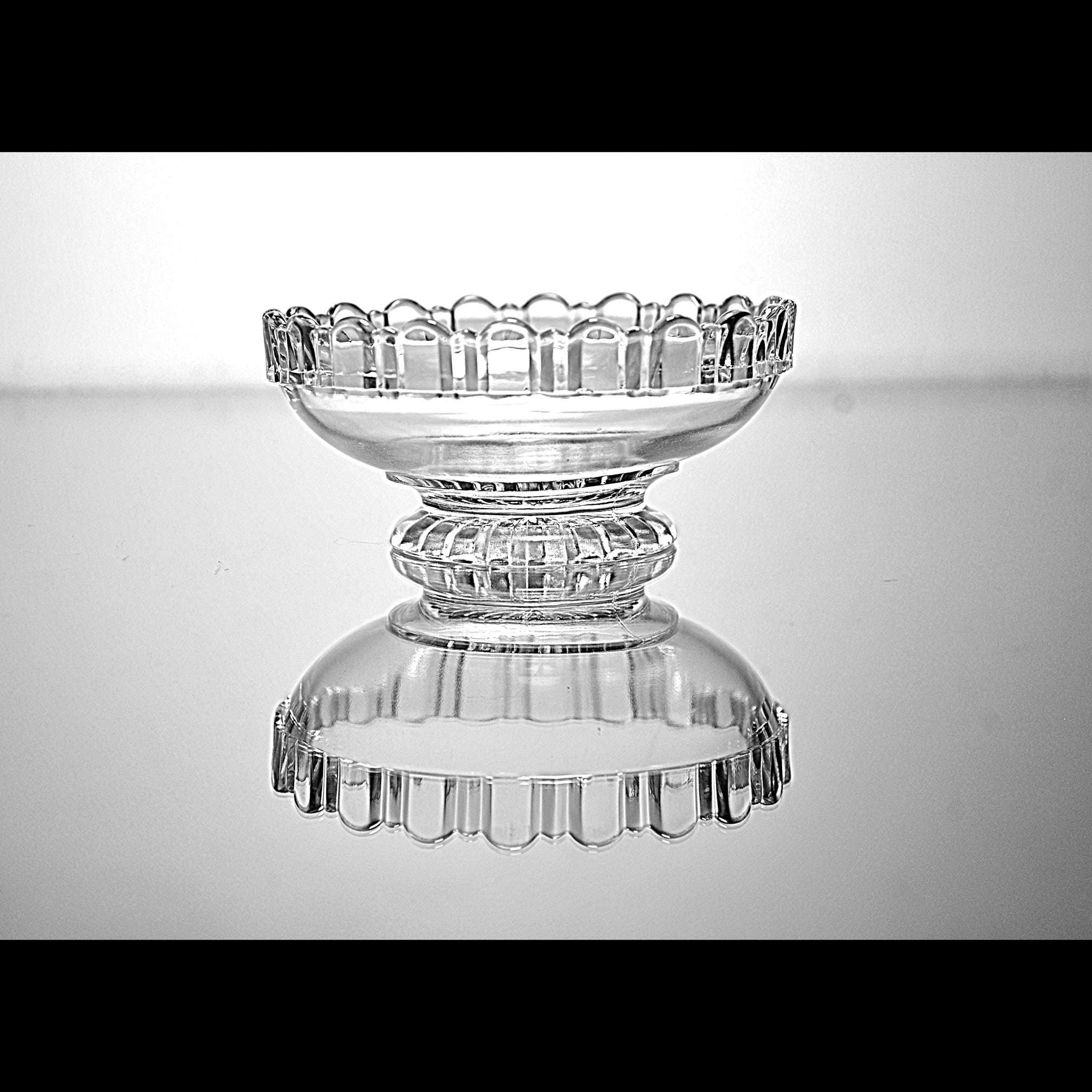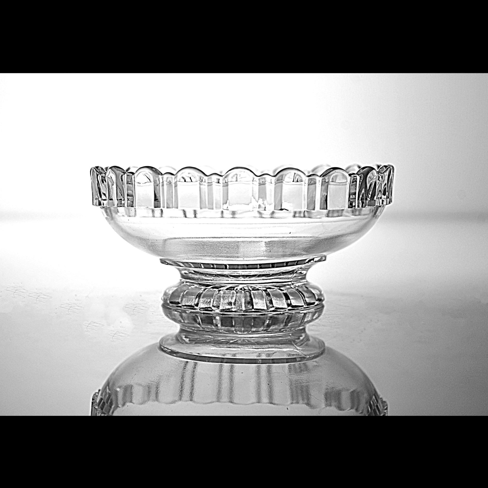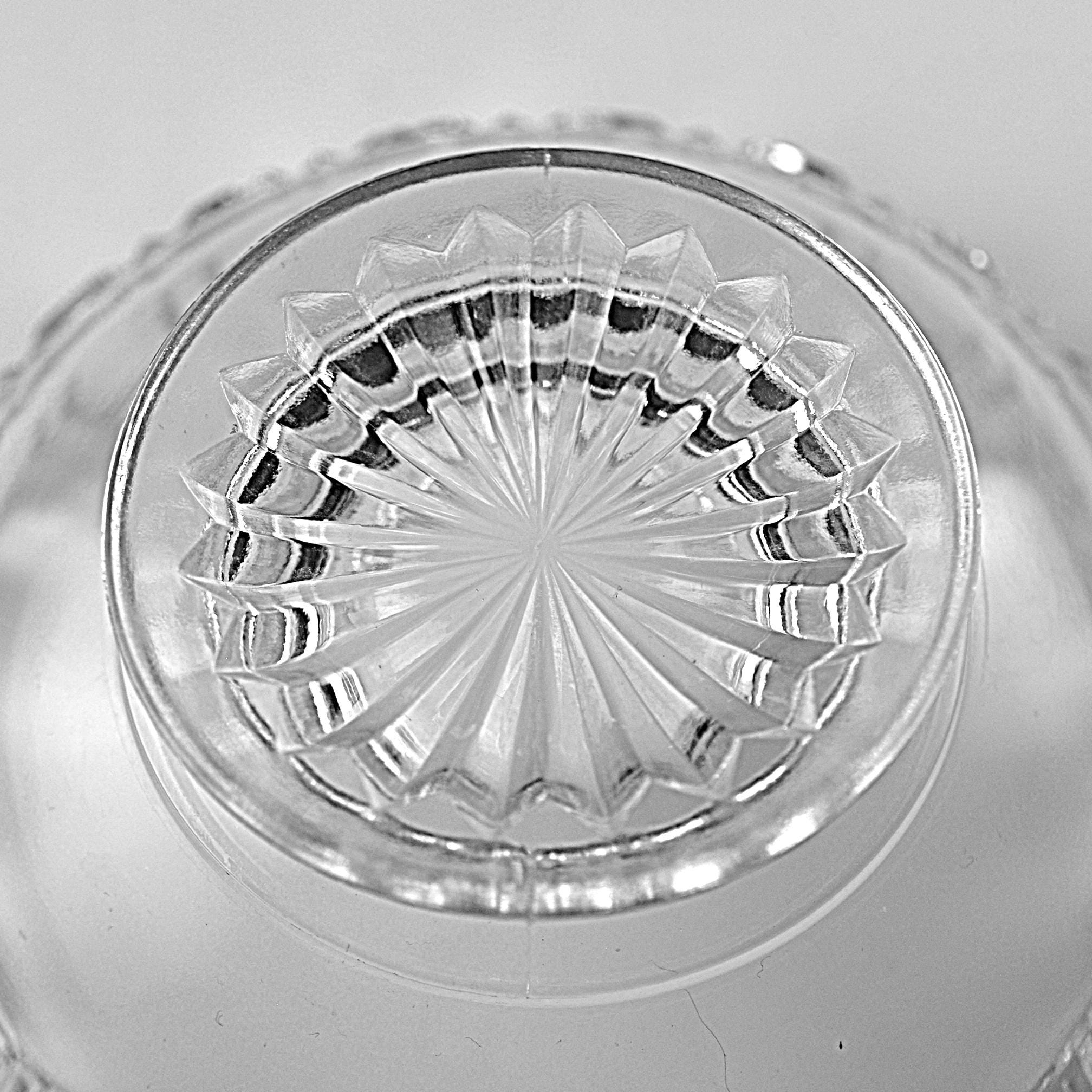 Every once in a while, something turns up that reminds you how long ordinary household pieces have been part of everyday life. This little footed bowl dates back to the Victorian era, when pressed glass was becoming popular in American homes. This piece was made by George Duncan & Sons, a Pittsburgh glass company known for producing beautiful Early American Pressed Glass patterns in the late 1800s. According to the Early American Pattern Glass Society, this pattern was introduced in 1885, placing this bowl firmly in the Victorian period. The design is simple but elegant. Around the rim is a row of rounded panels that catch the light nicely, while the base features a classic pressed starburst pattern. The small pedestal foot lifts the bowl just enough to give it that graceful 19th-century tableware look. Pieces like this were commonly used for berries, nuts, candies, or small individual servings on the Victorian dining table. Today it makes a lovely little dish for candy, jewelry, trinkets, or simply as a small antique display piece. After more than a century, this bowl is still clear, bright, and ready for another home.