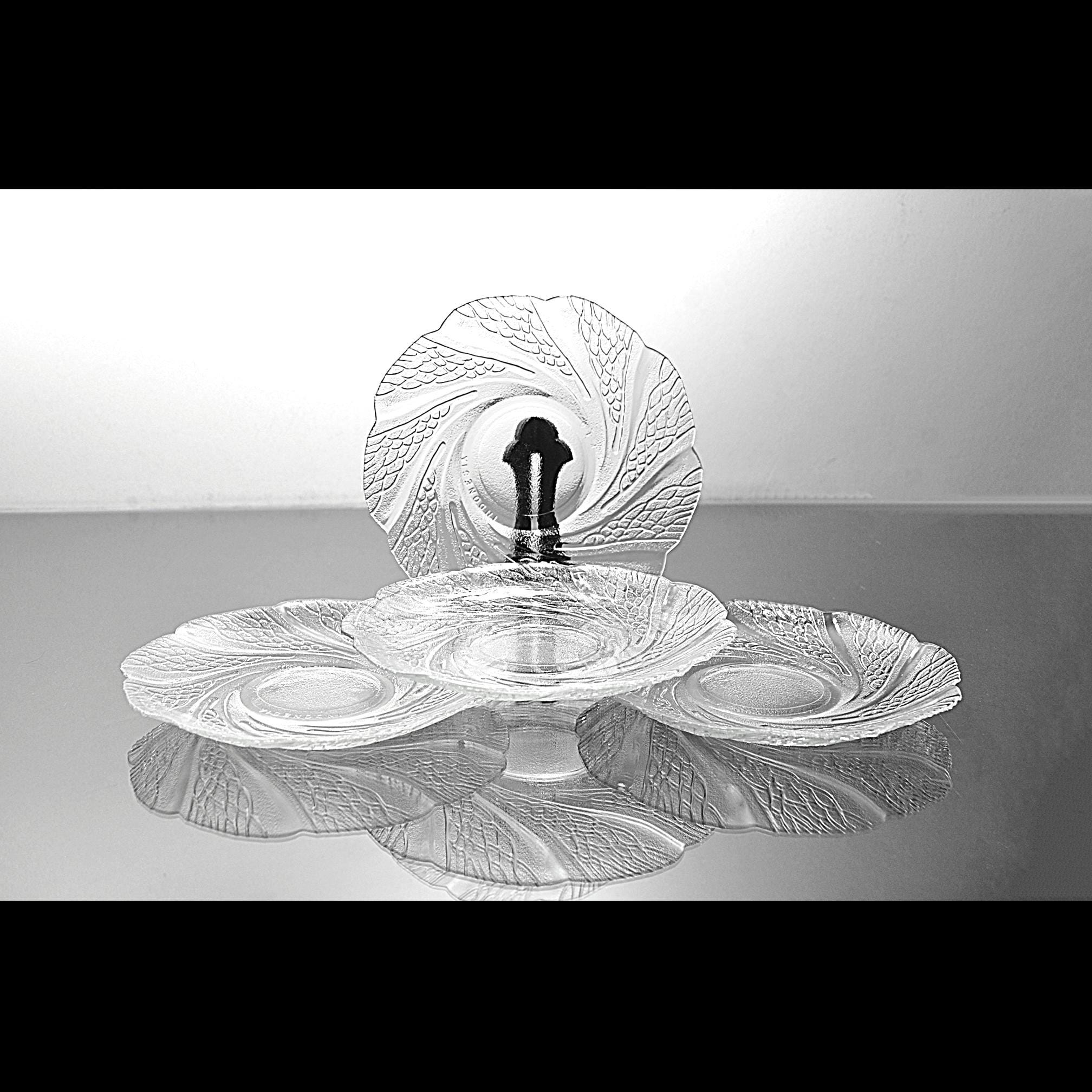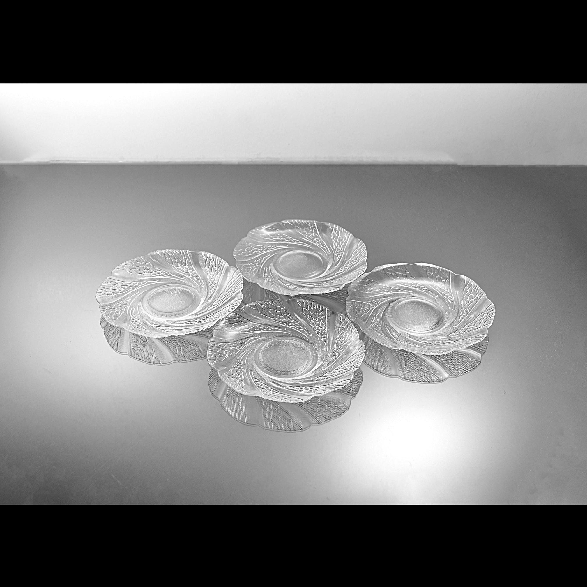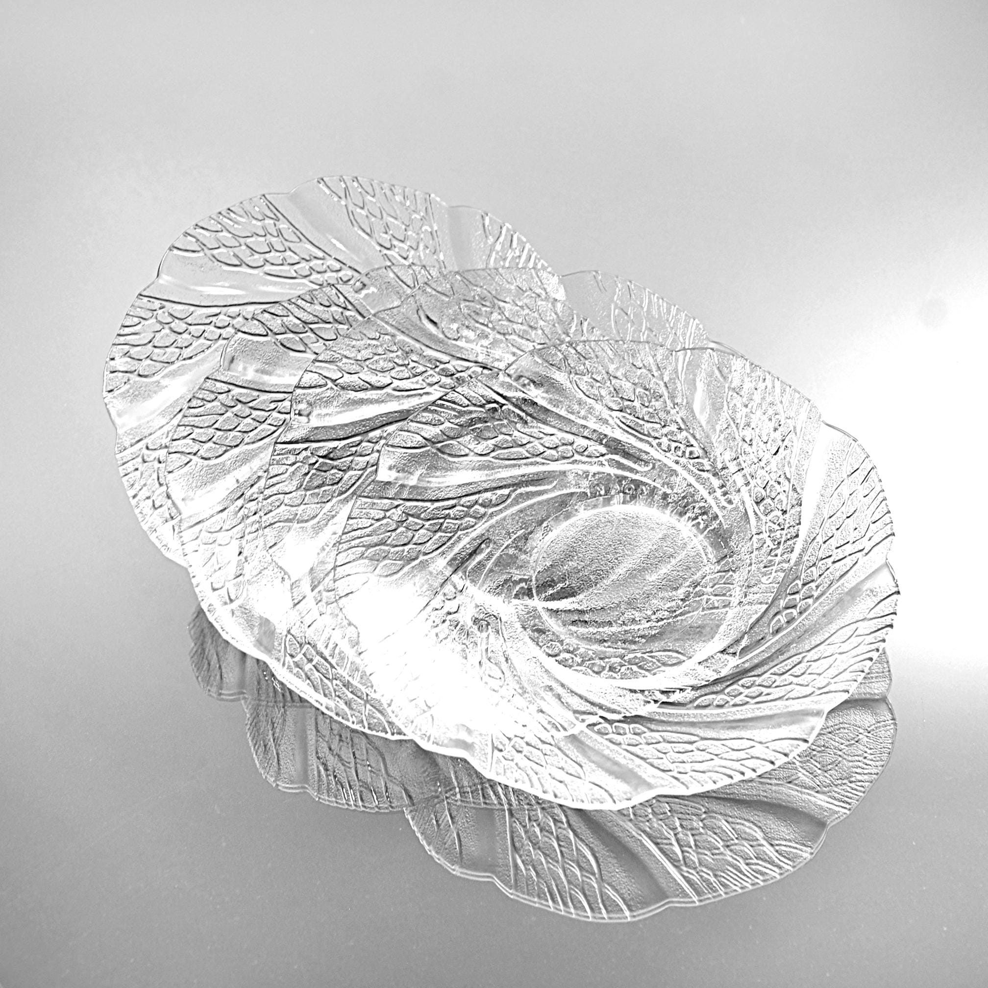 These caught my eye right away—the way the pattern moves across the glass has a calm, almost flowing feel to it. It’s easy to see why this pattern is called Serene. This is a set of four clear glass saucers, each measuring 6 inches in diameter, made in Indonesia and marked KIG. The design has a soft swirl with a textured leaf-like pattern that really comes to life when the light hits it. They’re simple, but not plain—and that makes them easy to use just about anywhere. They’re the perfect size for desserts, a slice of cake, or sitting down with a cup of tea in the afternoon. They also make a nice little plate for entertaining when you don’t want to bring out anything too formal. All four pieces are in excellent condition with no chips or cracks. Clean, clear, and ready for the table. These are the kind of pieces that don’t shout for attention—but once they’re on the table, they quietly make everything look just a little nicer.