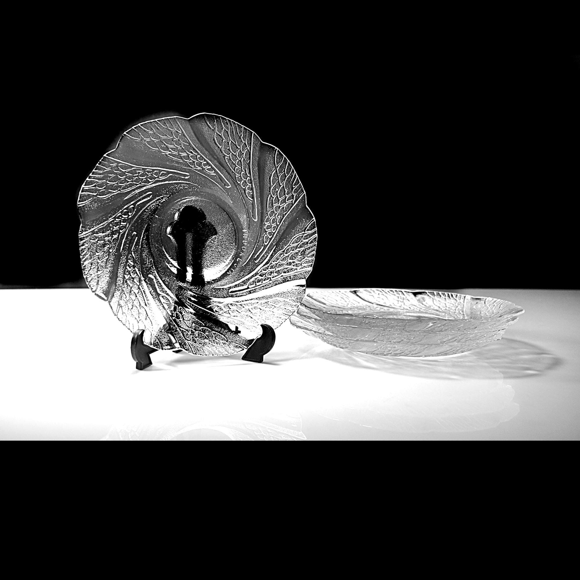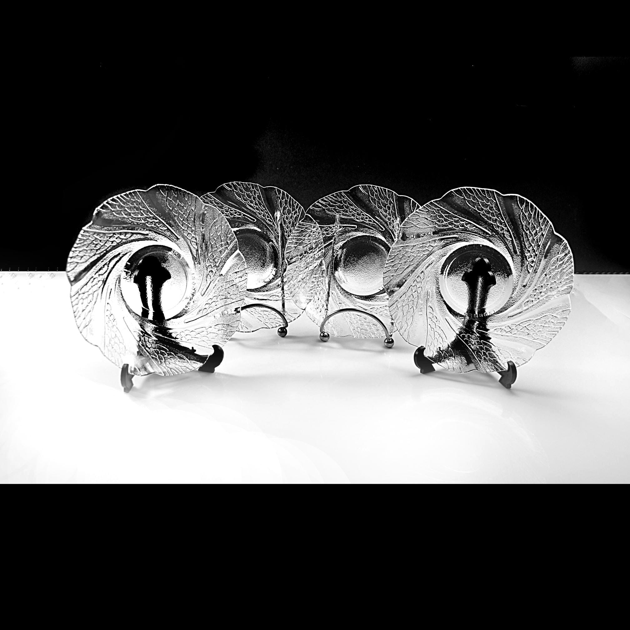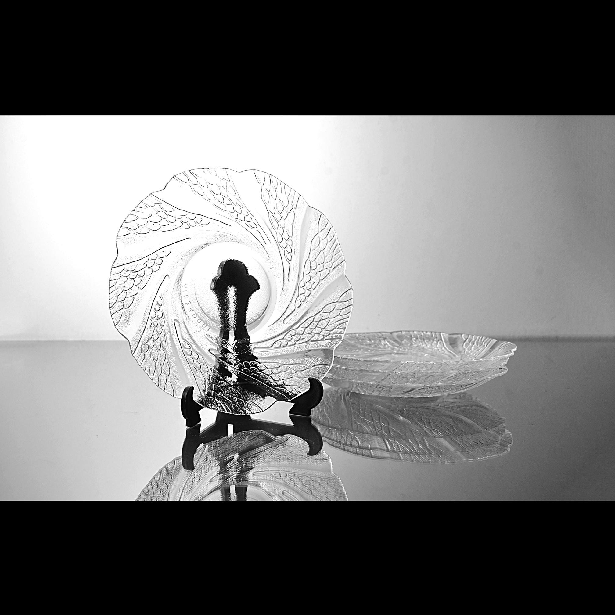These caught my eye right away—the way the pattern moves across the glass has a calm, almost flowing feel to it. It’s easy to see why this pattern is called Serene. This is a set of four clear glass saucers, each measuring 6 inches in diameter, made in Indonesia and marked KIG. The design has a soft swirl with a textured leaf-like pattern that really comes to life when the light hits it. They’re simple, but not plain—and that makes them easy to use just about anywhere. They’re the perfect size for desserts, a slice of cake, or sitting down with a cup of tea in the afternoon. They also make a nice little plate for entertaining when you don’t want to bring out anything too formal. All four pieces are in excellent condition with no chips or cracks. Clean, clear, and ready for the table. These are the kind of pieces that don’t shout for attention—but once they’re on the table, they quietly make everything look just a little nicer.