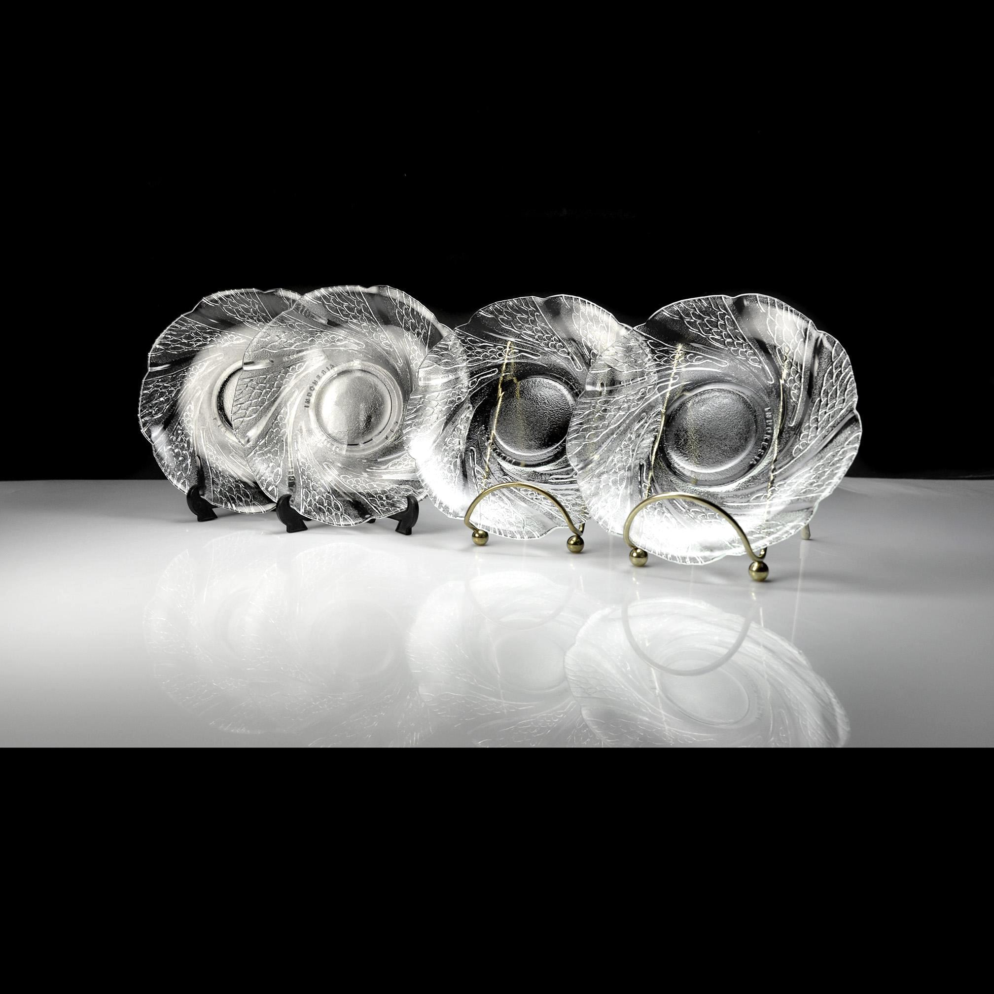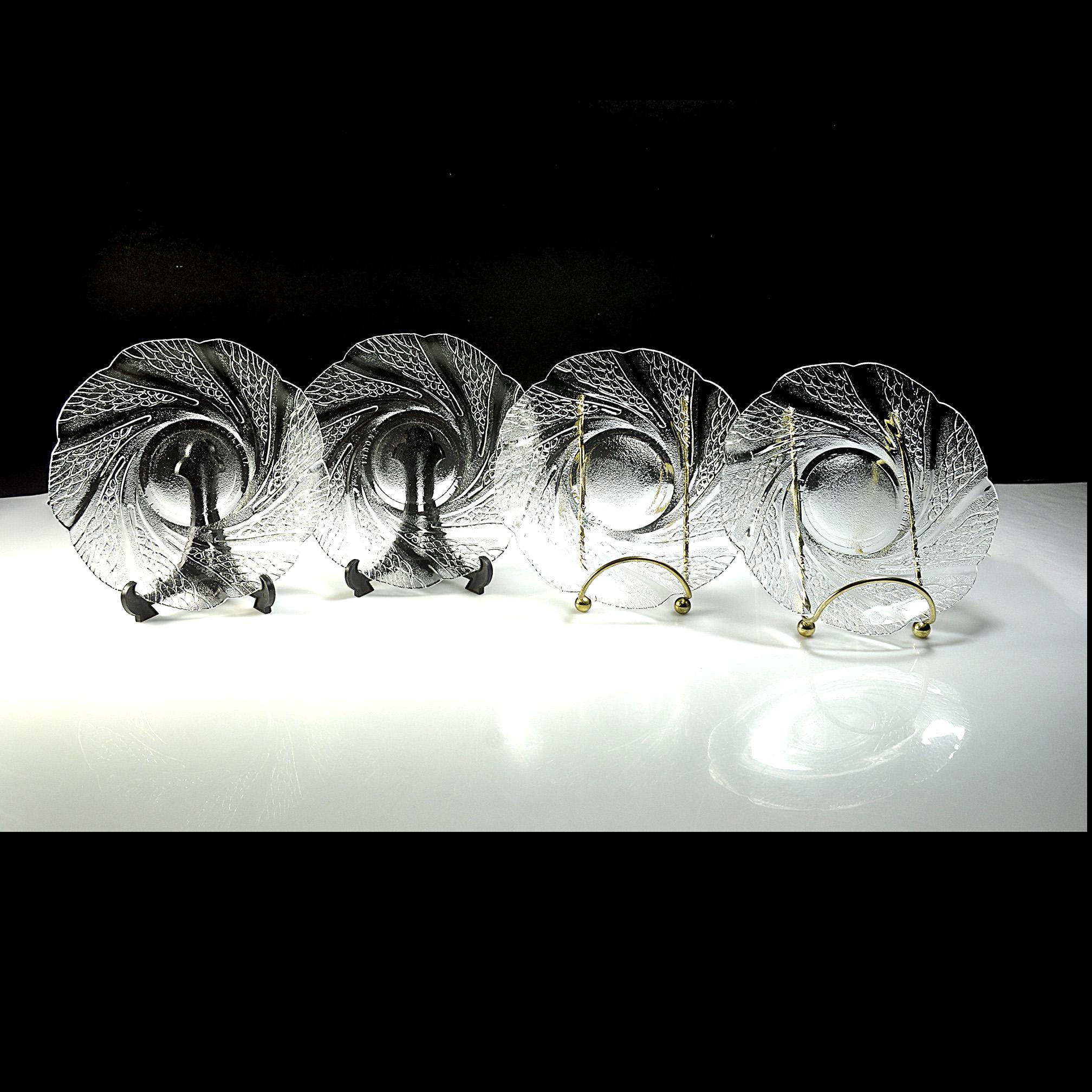 These caught my eye right away—the way the pattern moves across the glass has a calm, almost flowing feel to it. It’s easy to see why this pattern is called Serene. This is a set of four clear glass saucers, each measuring 6 inches in diameter, made in Indonesia and marked KIG. The design has a soft swirl with a textured leaf-like pattern that really comes to life when the light hits it. They’re simple, but not plain—and that makes them easy to use just about anywhere. They’re the perfect size for desserts, a slice of cake, or sitting down with a cup of tea in the afternoon. They also make a nice little plate for entertaining when you don’t want to bring out anything too formal. All four pieces are in excellent condition with no chips or cracks. Clean, clear, and ready for the table. These are the kind of pieces that don’t shout for attention—but once they’re on the table, they quietly make everything look just a little nicer.