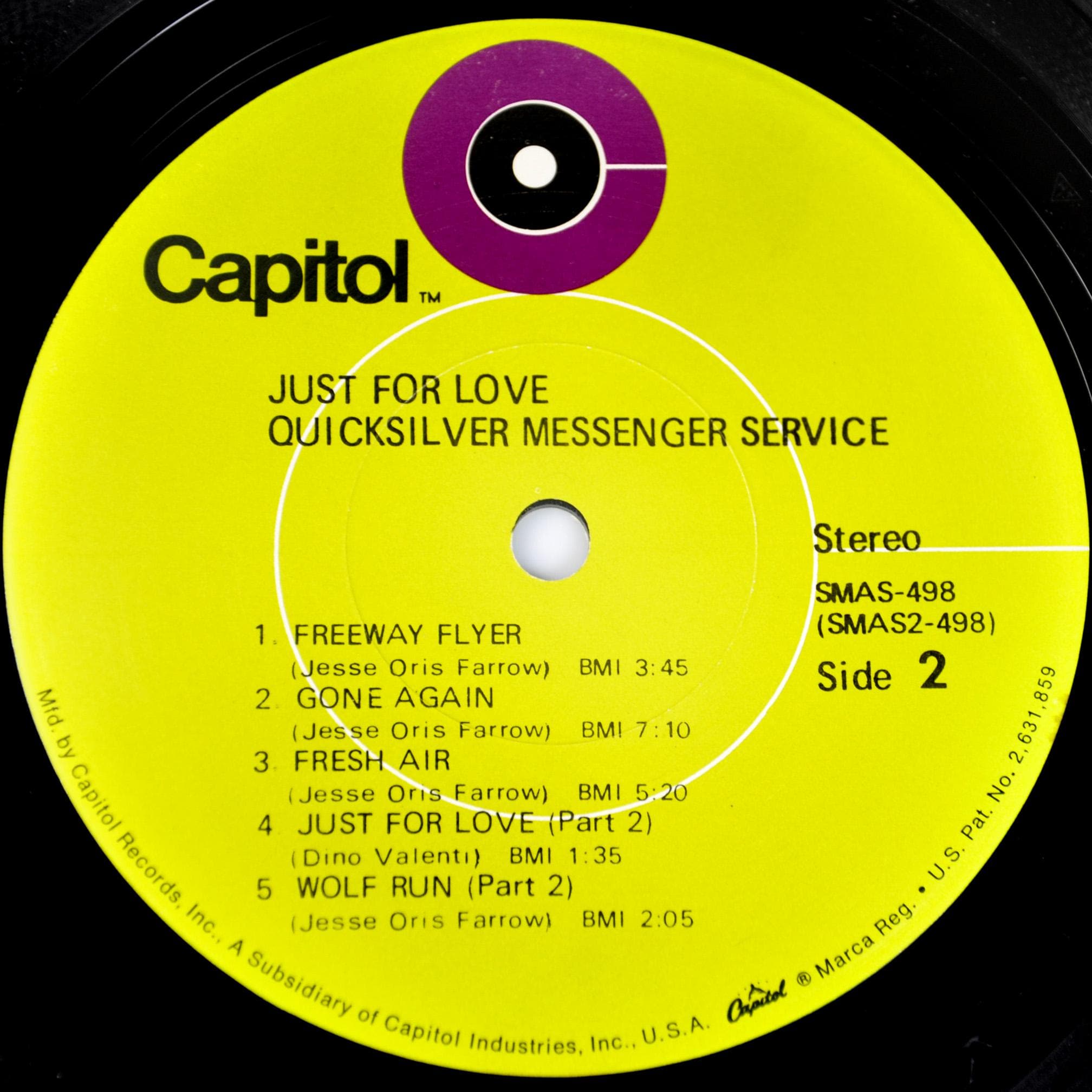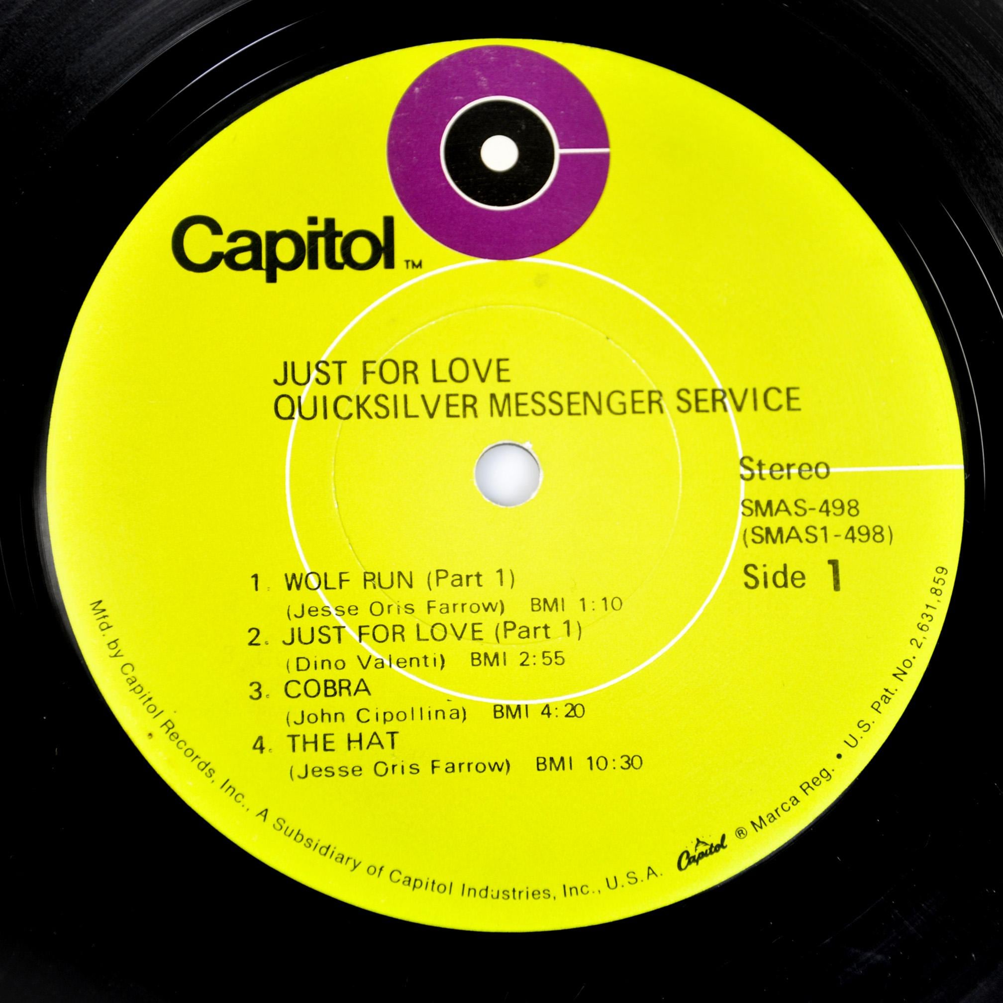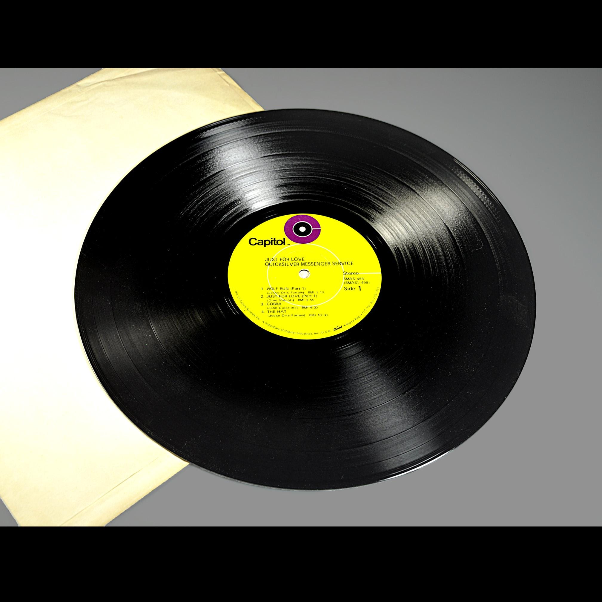 Some records just look like they’ve been cared for, and this one certainly has that feel. This is Just for Love by Quicksilver Messenger Service, released in 1970 on Capitol Records during the height of the San Francisco psychedelic rock scene. The album comes in its original gatefold cover featuring the colorful artwork that fans of late-60s and early-70s rock will instantly recognize. The cover shows light rubbing and edge wear from years of handling but no seam splits. Open it up and the inside gatefold artwork is still bright and clean. The vinyl still has a strong glossy shine with only very light surface marks visible under bright light. It has clearly been played but also clearly taken care of. The album includes the well-known track “Fresh Air” along with songs like Wolf Run and Cobra, capturing that laid-back West Coast psychedelic sound that made Quicksilver Messenger Service part of the legendary San Francisco music scene. The record will ship with the original Capitol inner sleeve, which shows some age yellowing around the edges. Like all vintage records in our shop, this album is sold as-is and has not been play tested.