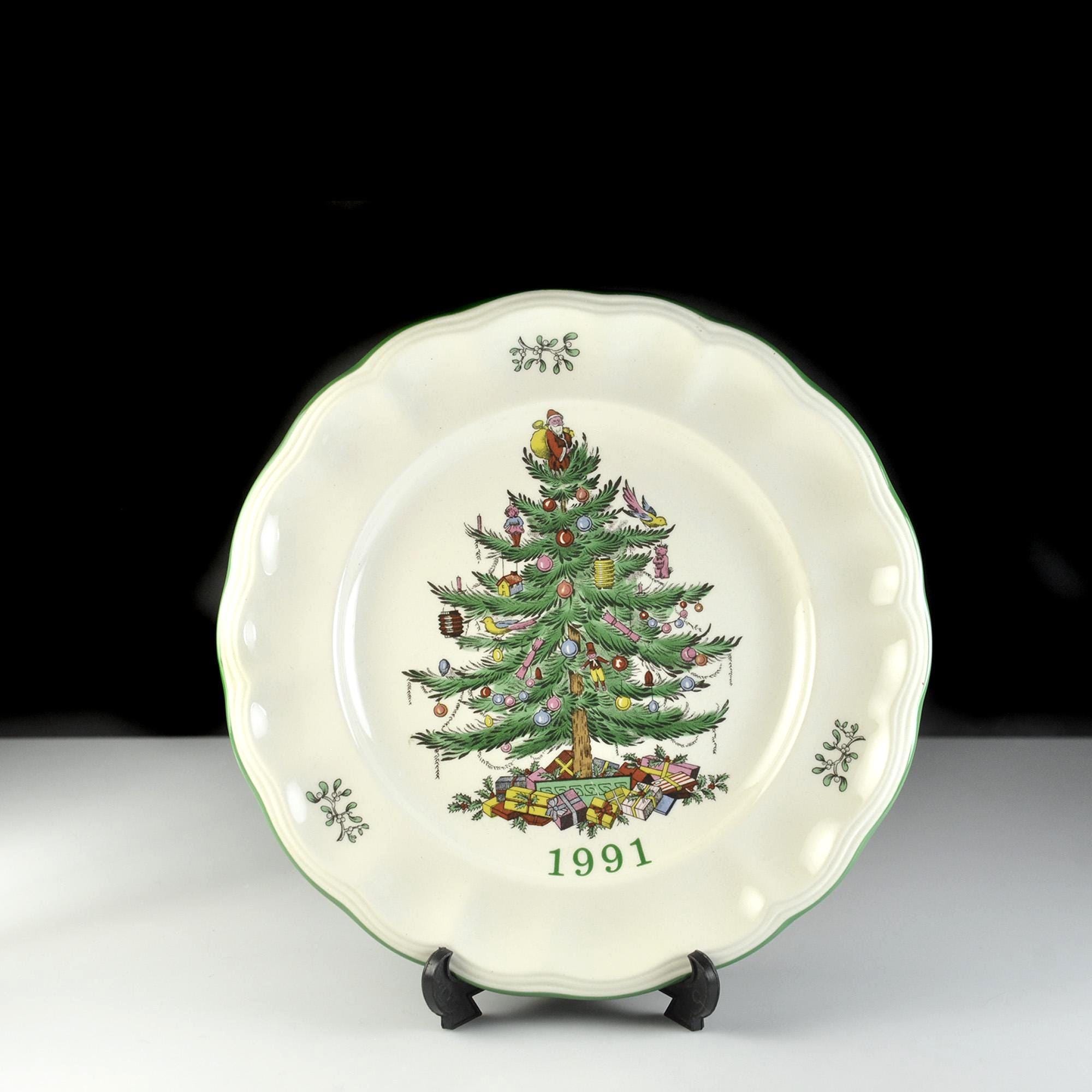 This small collector plate was made by Spode in England and features the classic decorated Christmas tree filled with ornaments and presents beneath the branches. The plate is dated 1991 and was issued as the 3rd plate in a limited-edition series. Whether you're adding to a Spode Christmas Tree collection, replacing a missing piece, or looking for a small holiday display plate, this one carries that traditional vintage Christmas charm. A lovely little piece of classic English holiday china.