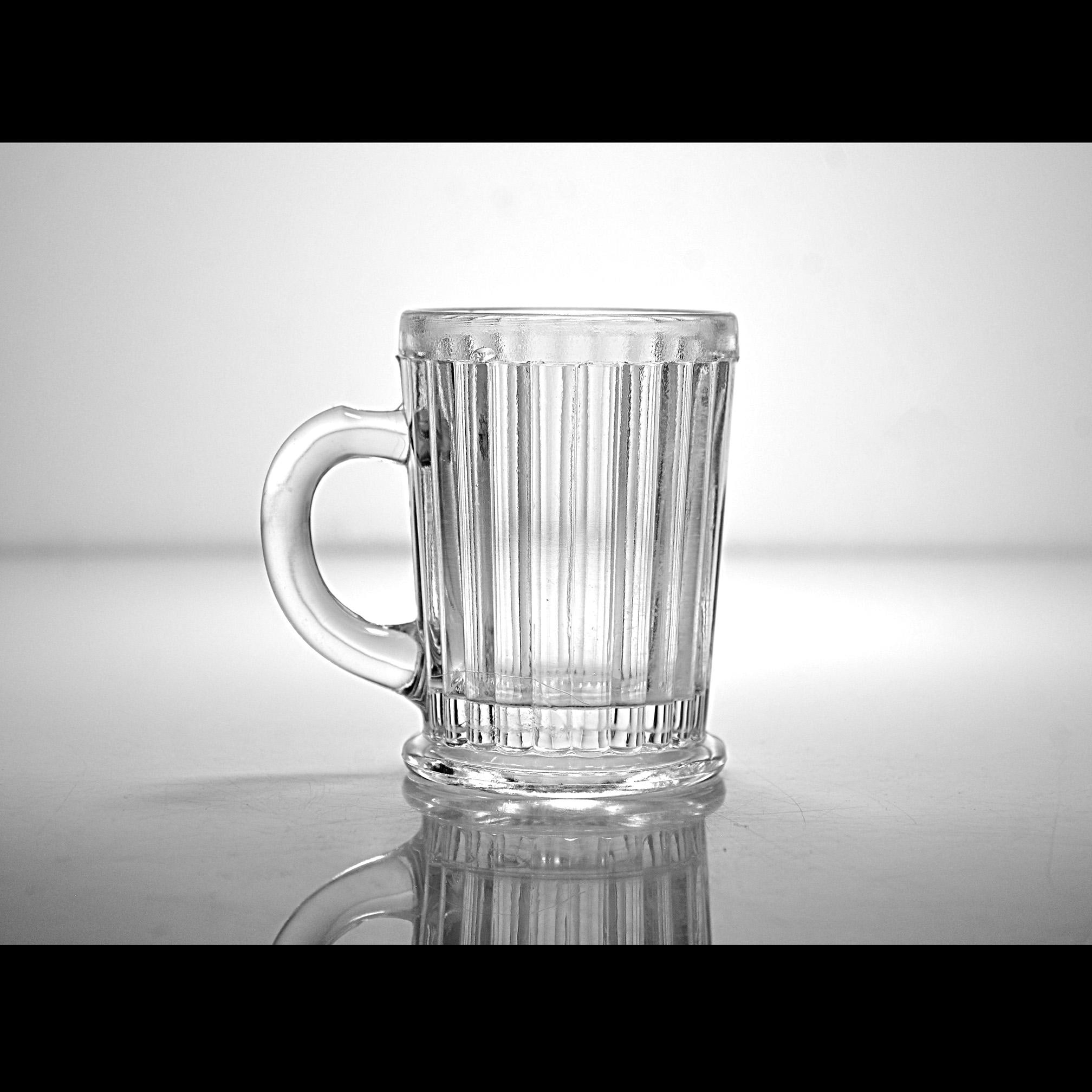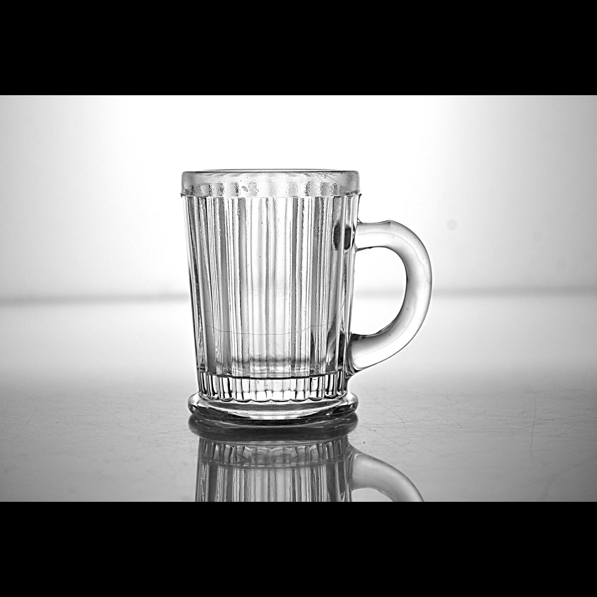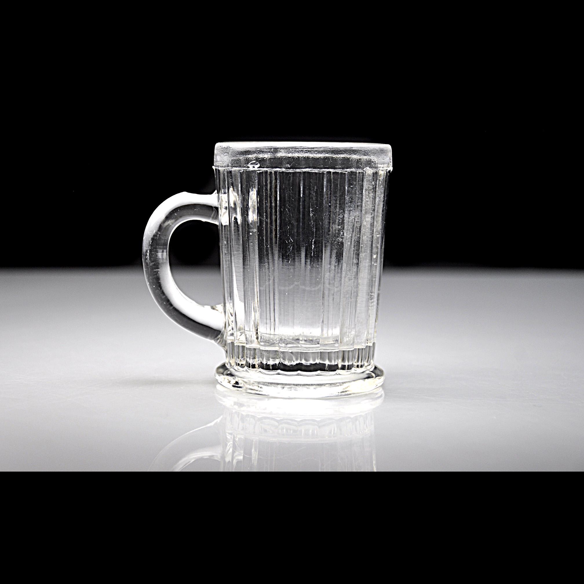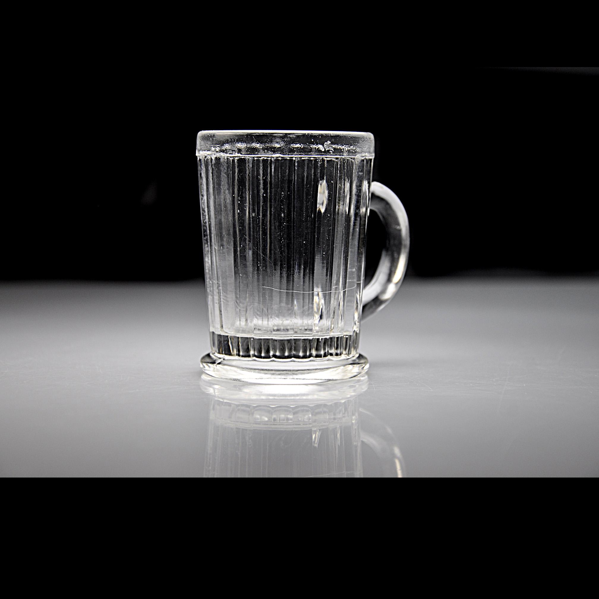 This small, pressed glass mug/shot glass comes from the late Victorian era when American glass companies were producing what collectors today call Early American Pressed Glass.