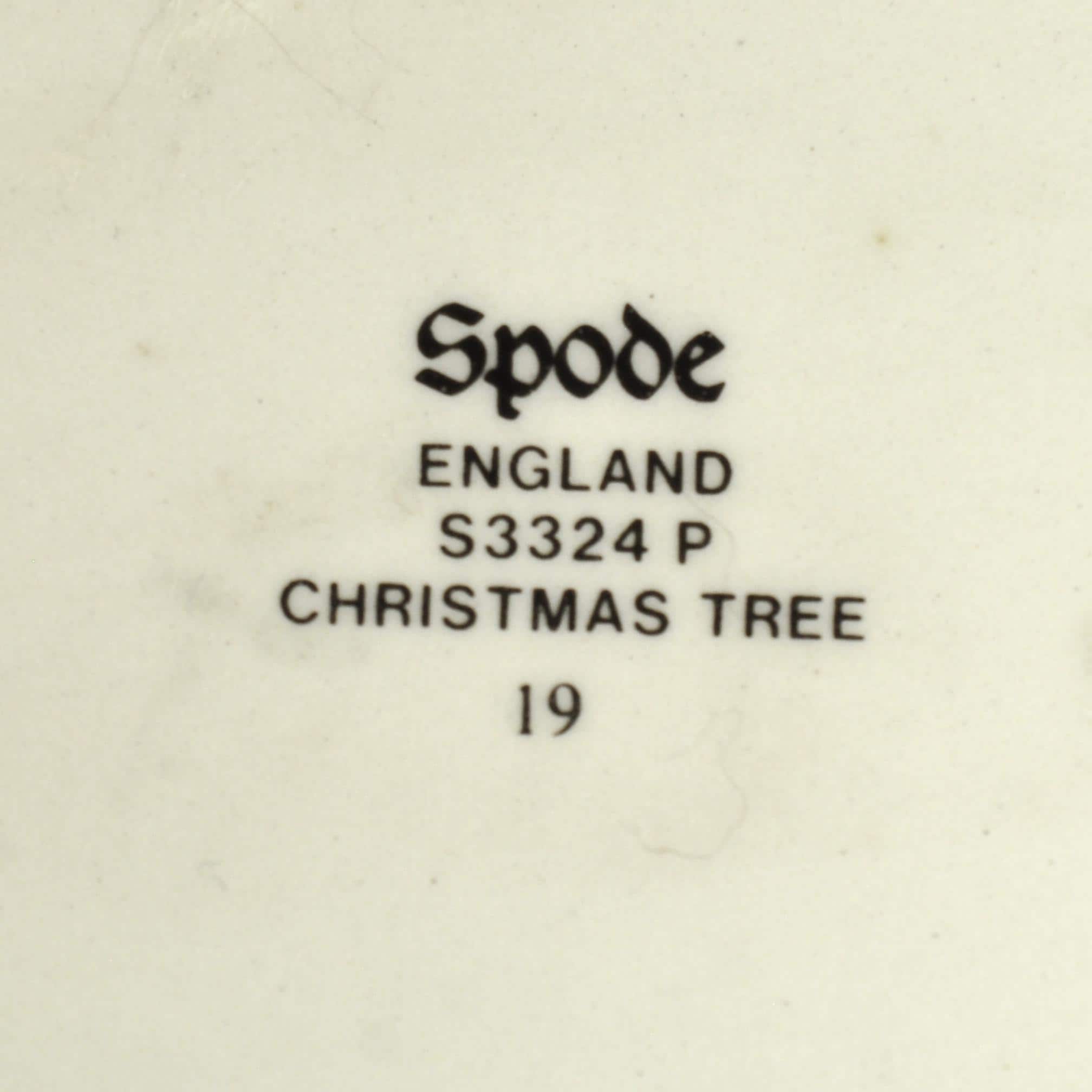 The glaze is smooth and the Christmas tree design remains bright and clear. The backstamp is fully legible.