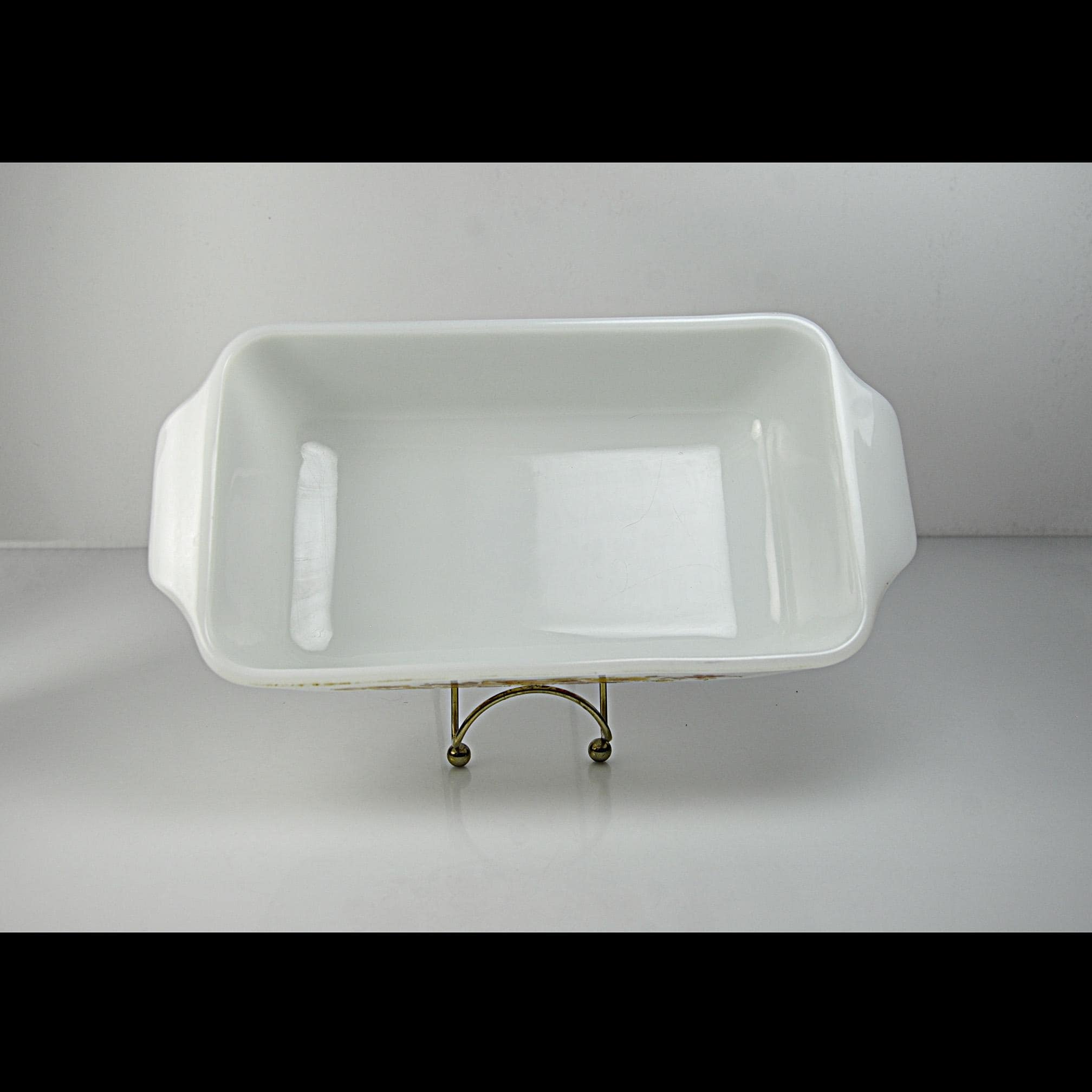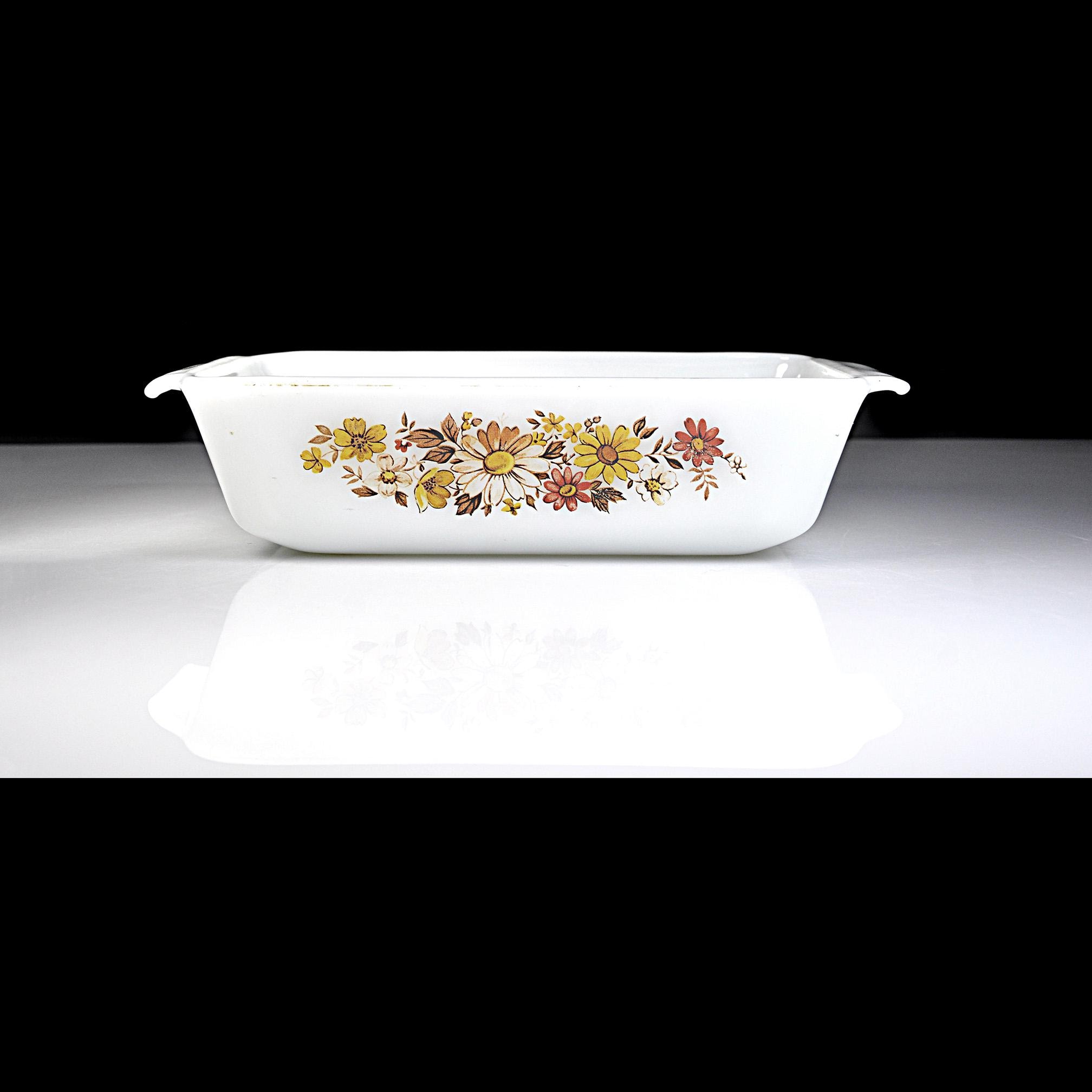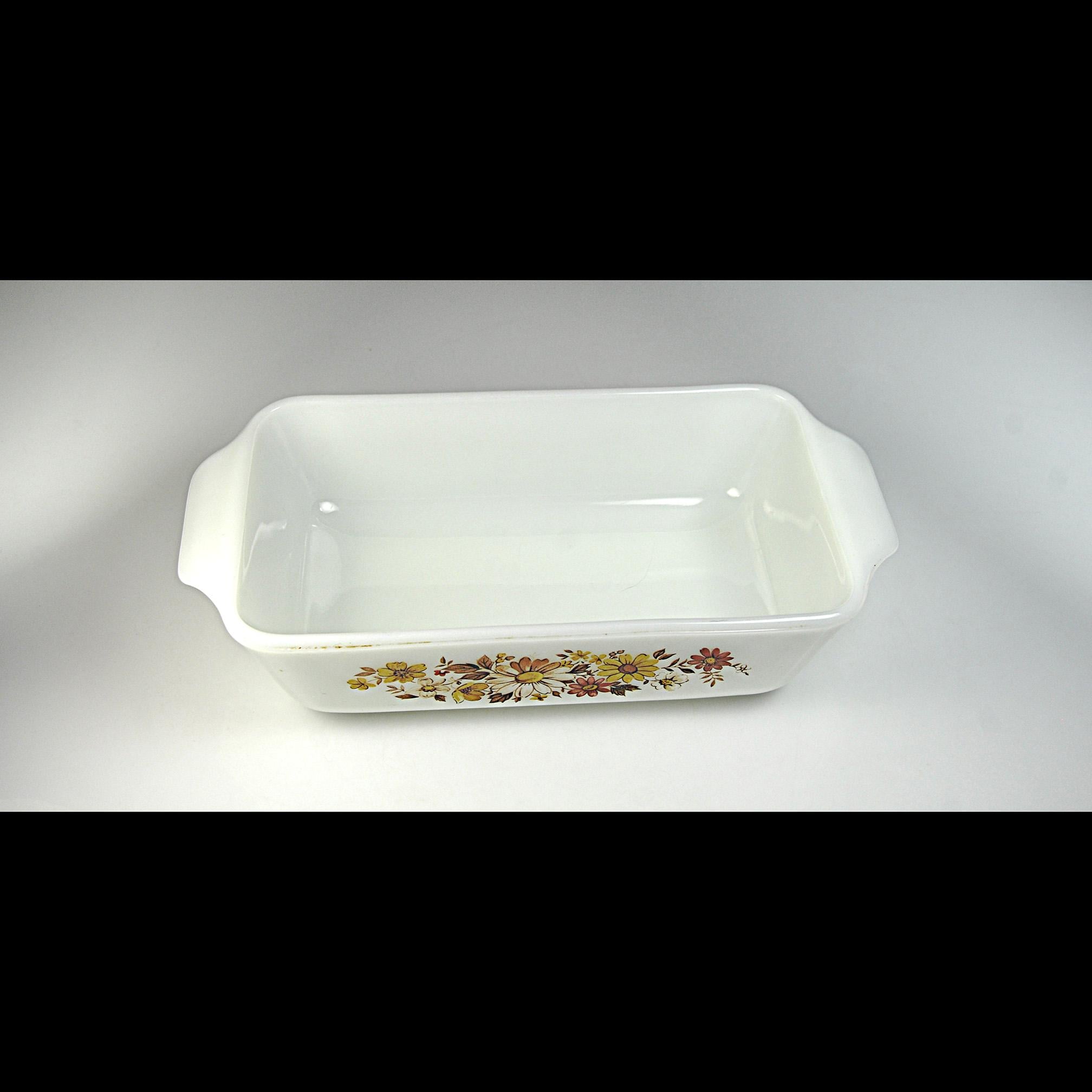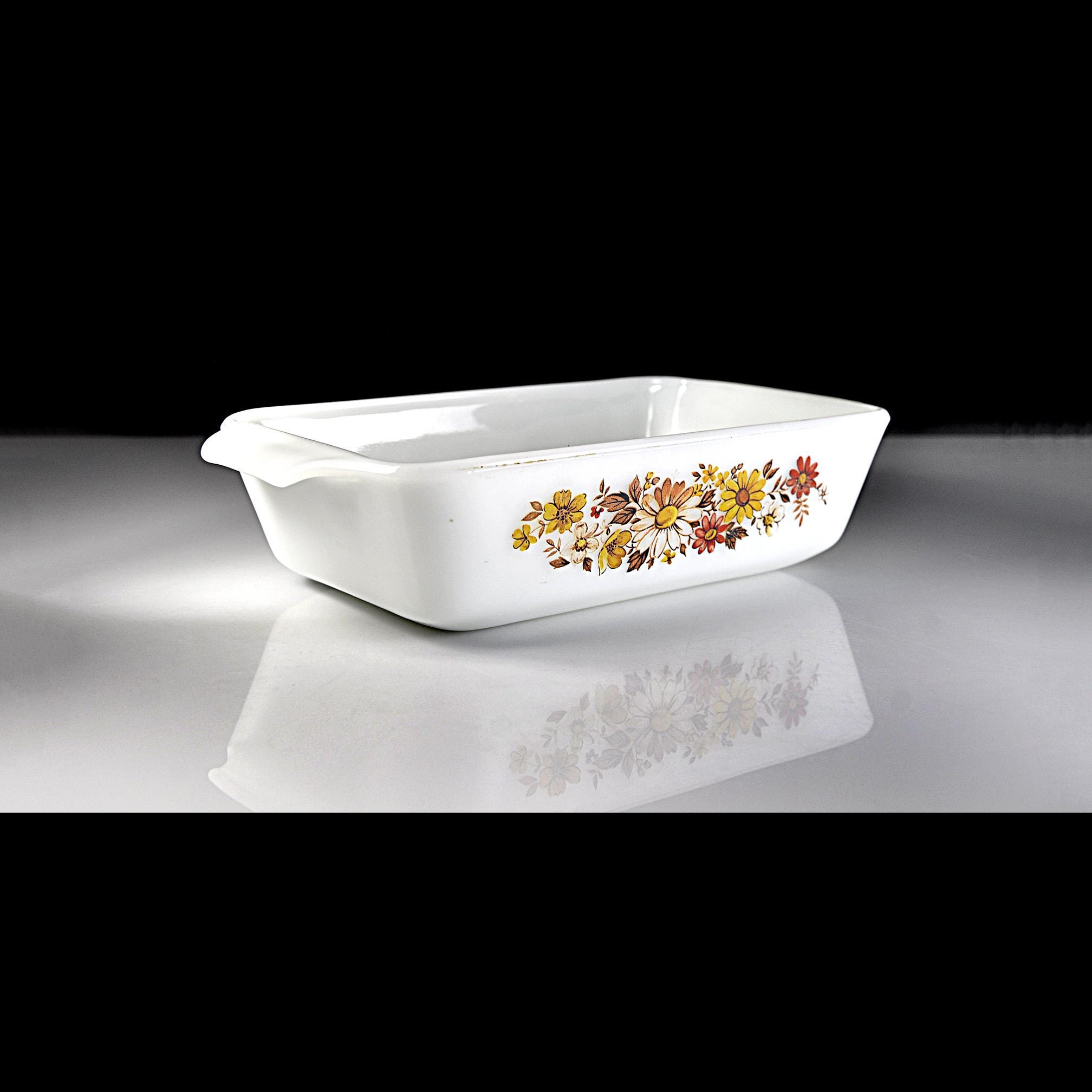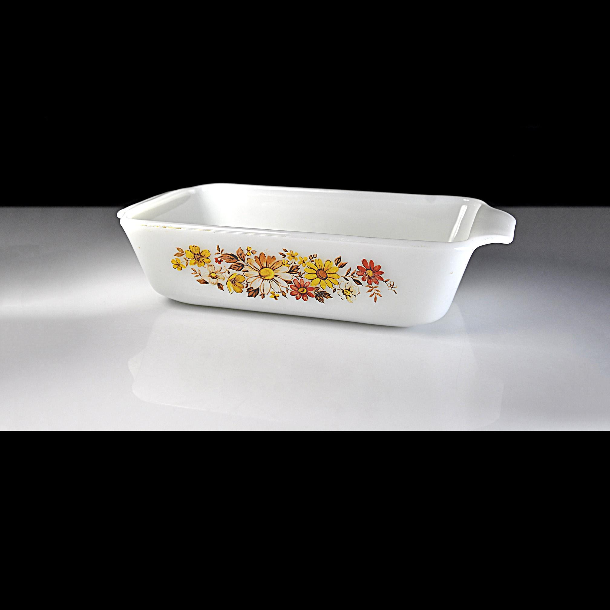 Some kitchen dishes weren’t made to sit in a cabinet looking pretty — they were made to be used. This vintage Anchor Hocking baking dish is one of those dependable everyday pieces that likely spent years helping someone bake casseroles, brownies, or family dinners. Made in the USA, it features classic white ovenware glass with a warm daisy floral design in shades of yellow, orange, and brown along its front. Pieces like this were designed to go straight from the oven to the table, which is why Anchor Hocking made them from durable heat-resistant glass. The size is especially nice for modern kitchens. It’s perfect for smaller casseroles, baked dips, brownies, side dishes, or reheating leftovers without needing a huge pan. You can still picture this dish sitting on a kitchen table with something hot and homemade coming out of the oven.