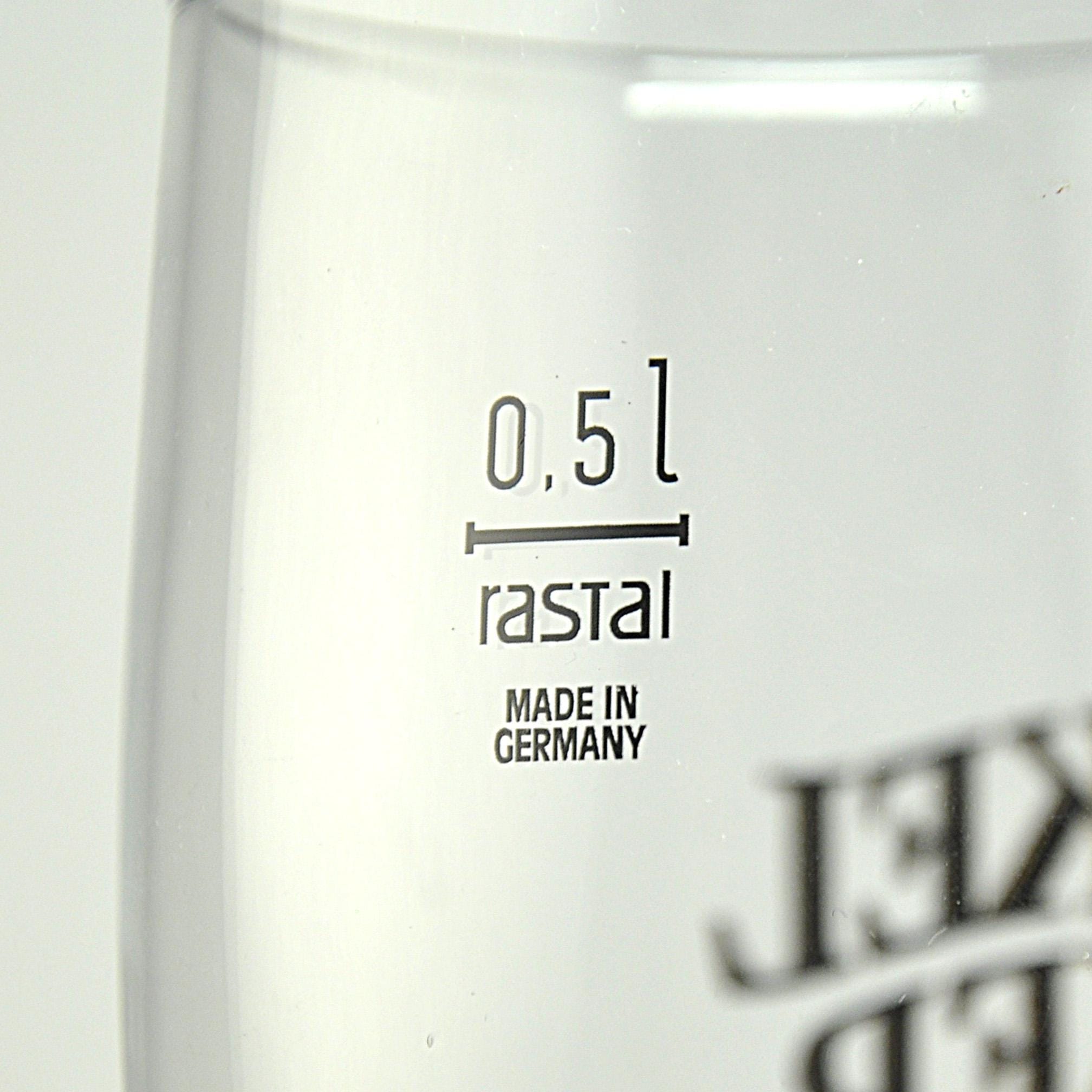 This glass holds 0.5 liters, the traditional German half-liter beer serving size. That equals about 16.9 ounces, essentially a full pint. Glasses like this are commonly used in German pubs for pilsners and lagers.