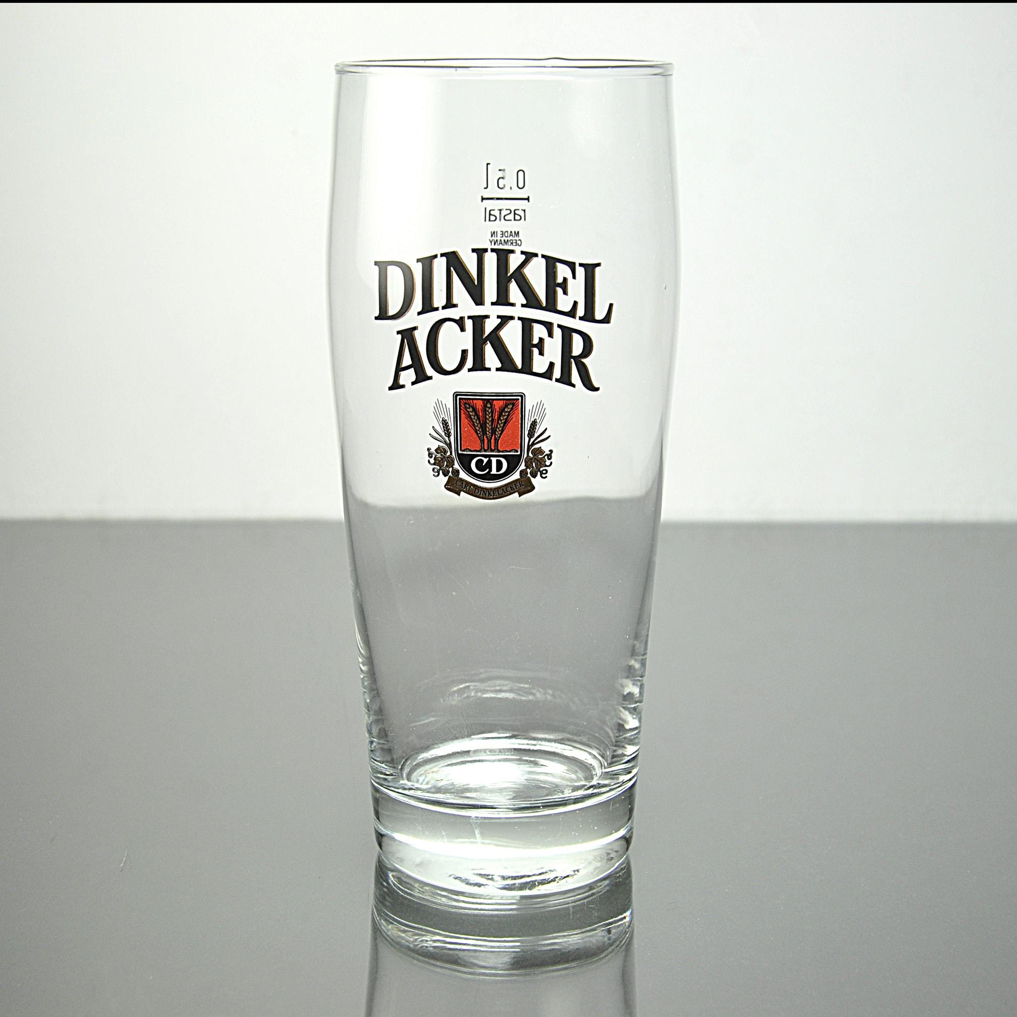 An authentic European beer glass makes a drink feel just a little more like you’re sitting in a small pub somewhere in Germany. This Dinkelacker beer glass comes from Stuttgart, Germany and features the brewery’s well-known “CD” crest, representing founder Carl Dinkelacker, whose brewery has been producing beer since 1888. The glass itself was made by Rastal, a respected German glassmaker that has produced branded brewery glassware for bars and restaurants for over a century. Many German breweries rely on Rastal to manufacture their official serving glasses. The design features the bold Dinkelacker name and crest with wheat emblem, and the printing is bright and clean with no scratches or wear to the logo. Whether you're a beer enthusiast, breweriana collector, or someone who simply enjoys a proper pint glass, this piece brings a little bit of German beer culture to your home bar. This glass is perfect for anyone who enjoys German beer culture, breweriana collectibles, or authentic pub glassware.