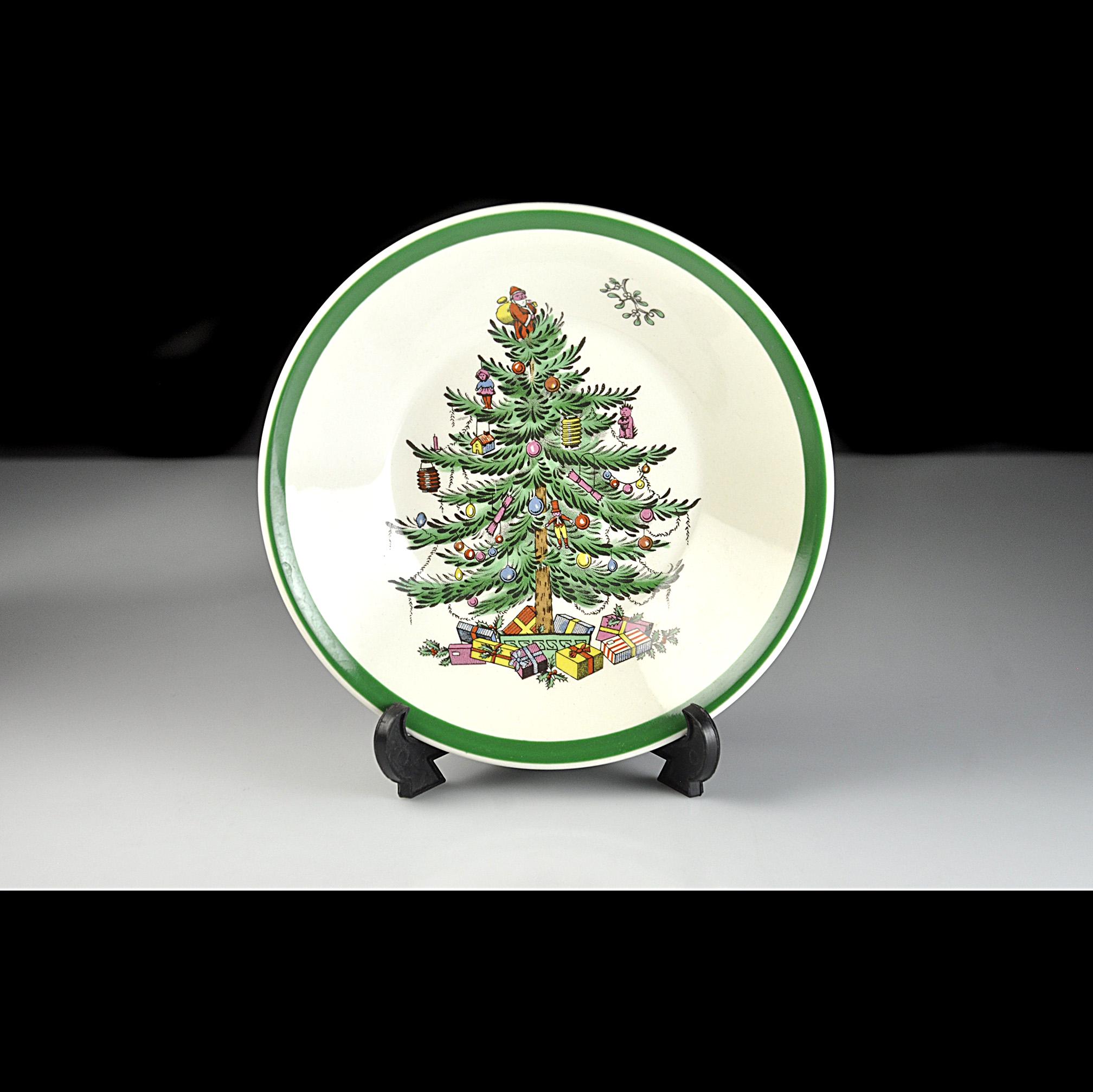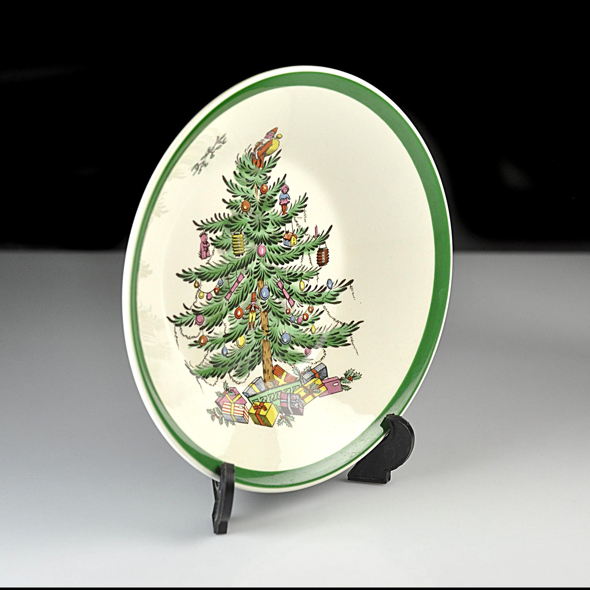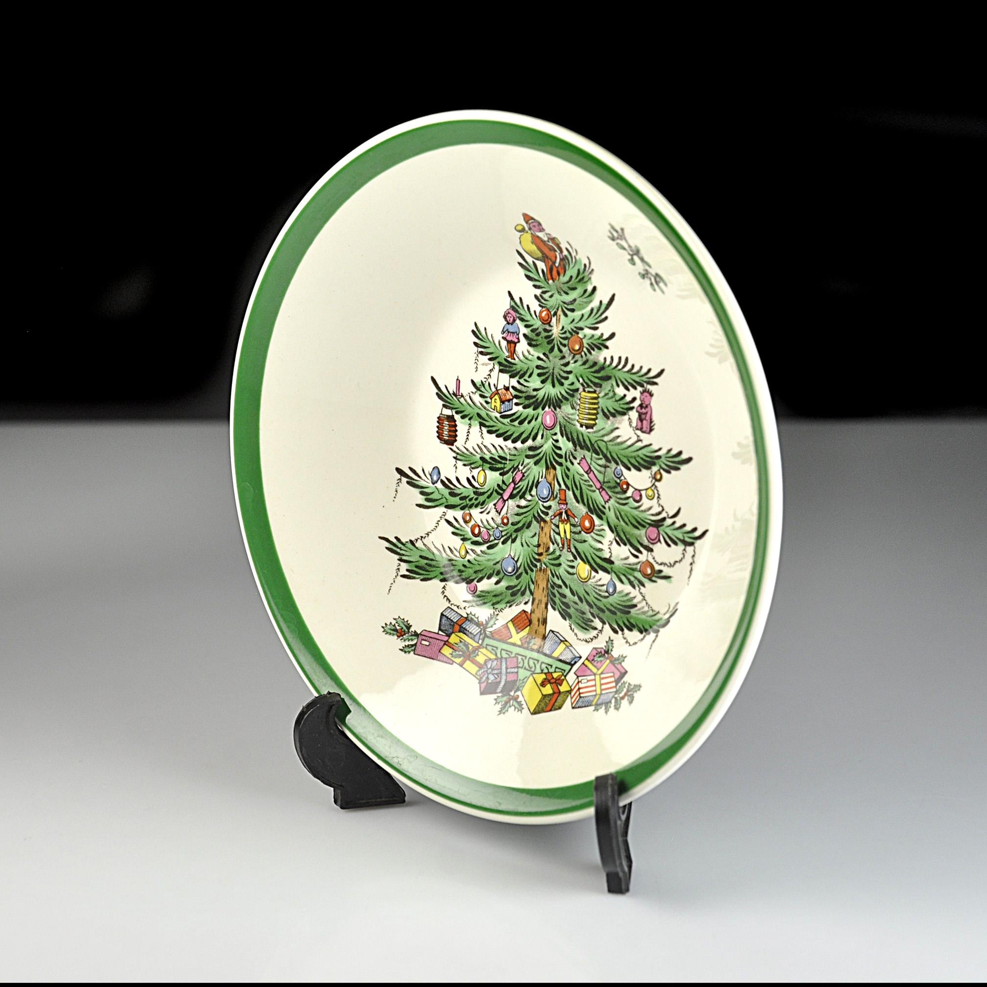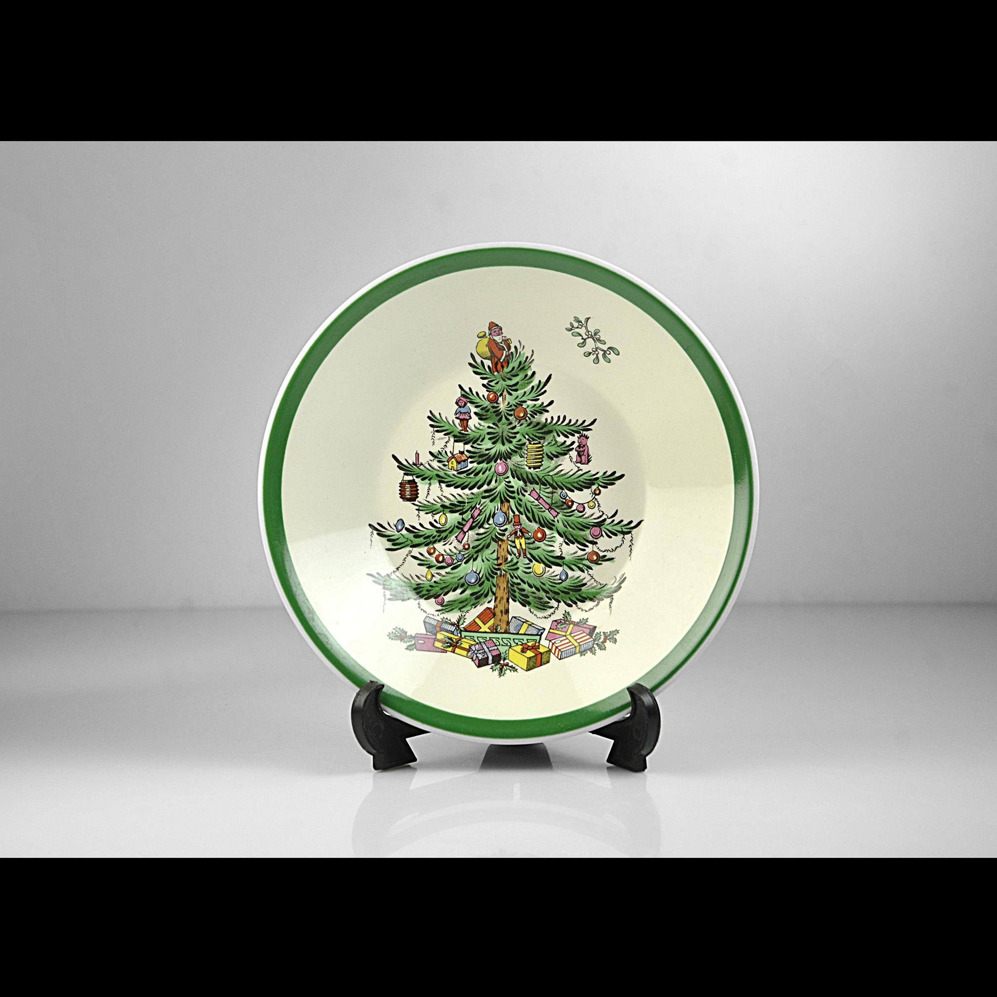 This is a small bowl in Spode’s well-known Christmas Tree pattern. If you grew up with holiday china, chances are you have seen this pattern before. It has been around since the late 1930s and it still shows up on a lot of family tables every December. The center of the bowl shows the decorated Christmas tree with little ornaments, toys, and Santa standing at the top. Around the edge is the classic green rim that Spode used on this pattern for years. This bowl measures 5¼ inches in diameter making them perfect for serving a variety of foods. A nice piece to add to a holiday table or to replace a missing bowl from a Spode Christmas Tree set.