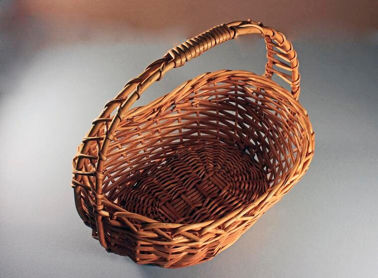 A lovely wicker basket that is oval shaped. It is a market/shopping basket but would be great for gathering fruit or vegetables, carrying a picnic lunch or as a storage basket for crafters.