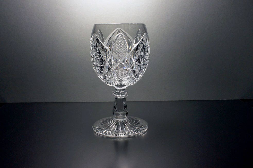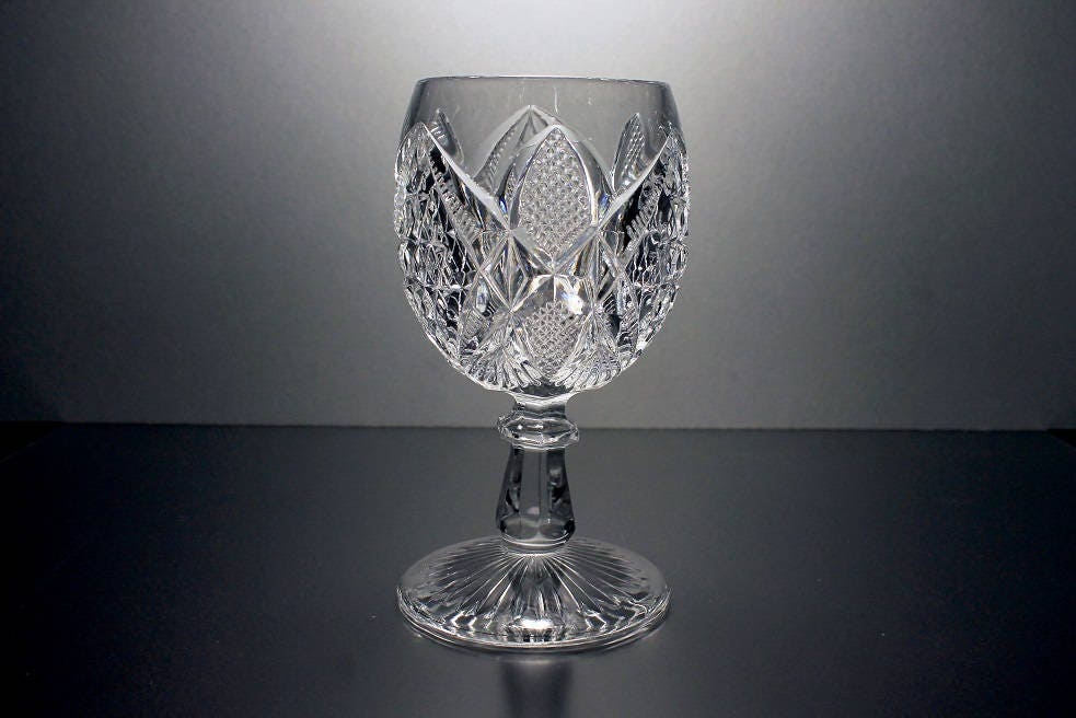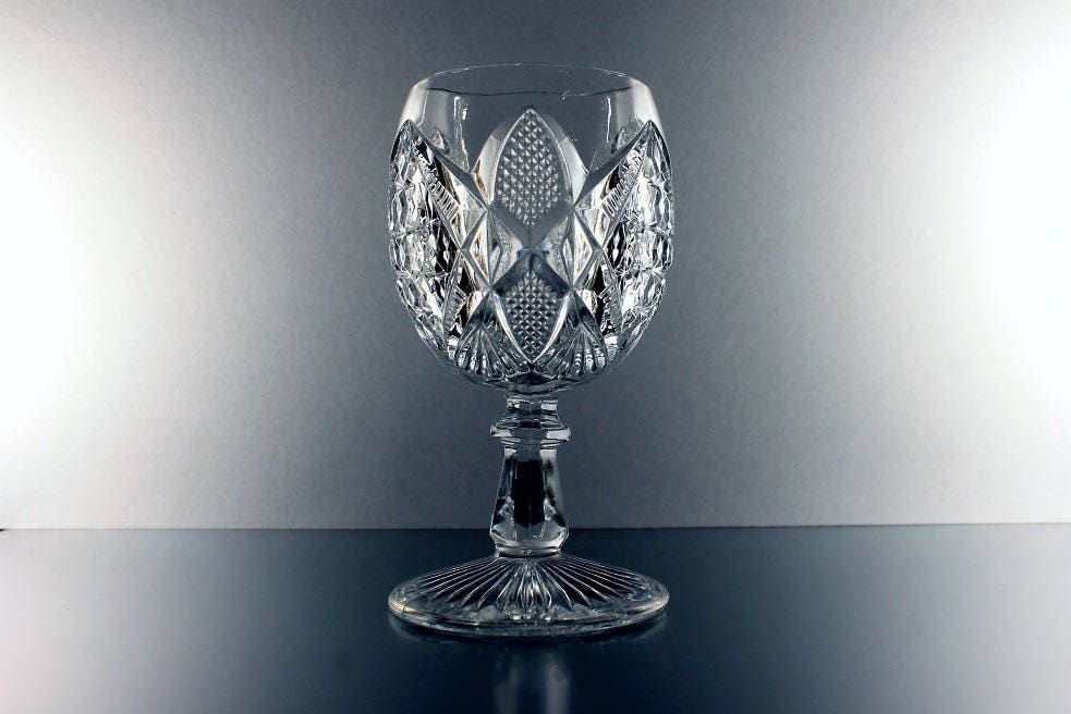 This is a gorgeous antique EAPG (Early American Pressed Glass) wine glass by US Glass. It dates to circa 1898. The pattern is called Pennsylvania. This would make a perfect addition to a EAPG collection or a US Glass, Pennsylvainia, collection.