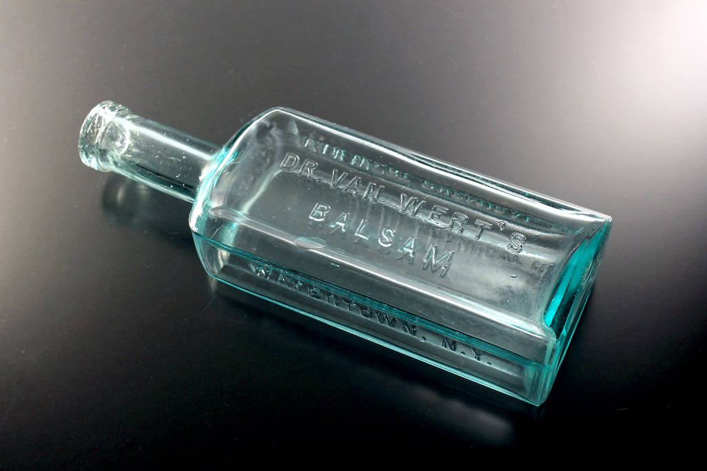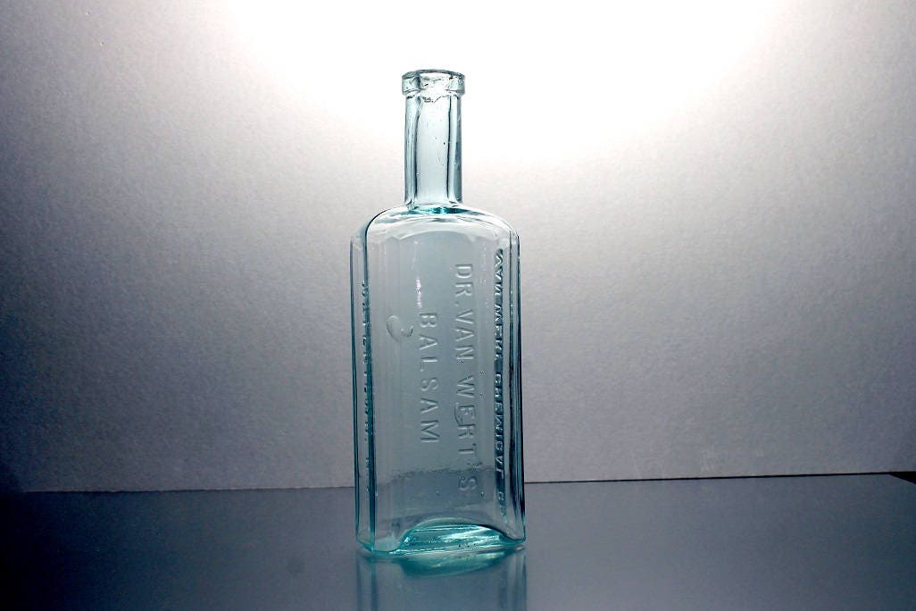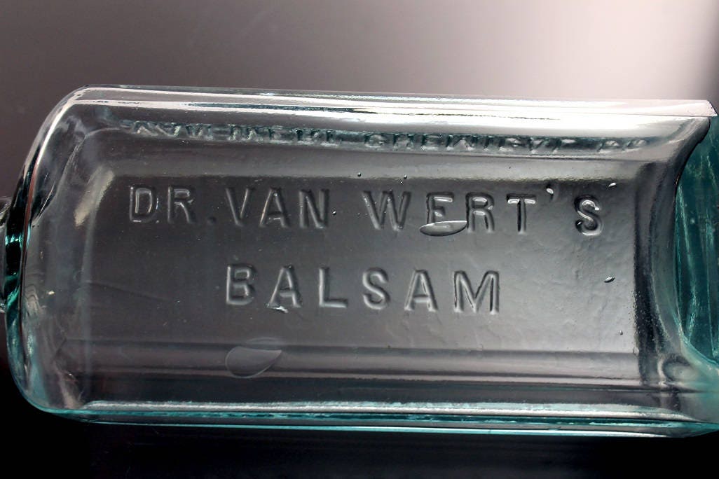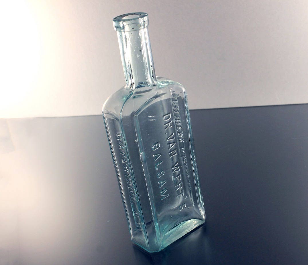 Antique Bottle, Dr Van Wert's Balsam, Van Wert Chemical Co, Watertown, NY, Aqua, Circa 1800s, Quack Medicine Bottle, Pharmaceutical Cure, Patent Medicine, Embossed