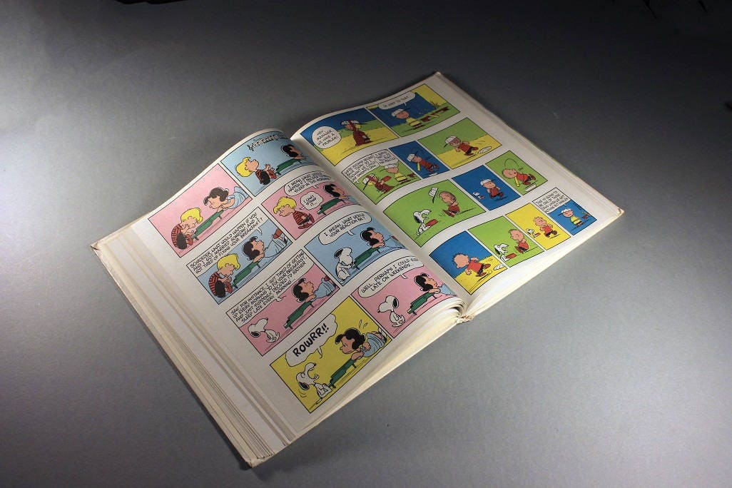 A wonderful first edition hardcover book Peanuts Classics. Peanuts comic strips were created by Charles Schulz. These books are highly collectible. This book covers comic strips from 1963 thru 1970. Peanuts comic strips are a syndicated daily and Sunday which ran from October 2, 1950, to February 13, 2000, and continued in reruns. The comic strip is the most popular and influential in the history of comic strips with 17,897 strips published.