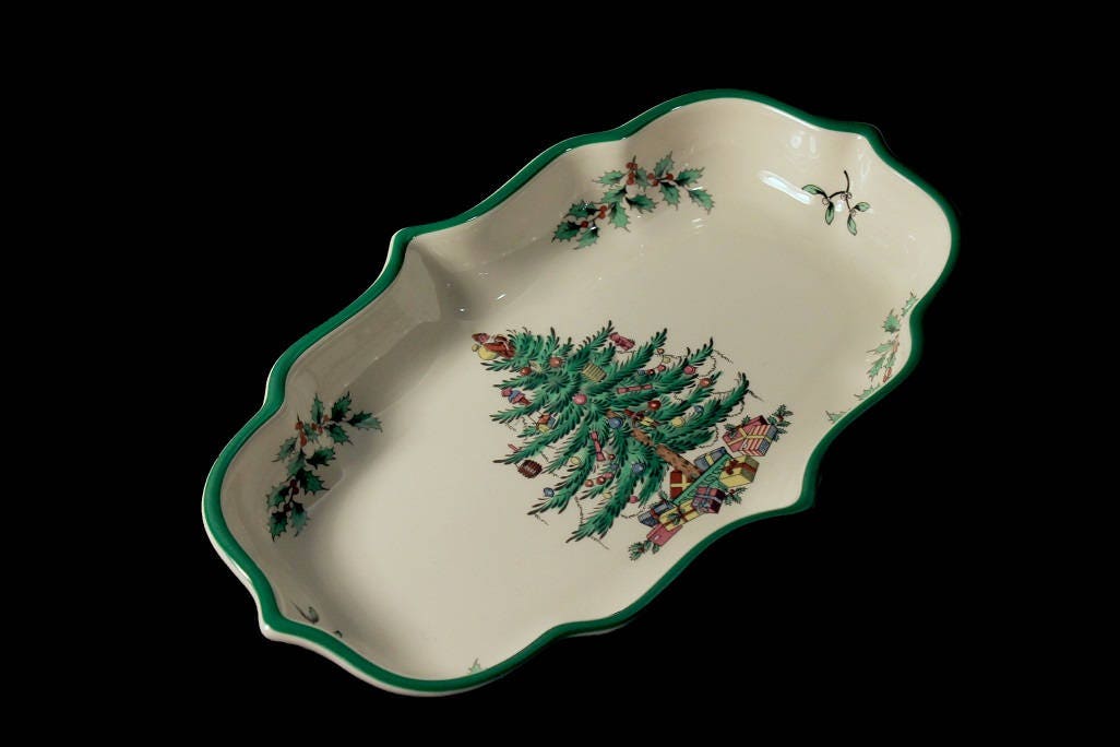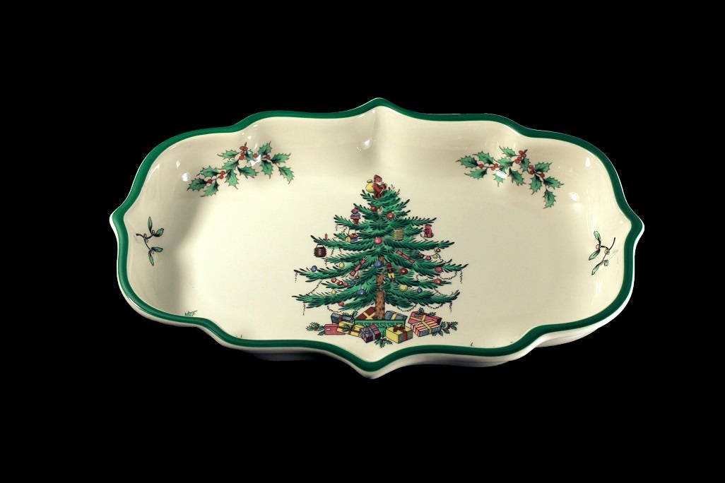 Christmas Ogee Candy Dish, Spode, Christmas Tree Pattern, Serving Dish, Made in England, Collectible