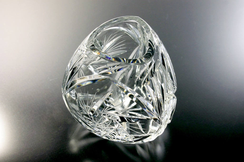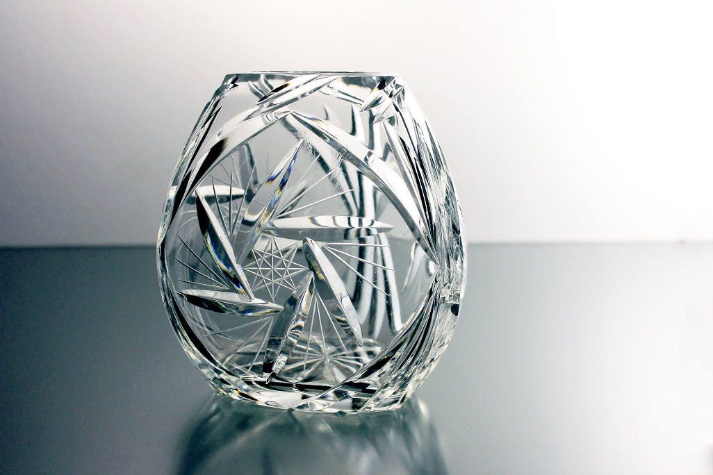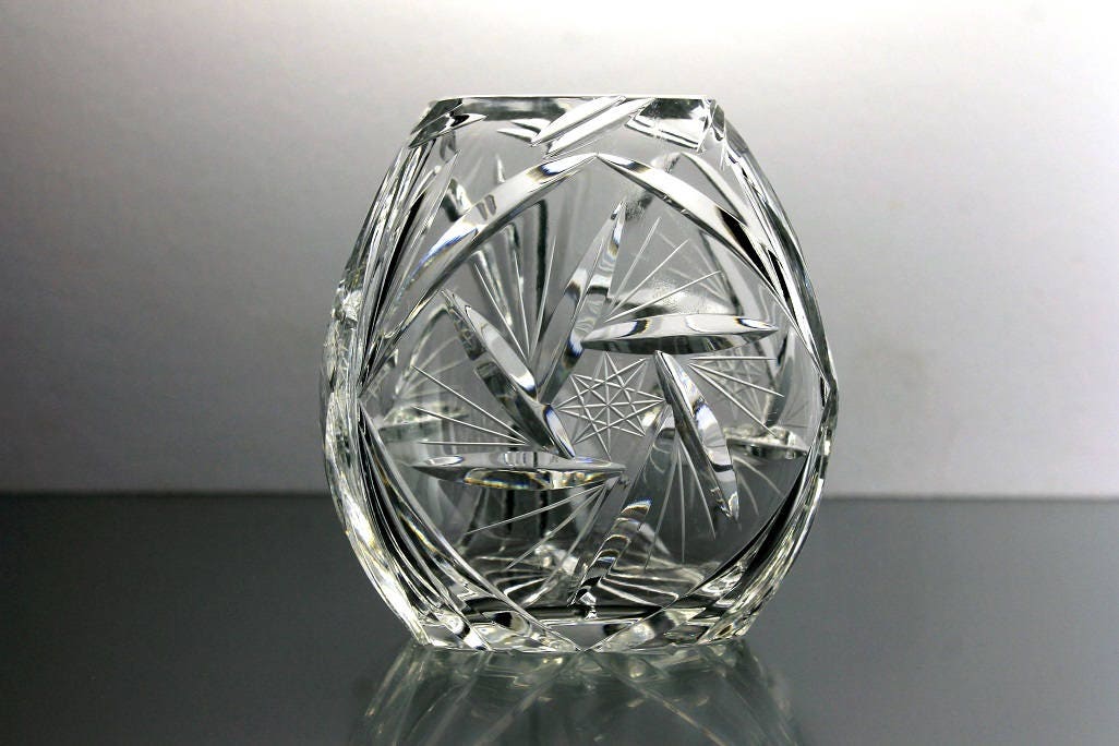 Crystal Rose Bowl, Pinwheel pattern, Cut Glass, Triangle Shape, Clear Glass, Vase, Potpourri Bowl
