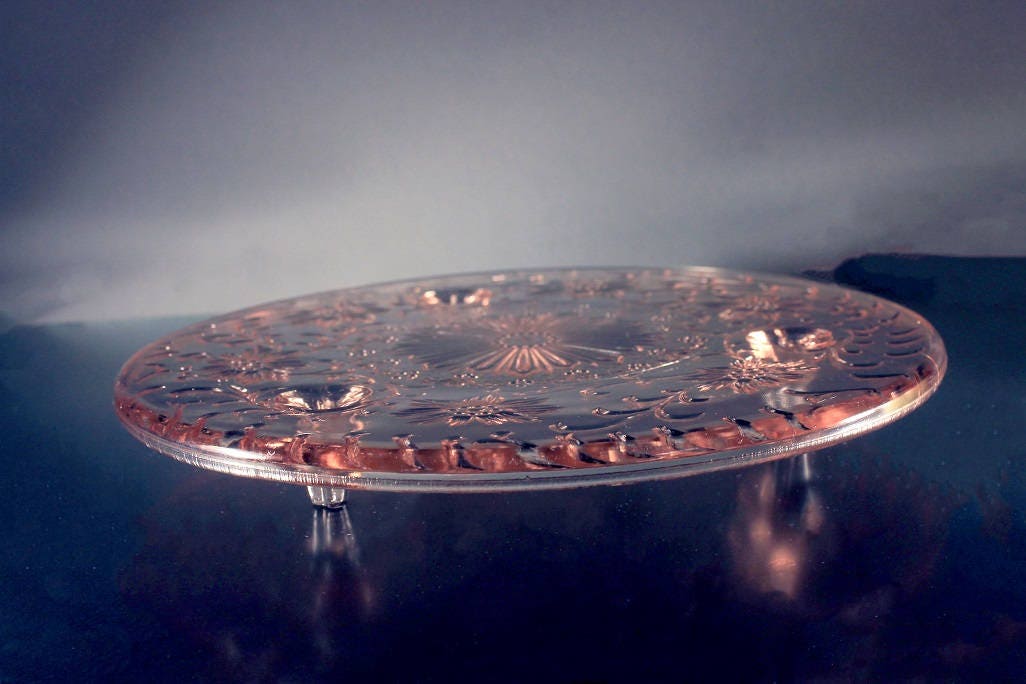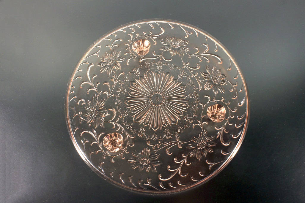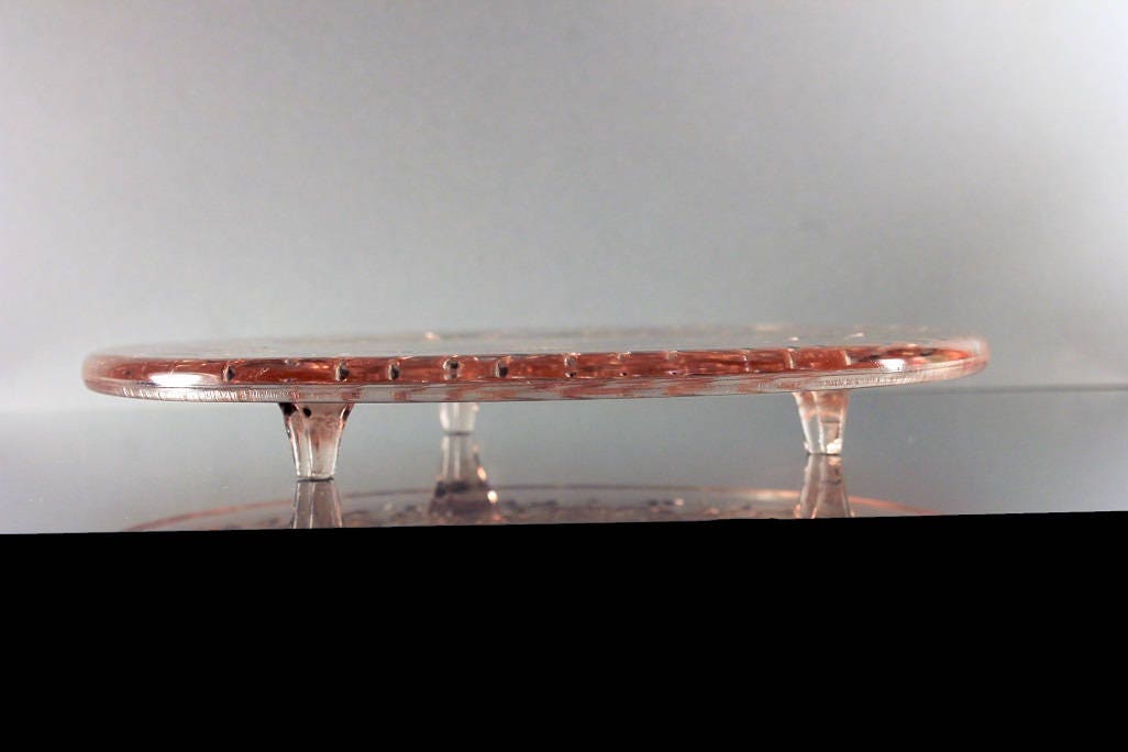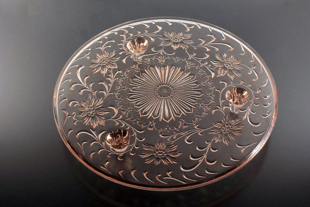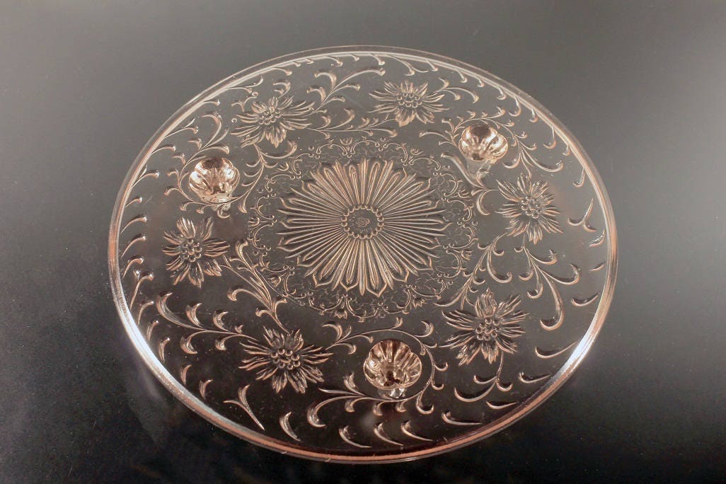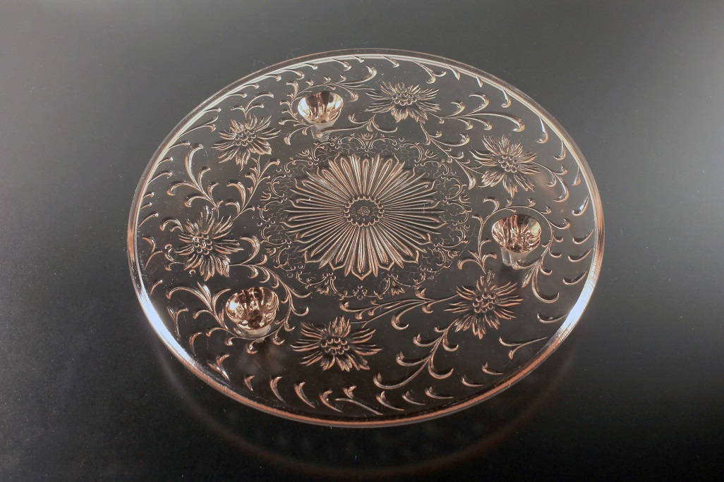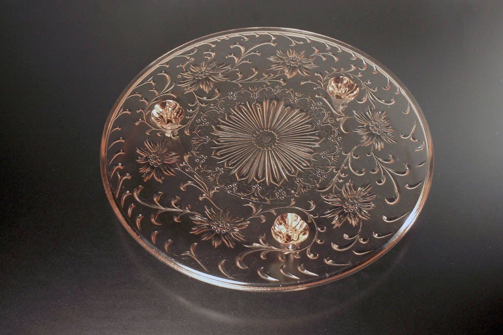 Pink Footed Cake Plate, US Glass, Shaggy Daisy, Depression Glass, Daisy Pattern, Serving Tray, Platter, Dessert Plate