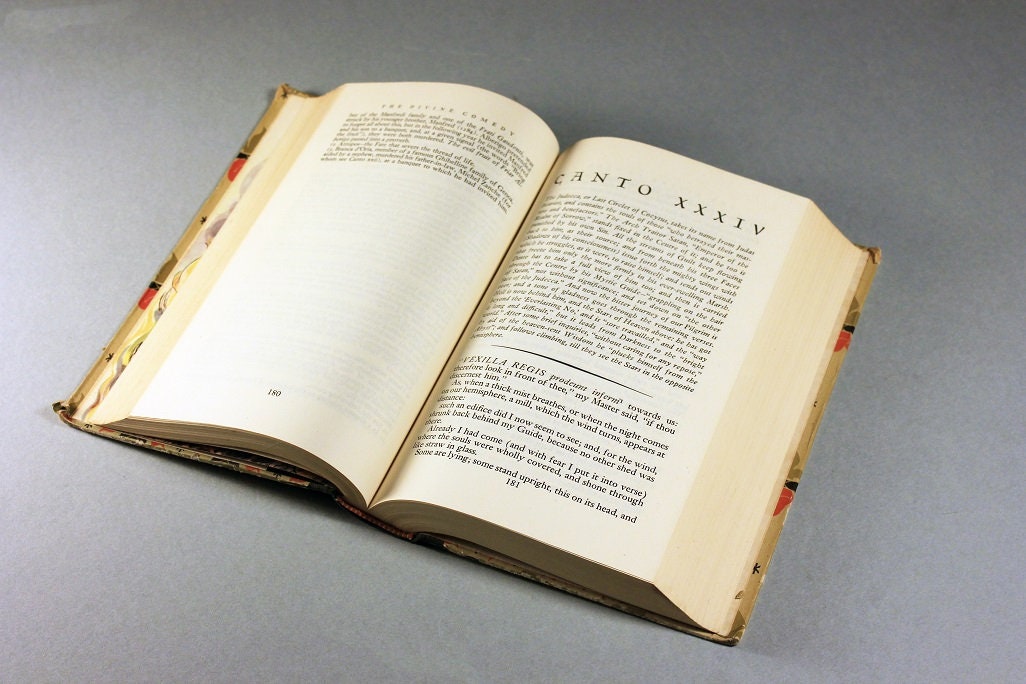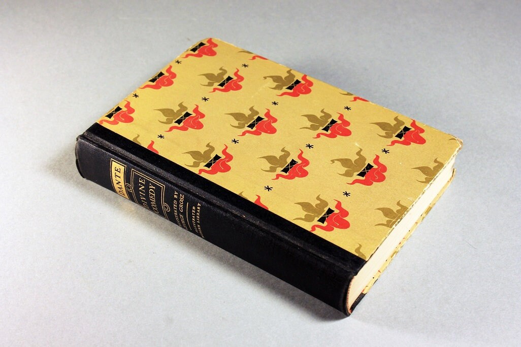A wonderful book of Dante's The Divine Comedy. This is classic literary fiction. It doesn't have a dust jacket. The board covers have a pattern and the binding is black with gold titles. Dante's poem, The Divine Comedy, is one of the most important works of medieval literature. An imaginary journey through Hell, Purgatory, and Paradise, the work explores ideas of the afterlife in medieval Christian belief.
