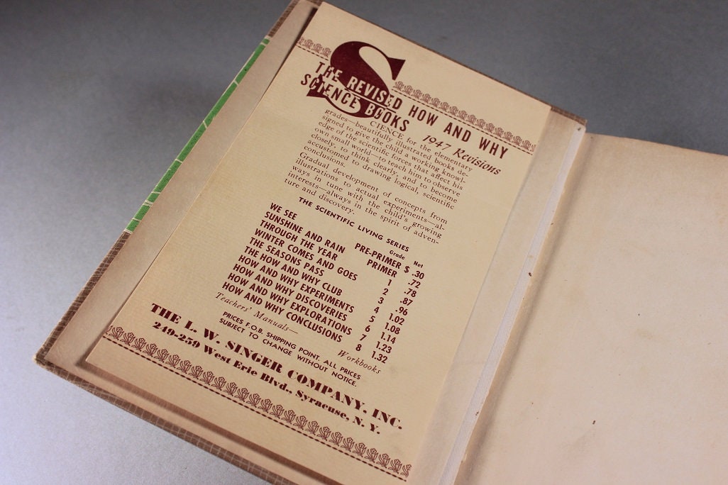 A wonderful children's hardcover book called The How and Why Club. This book is part of the Scientific Living Series of the How and Why Science Books. A 1947 science book for elementary grades that is beautifully illustrated. The book was designed to give a child a working knowledge of the scientific forces that affect his small world. This book is a valuable educational learning tool. It is a compilation of facts on a variety of topics. It has fantastic illustrations and is a lot of fun.