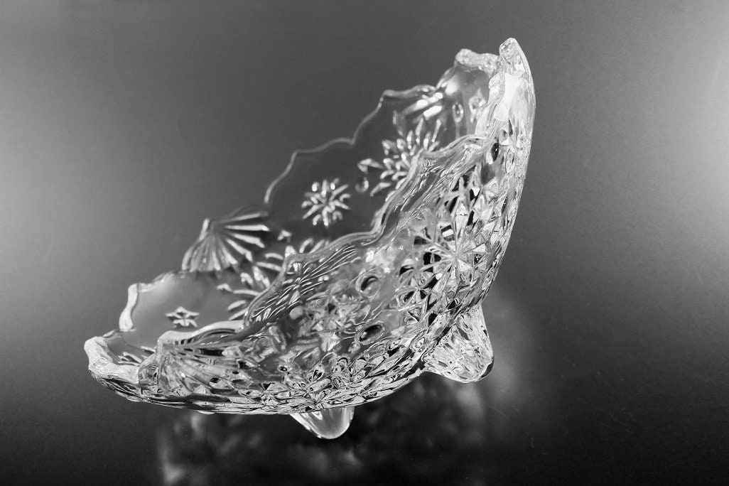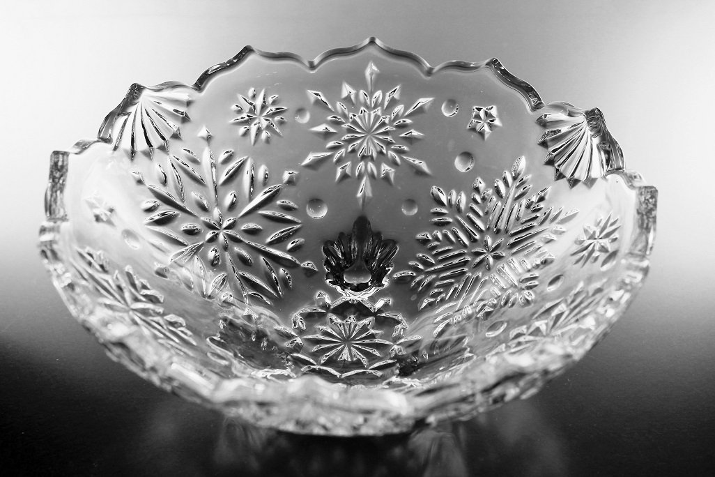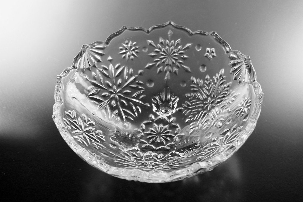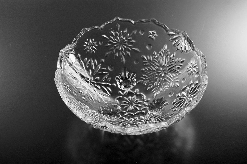Make the Christmas season sparkle with this beautiful Mikasa Crystal candy dish. Its pattern is called Snowflake and consists of snowflakes pressed into the crystal. It is a gorgeous clear glass bowl that shines and gleams. This is truly a holiday must. Just imagine holiday candy, after dinner mints, or nuts served up in this wonderful crystal on your coffee table, buffet table, dinner table or sideboard.