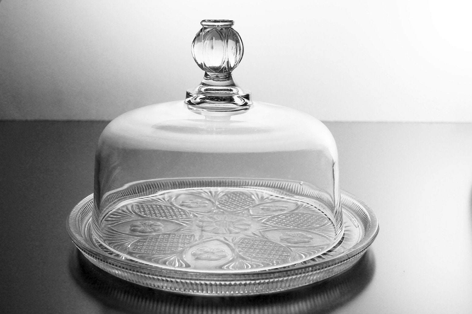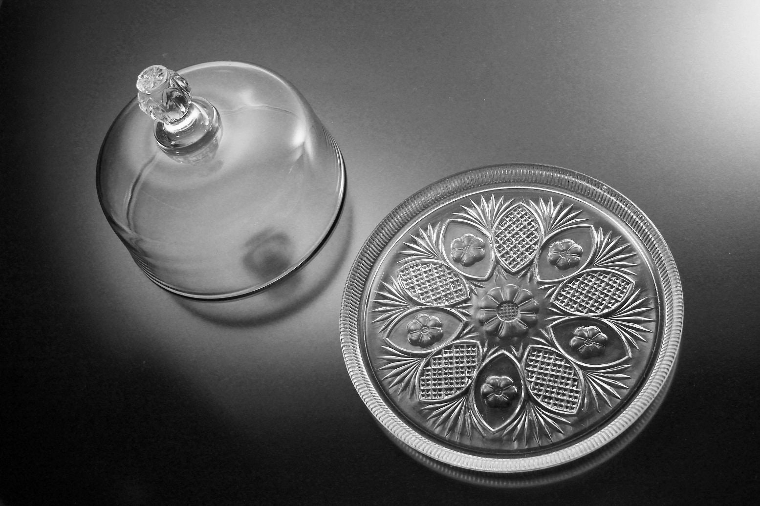 Antique, EAPG Covered Butter Dish, Daisy Pattern, 1800s, Pressed Glass, Clear Glass, Serving Dish, Cheese Dish