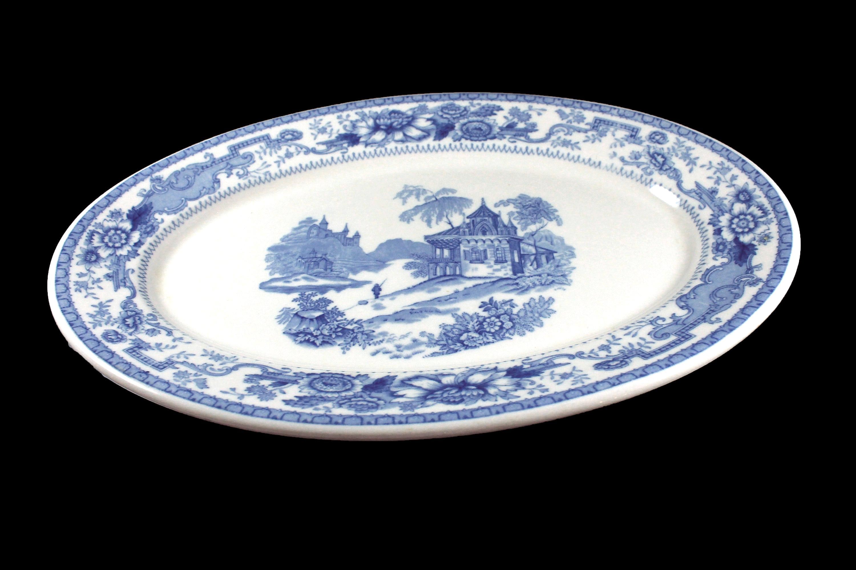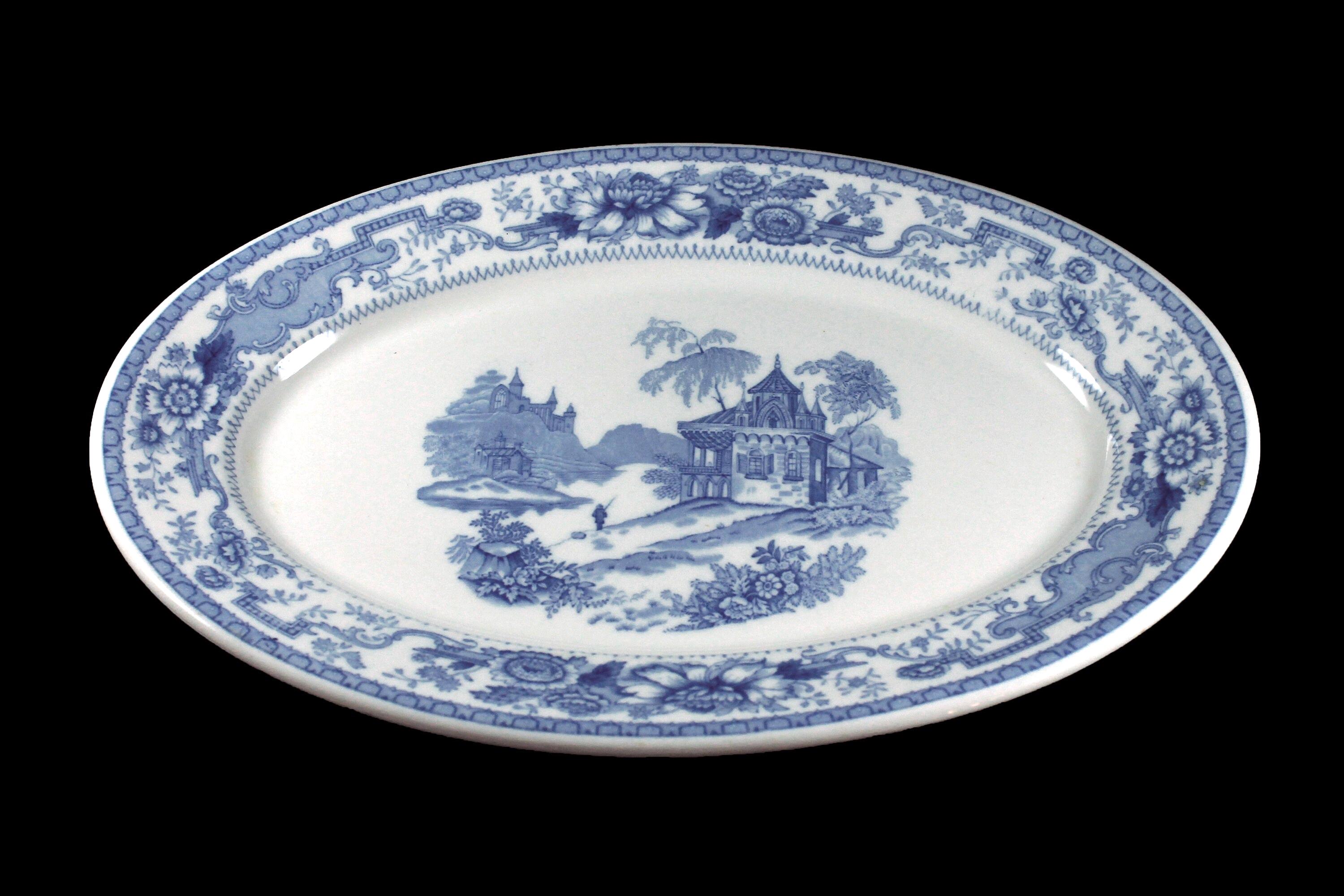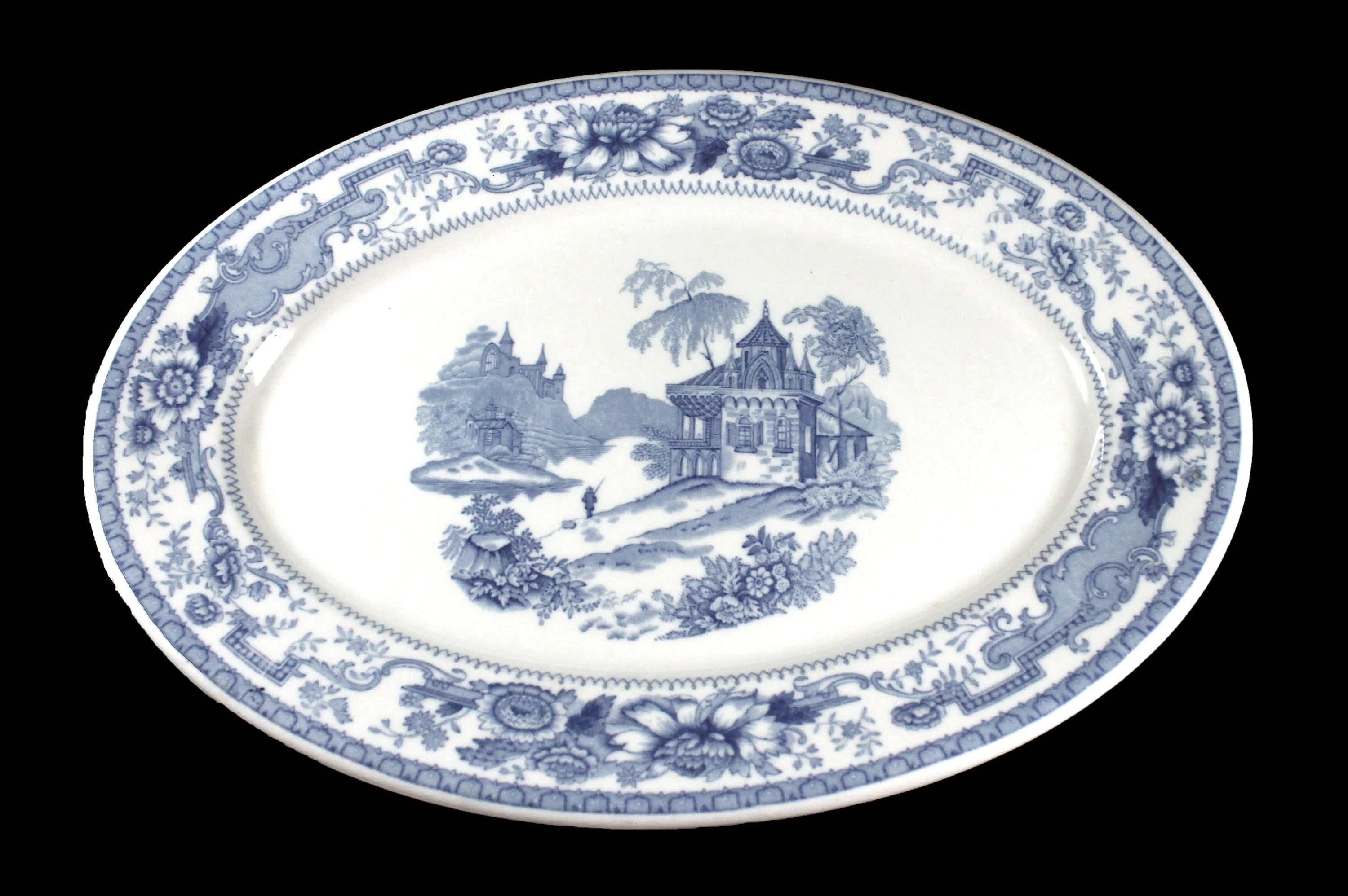 Syracuse China Platter, Mayfair Blue, Blue and White, Castle Center, Restaurant Grade, 13 Inch
