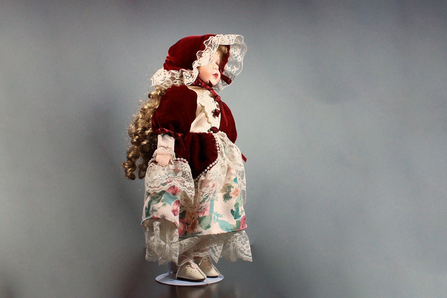 Collectible Porcelain Doll, The Samantha Collection, Samantha Medici, 16 inch Doll, Display Doll, Stand Included, Red Velvet and Lace